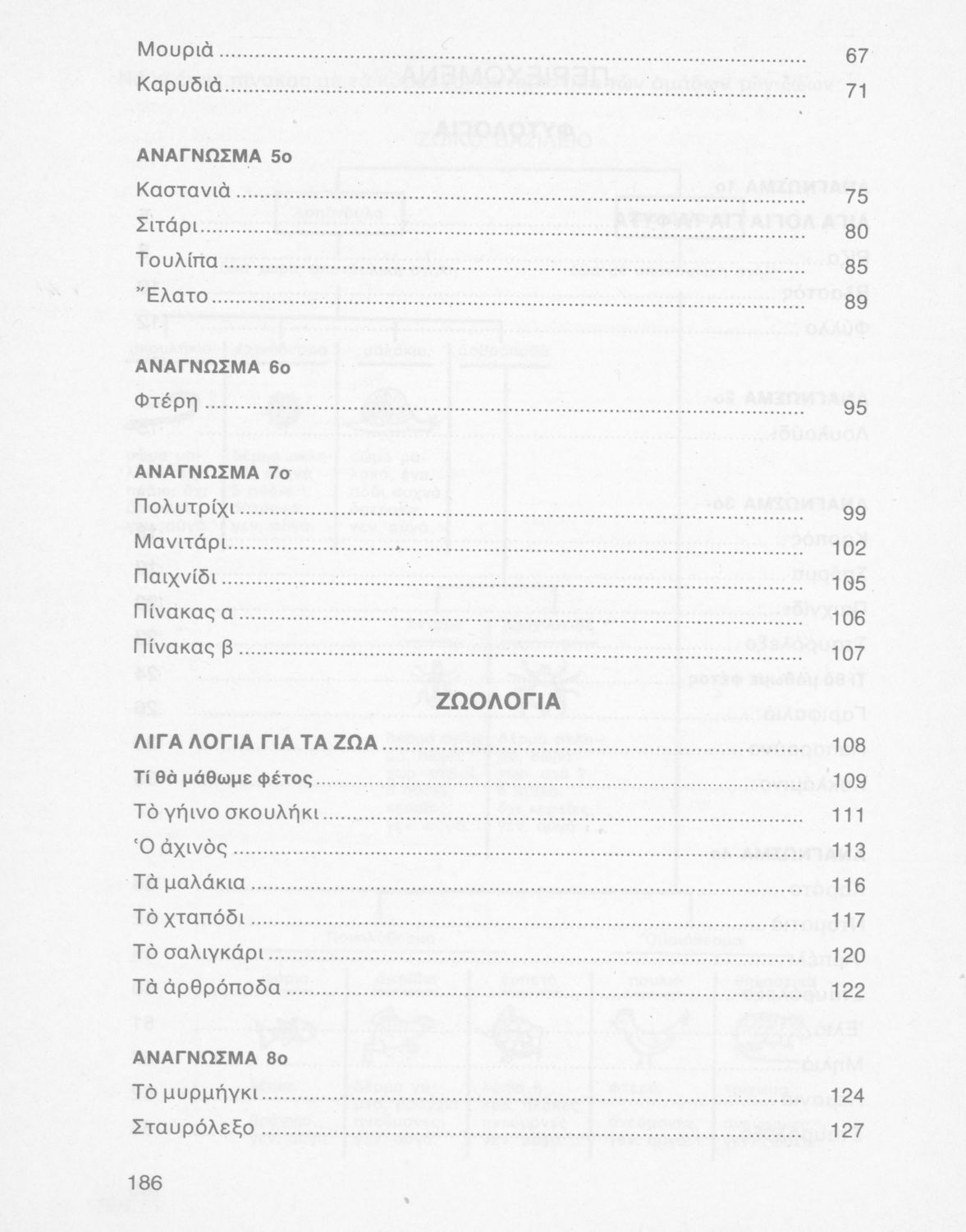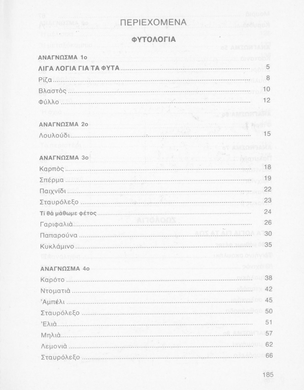Πρόκειται για βιβλίο Φυτολογίας και Ζωολογίας για την Γ΄ Δημοτικού. Περιέχει στοιχεία για τα μέρη του φυτού, για φυτά και ζώα που υπάρχουν στον κήπο, τον ανθόκηπο και τον λαχανόκηπο.