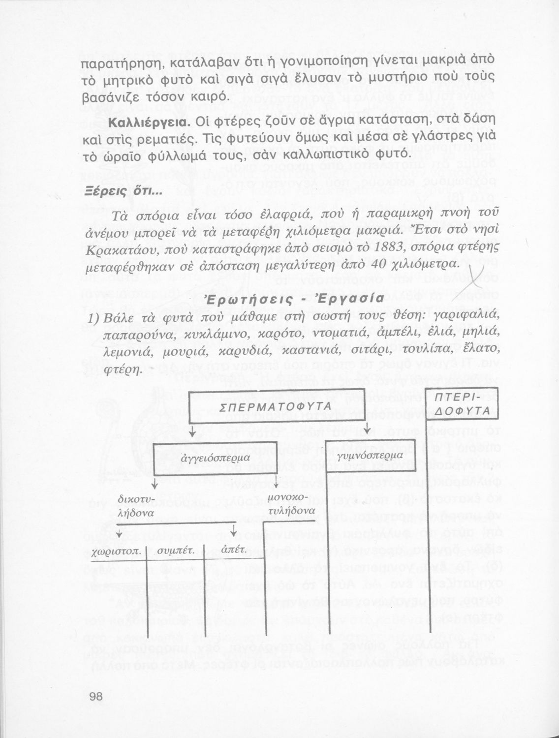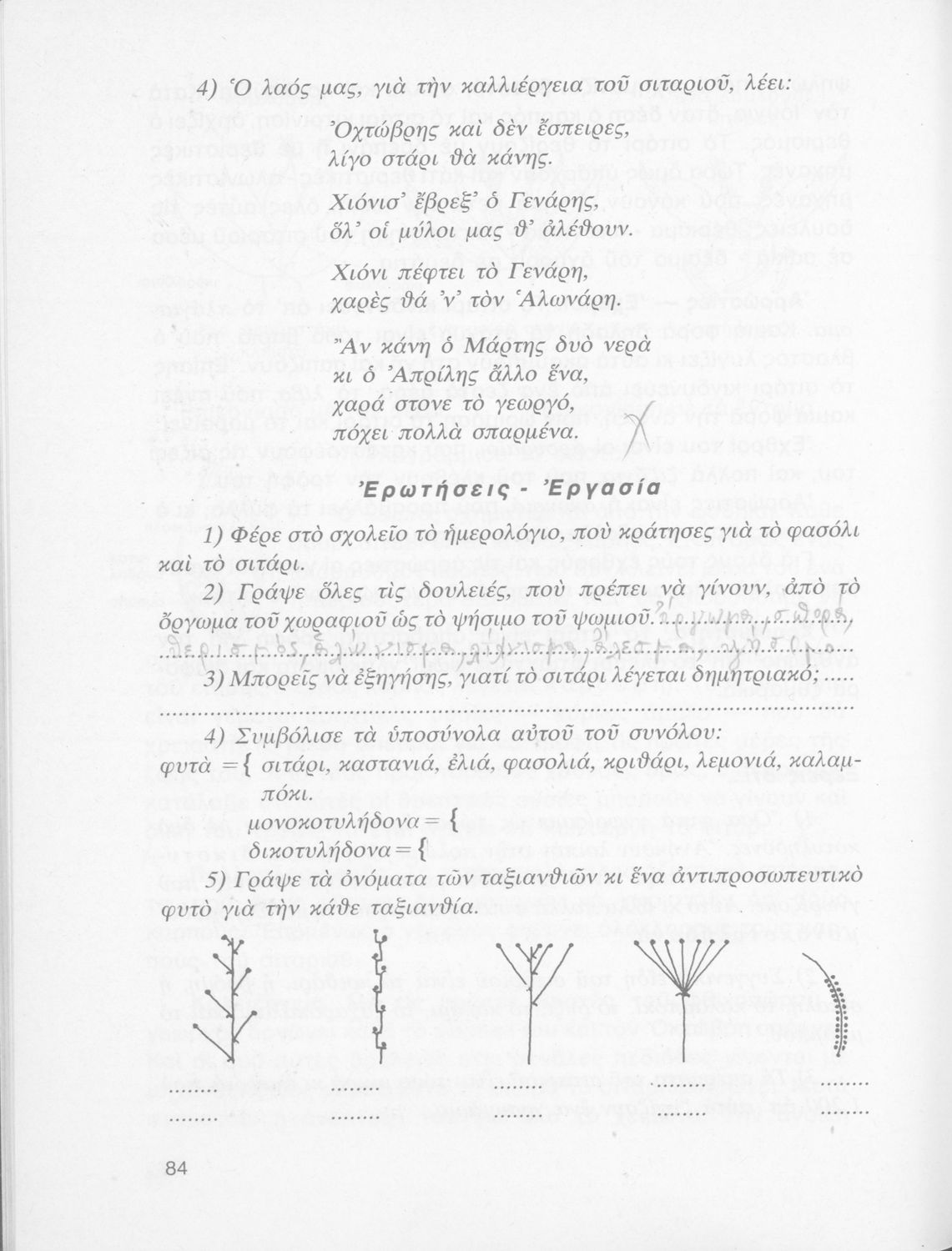 Φυτά και ζώα της πατρίδας μας, Δ΄ Δημοτικού