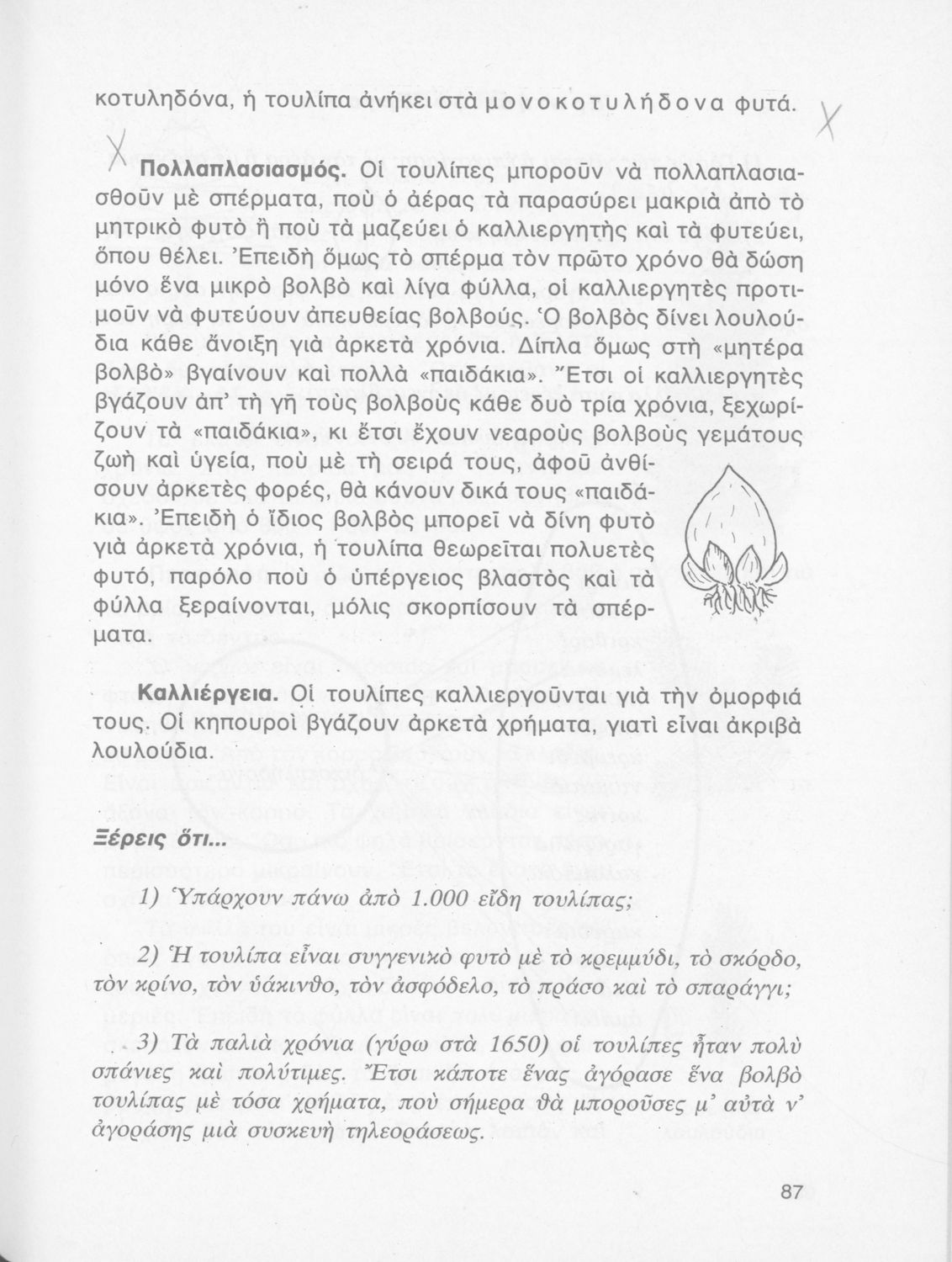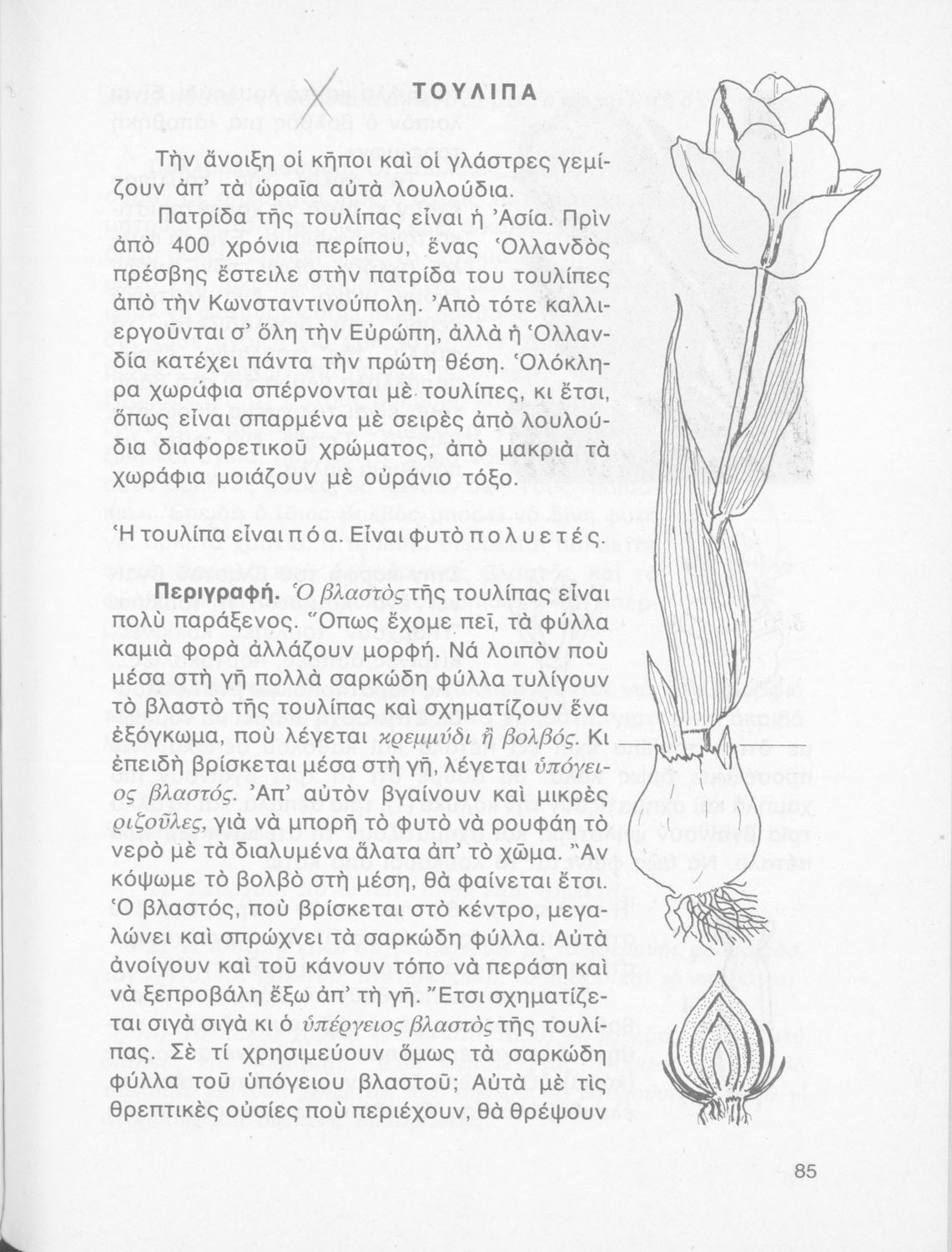 Πρόκειται για βιβλίο Φυτολογίας και Ζωολογίας για την Γ΄ Δημοτικού. Περιέχει στοιχεία για τα μέρη του φυτού, για φυτά και ζώα που υπάρχουν στον κήπο, τον ανθόκηπο και τον λαχανόκηπο.