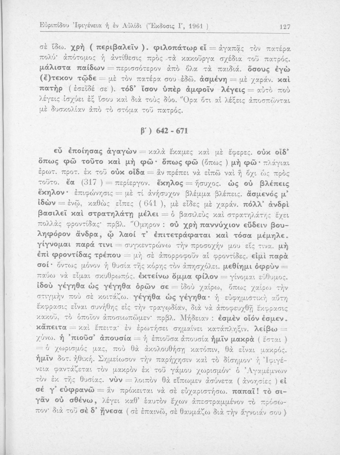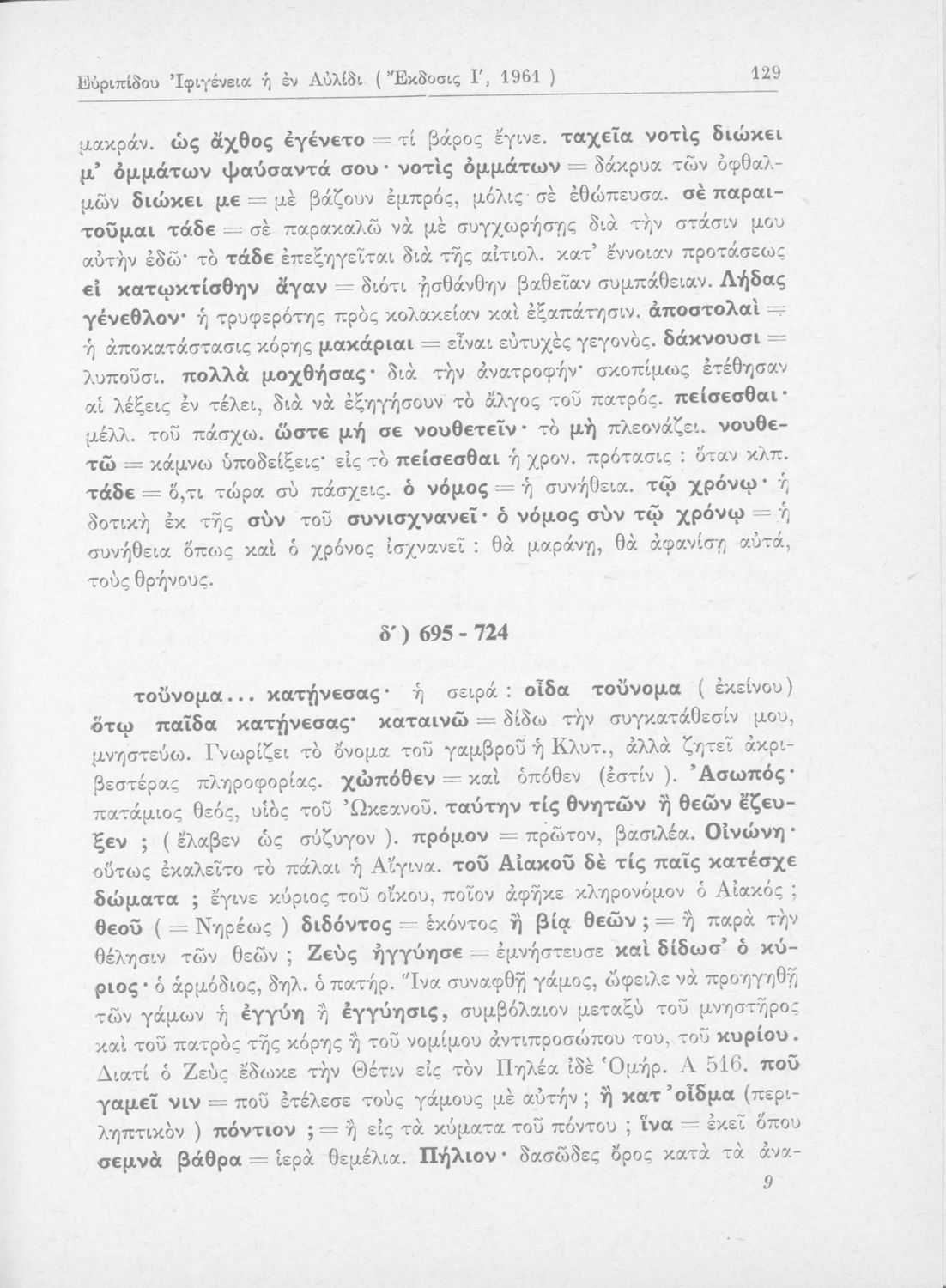 Σχολικό εγχειρίδιο Αρχαίων Ελληνικών Γυμνασίου που περιλαμβάνει αποσπάσματα τις τραγωδίες του Ευριπίδη Ιφιγένεια η εν Αυλίδι και Ιφιγένεια η εν Ταύροις, ερμηνευτικά και πραγματολογικά σχόλια και λεξιλογικές παρατηρήσεις.