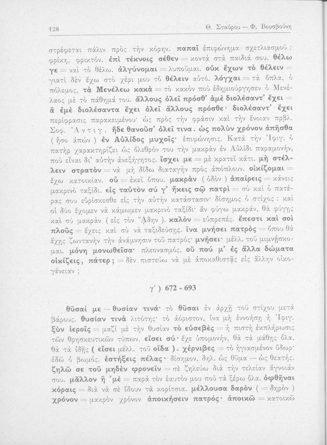 Ευριπίδης, Φ. Βουσβούνης, Θ. Σταύρου (σχόλια)