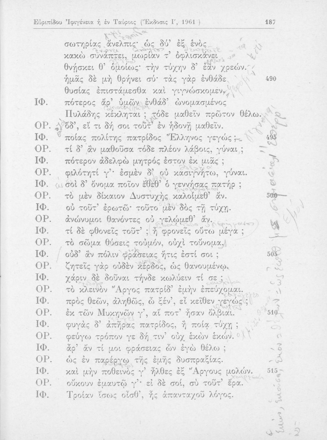 Τίτλος: Ευριπίδου Ιφιγένεια η εν Αυλίδι, Ιφιγένεια η εν ταύροις
