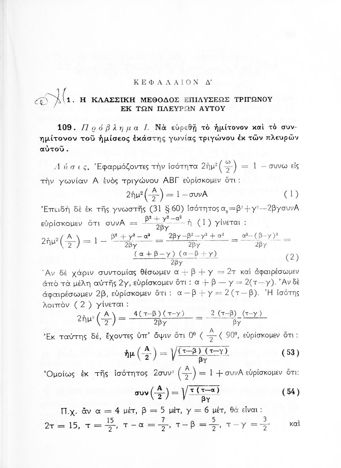 Τίτλος: Τριγωνομετρία δια την Η΄ τάξιν των Γυμνασίων