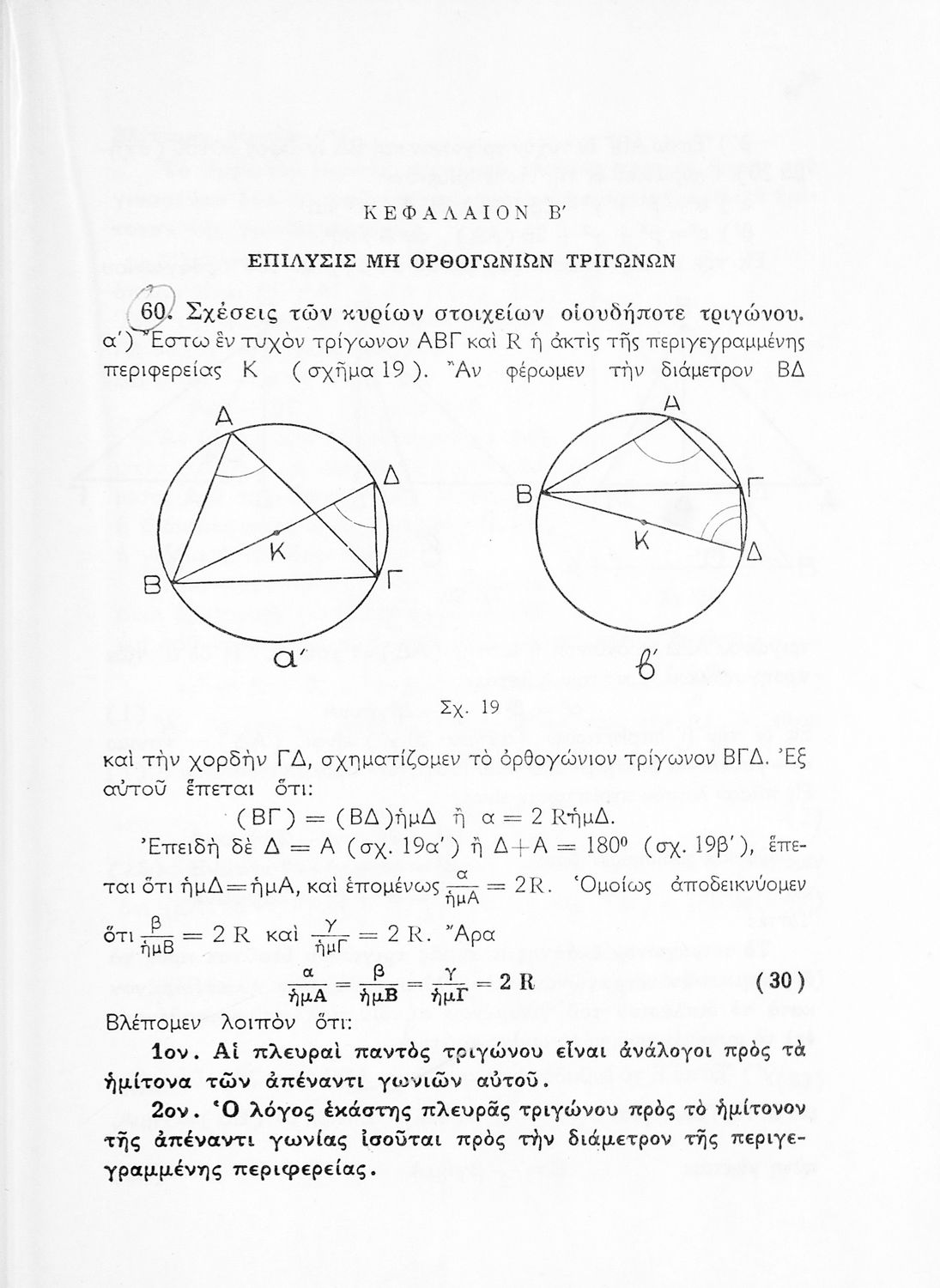 Σχολικό εγχειρίδιο Τριγωνομετρίας για την ΣΤ΄ Γυμνασίου που περιλαμβάνει θεωρήματα και ασκήσεις.