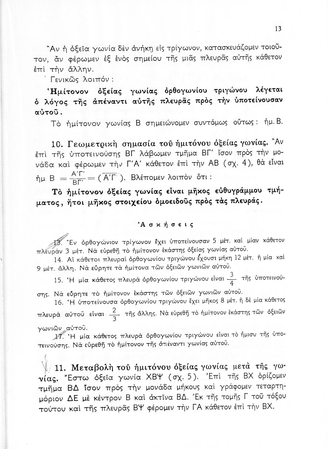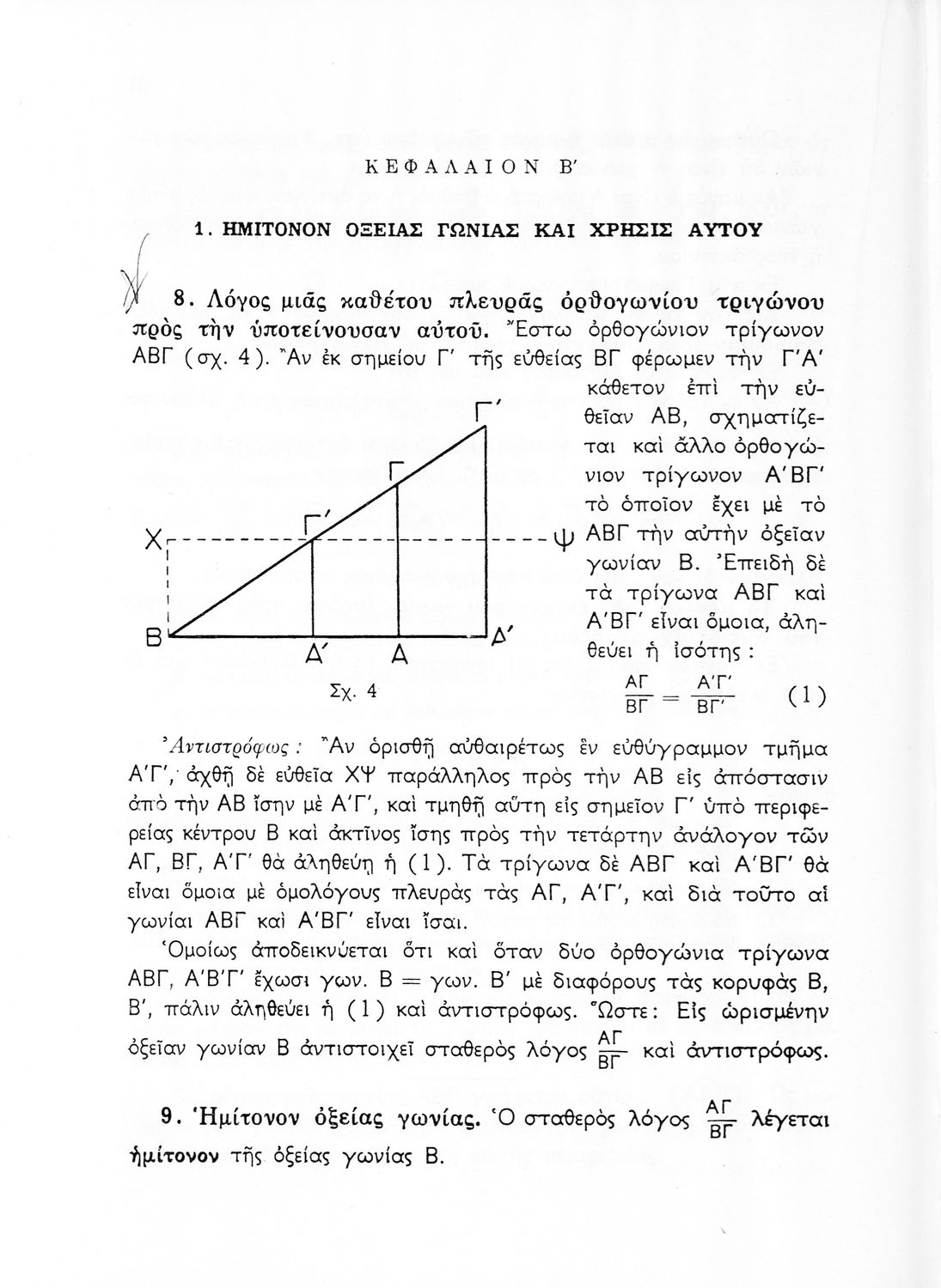 Σχολικό εγχειρίδιο Τριγωνομετρίας για την Η' Γυμνασίου που περιλαμβάνει θεωρία και ασκήσεις.