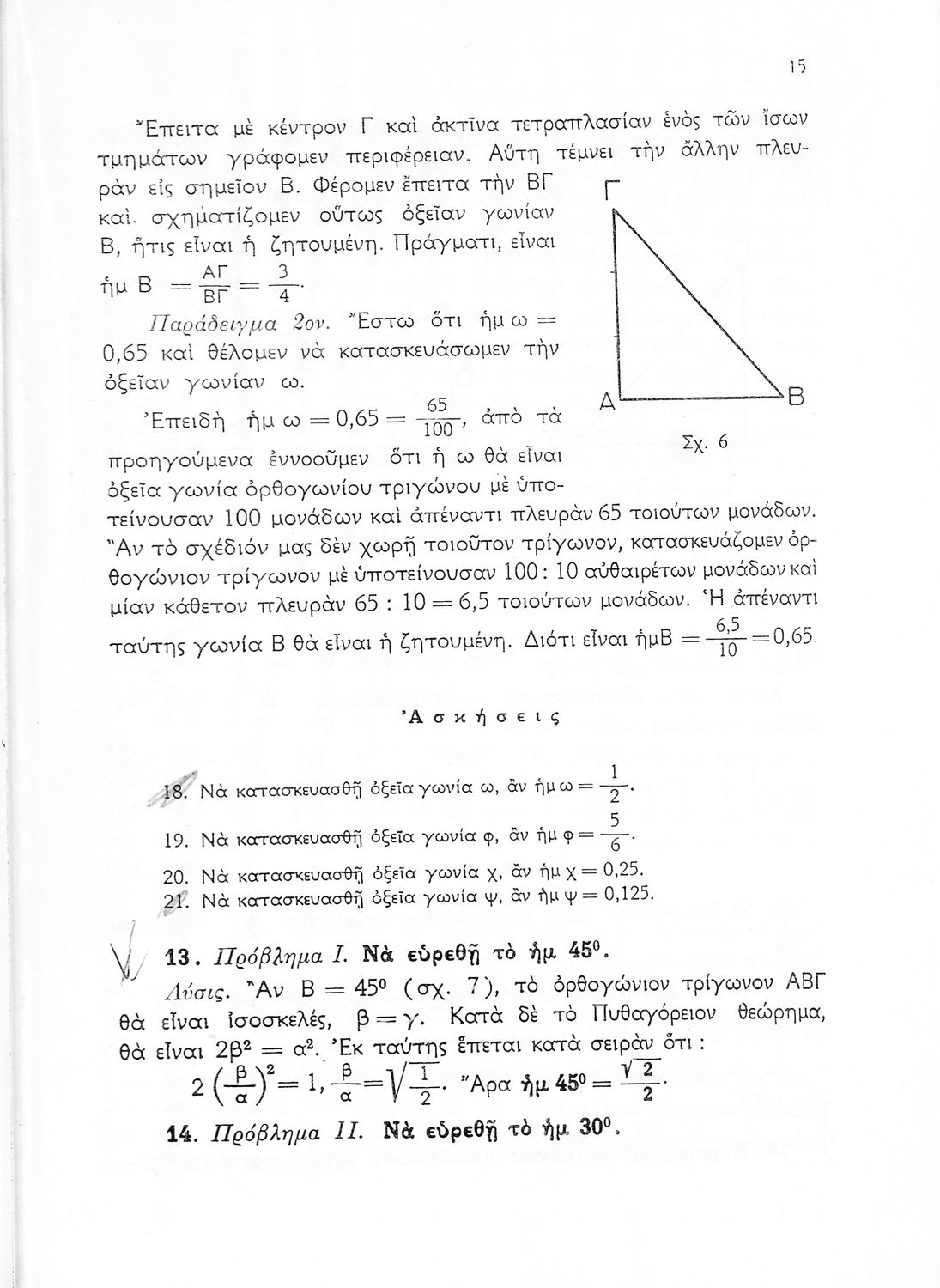Σχολικό εγχειρίδιο Τριγωνομετρίας για την ΣΤ΄ Γυμνασίου που περιλαμβάνει θεωρήματα και ασκήσεις.