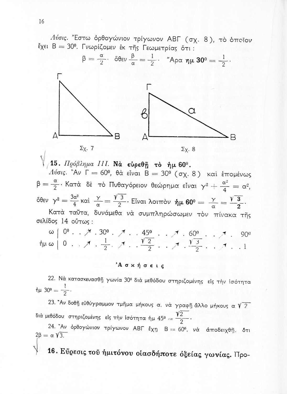 Παρουσίαση περιεχομένου: Σχολικό εγχειρίδιο Τριγωνομετρίας για την Η' Γυμνασίου που περιλαμβάνει θεωρία και ασκήσεις.