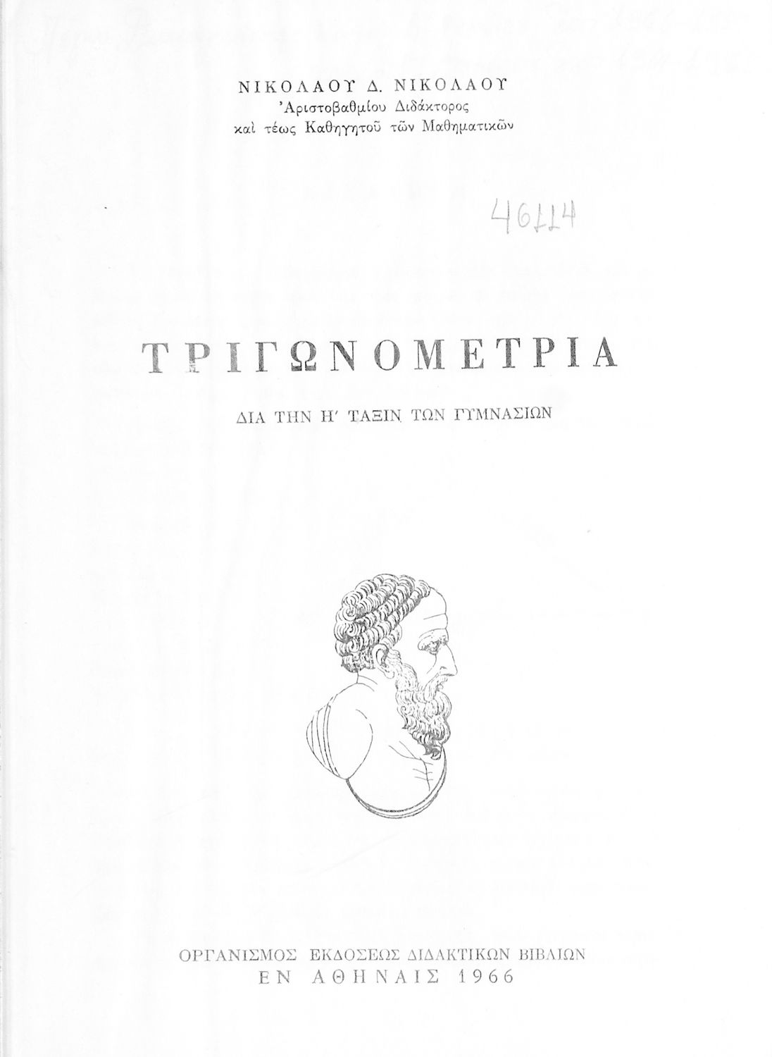Τίτλος: Τριγωνομετρία δια την Η΄ τάξιν των Γυμνασίων