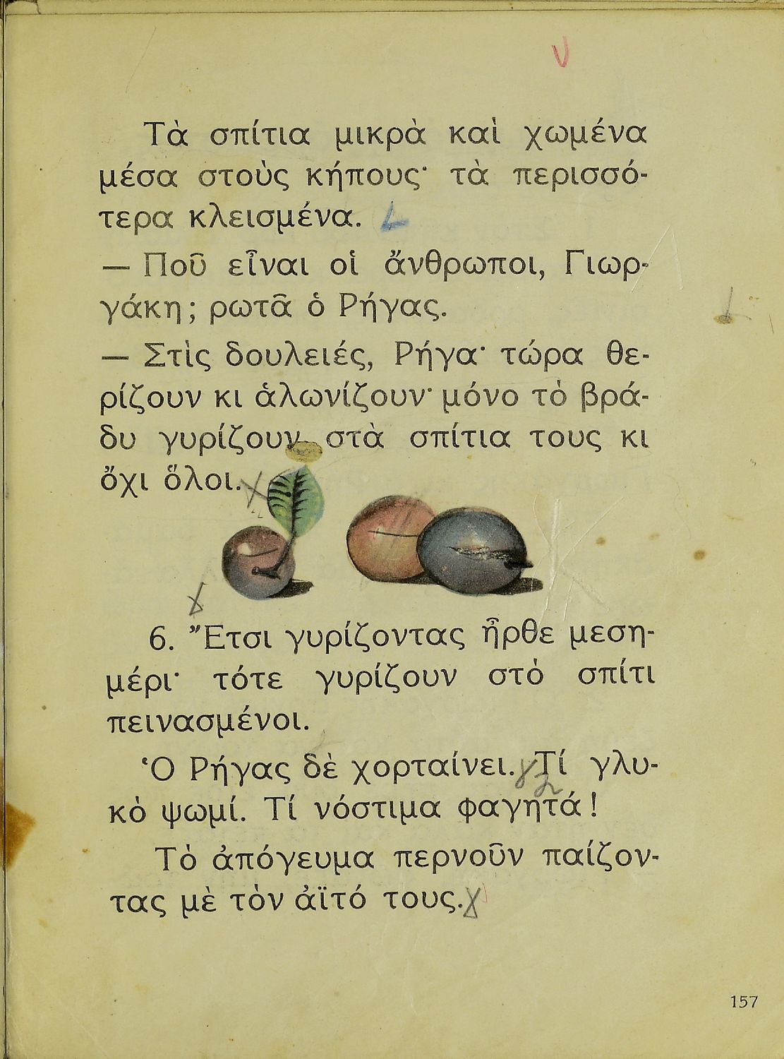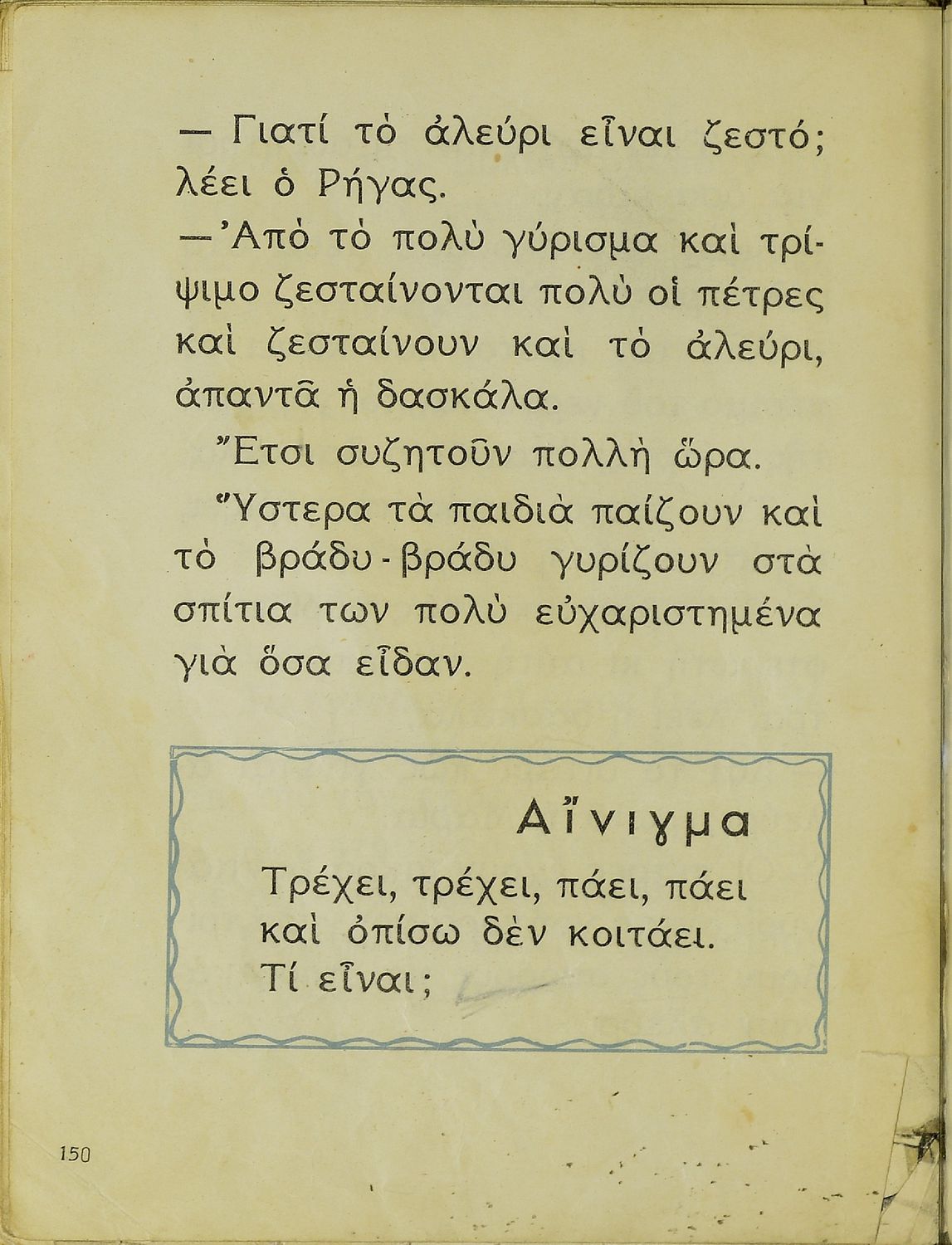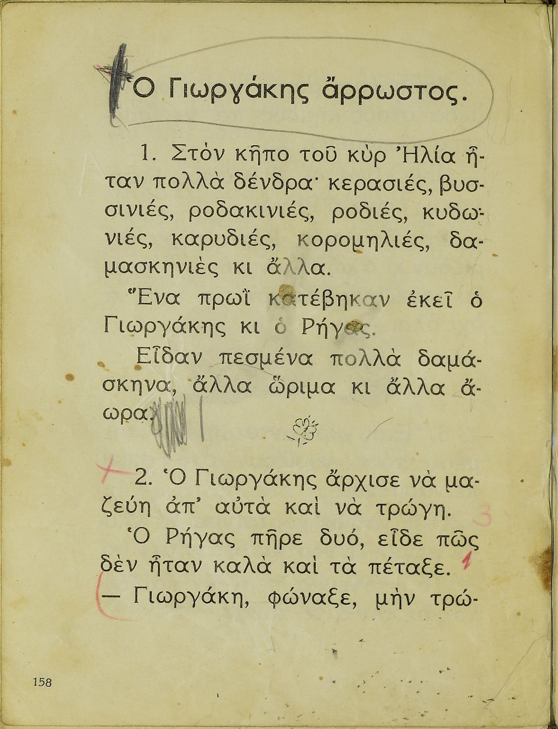 Αναγνωστικό Ε΄ Δημοτικού που περιλαμβάνει πεζογραφήματα εμπνευσμένα από την ελληνική φύση, την αγροτική ζωή και από το τρίπτυχο "Πατρίς- θρησκεία- οικογένεια".