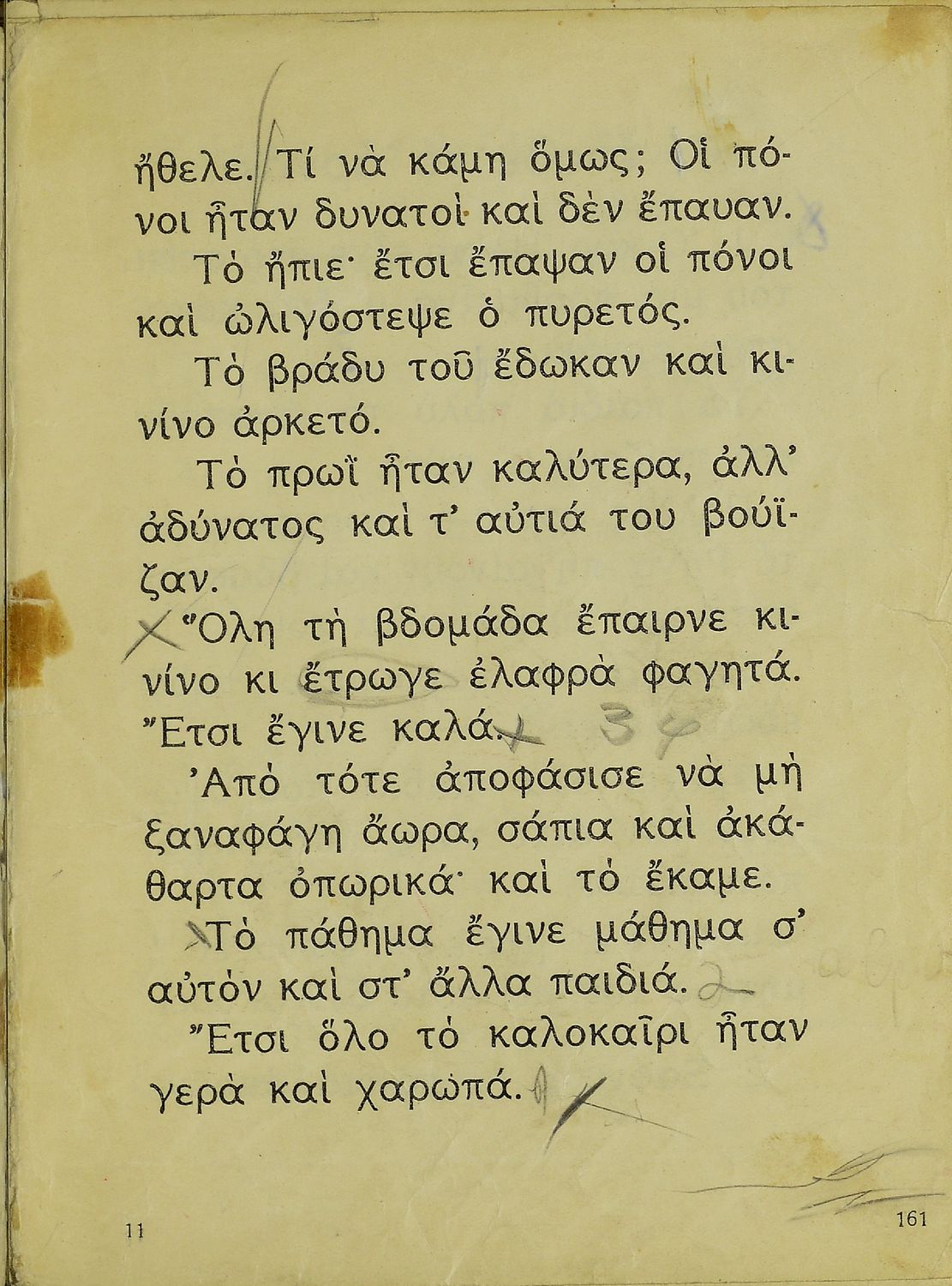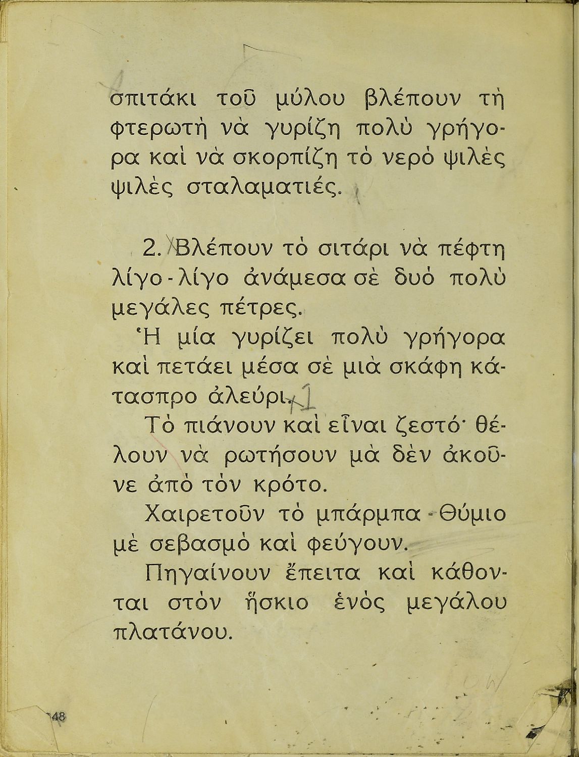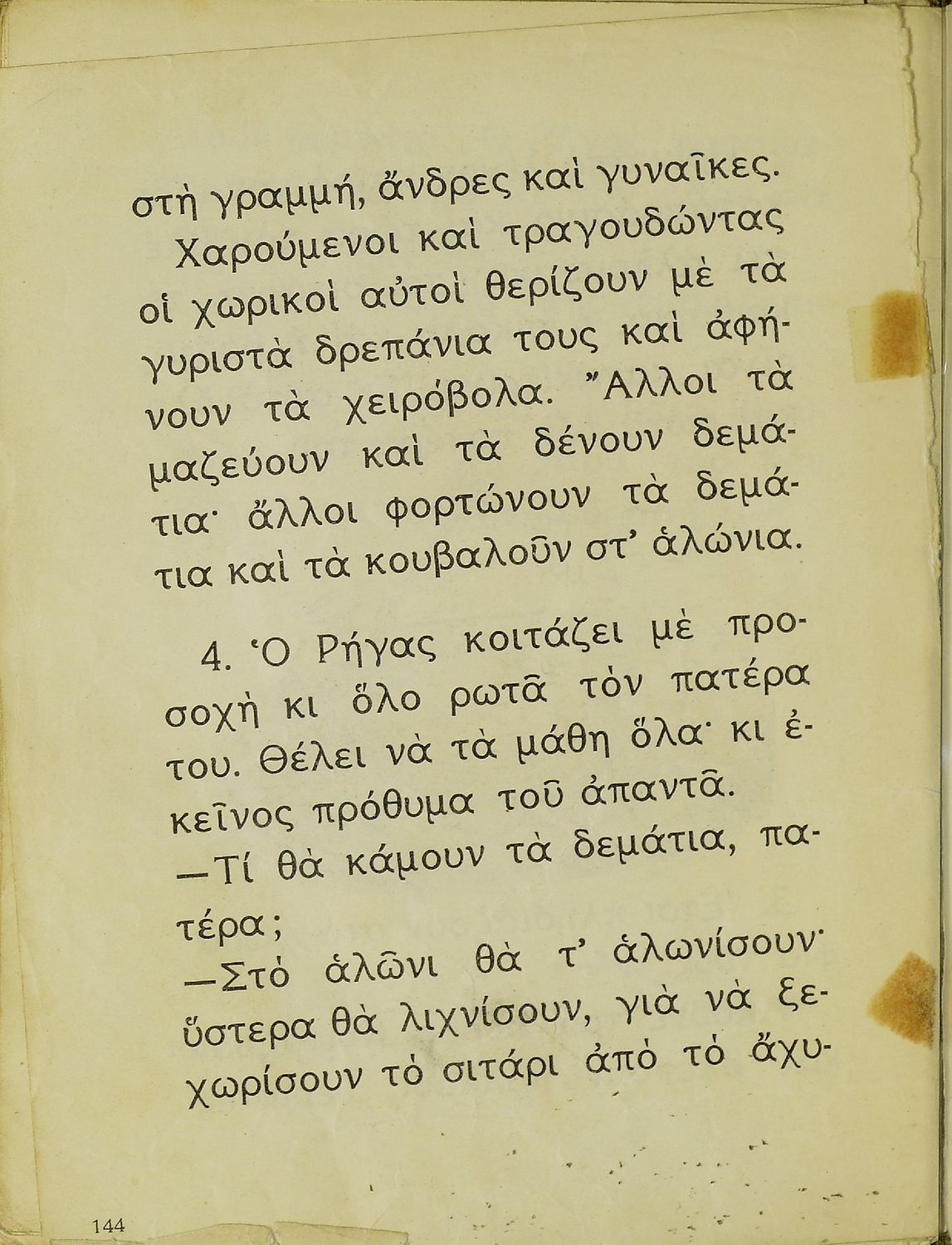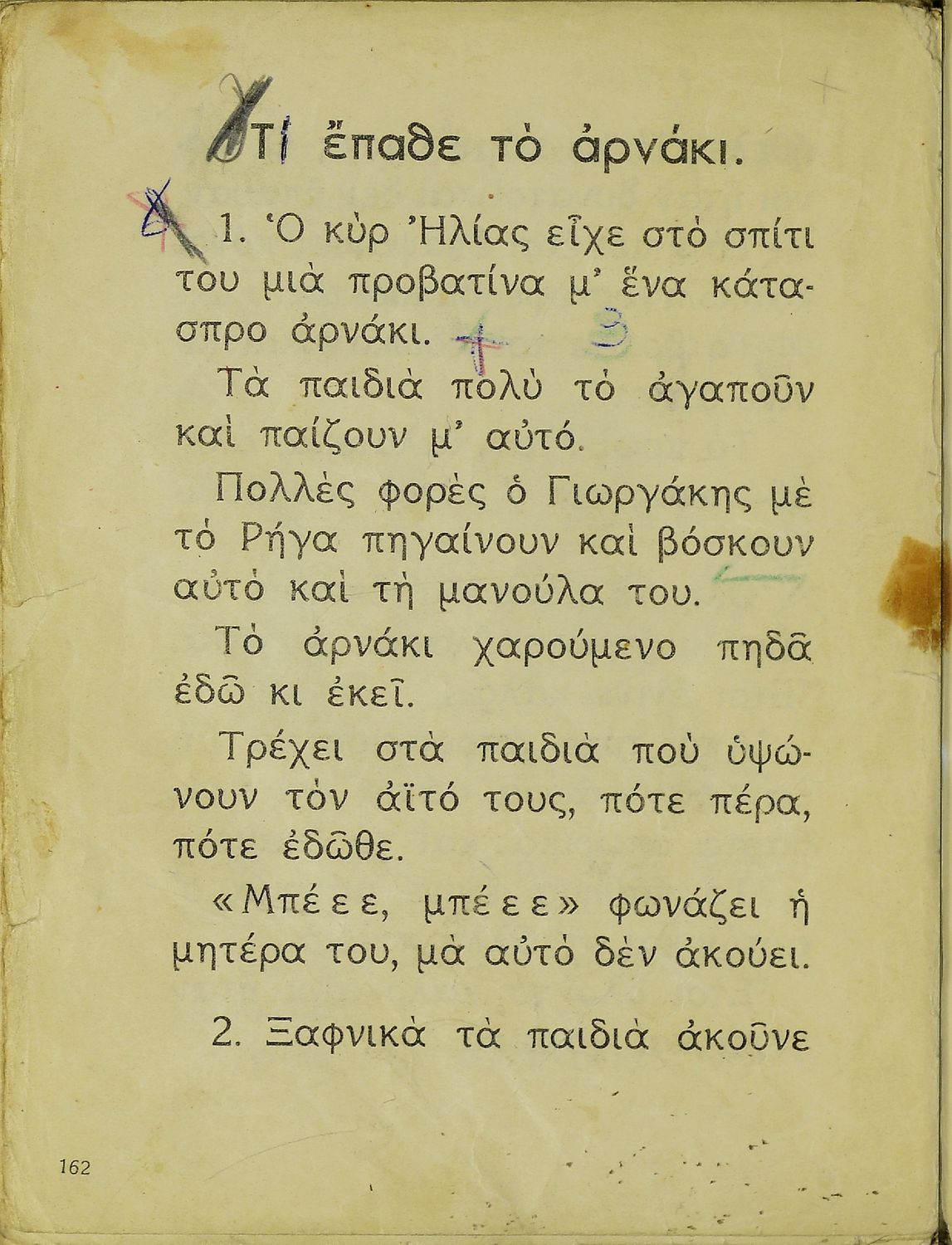 Αναγνωστικό Ε΄ Δημοτικού που περιλαμβάνει πεζογραφήματα εμπνευσμένα από την ελληνική φύση, την αγροτική ζωή και από το τρίπτυχο "Πατρίς- θρησκεία- οικογένεια".