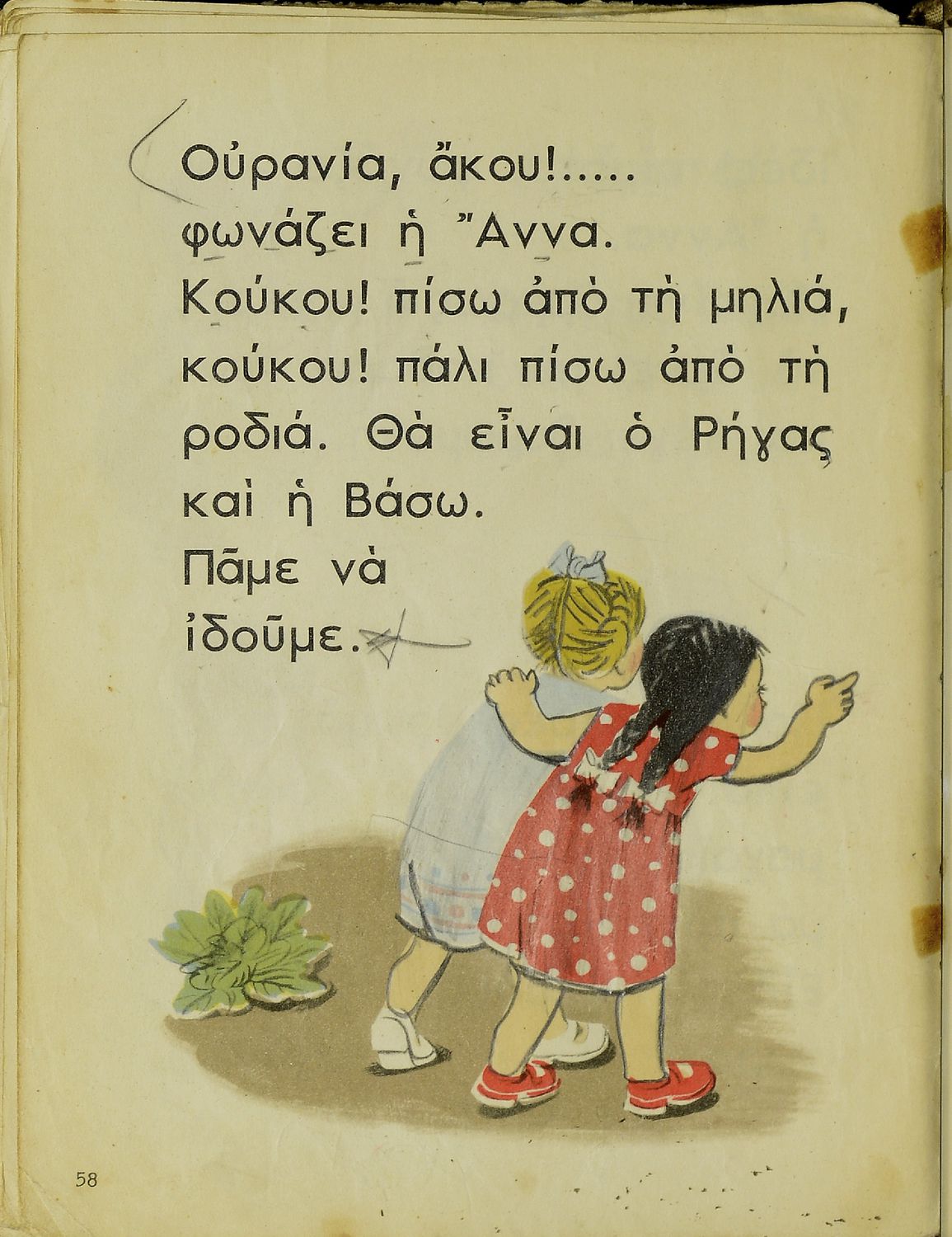 Αναγνωστικό Α΄ Δημοτικού που περιέχει γράμματα, συλλαβές, λέξεις και προτάσεις για την εκμάθηση της Γλώσσας.