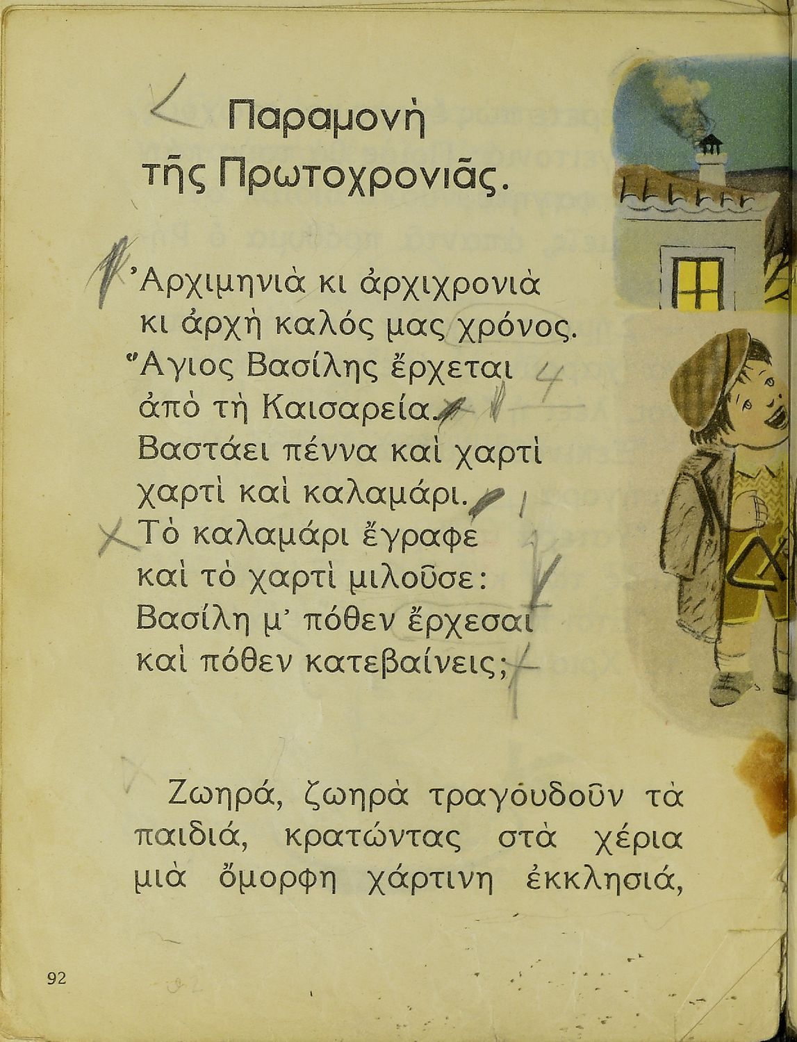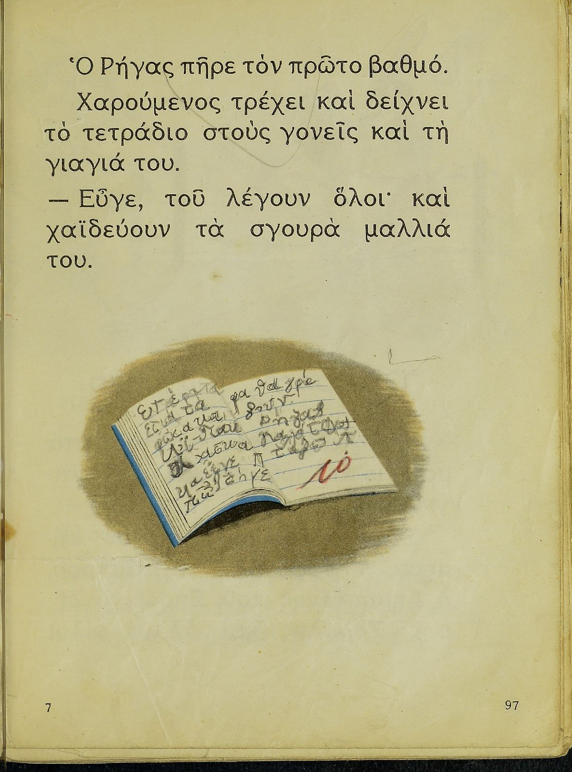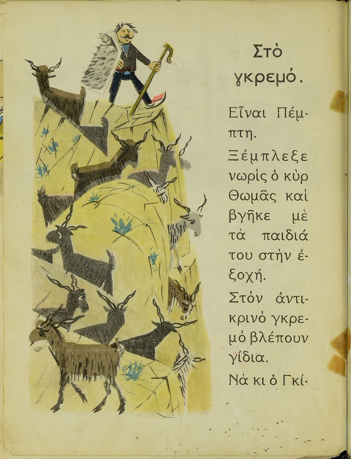 Αναγνωστικό Ε΄ Δημοτικού που περιλαμβάνει πεζογραφήματα εμπνευσμένα από την ελληνική φύση, την αγροτική ζωή και από το τρίπτυχο "Πατρίς- θρησκεία- οικογένεια".