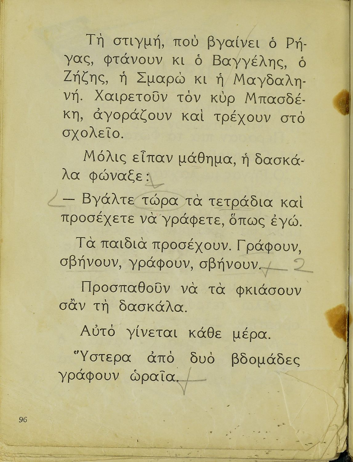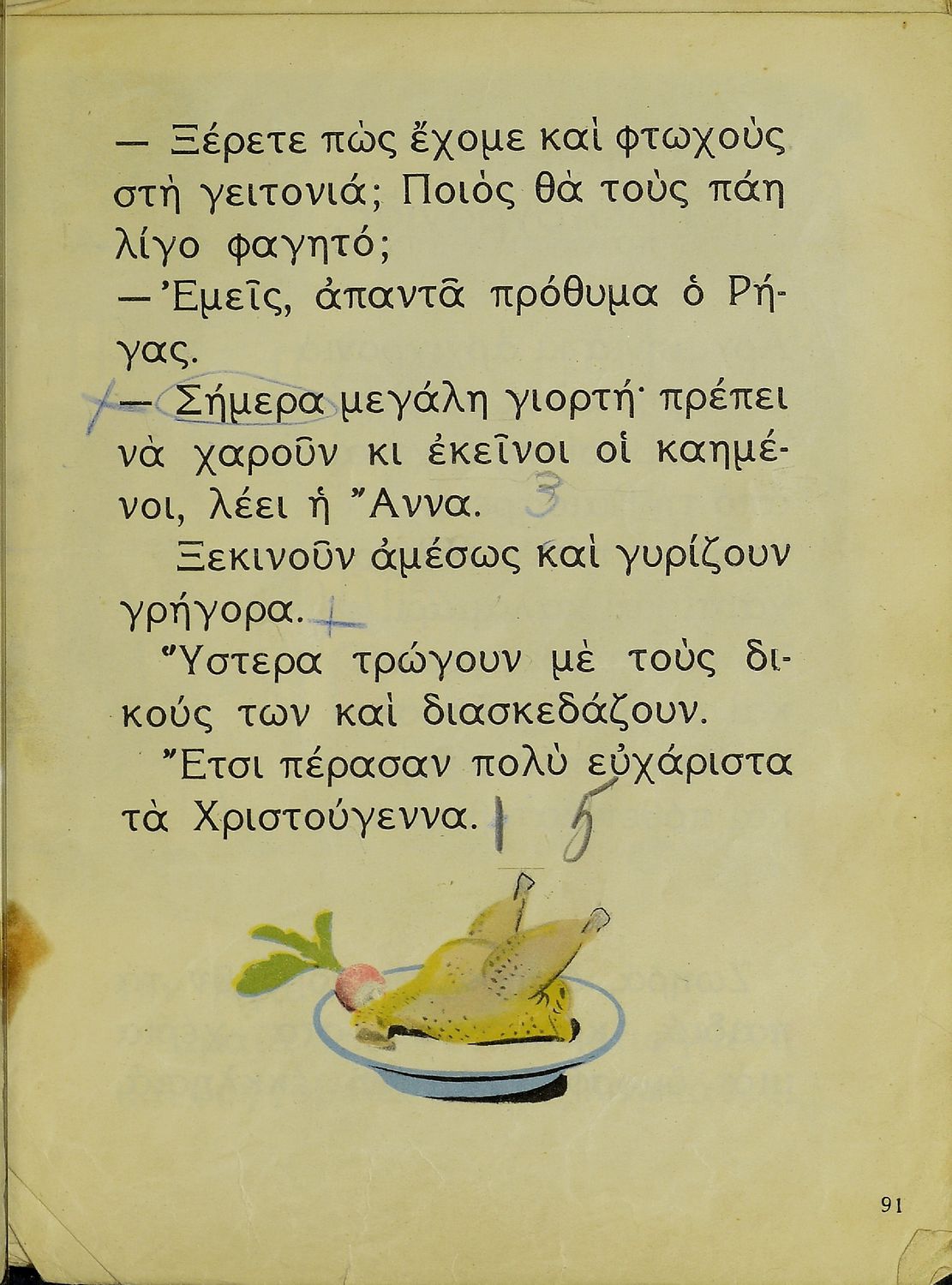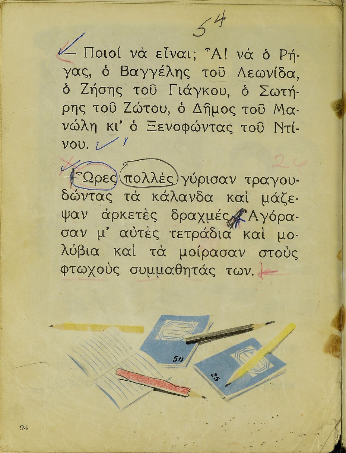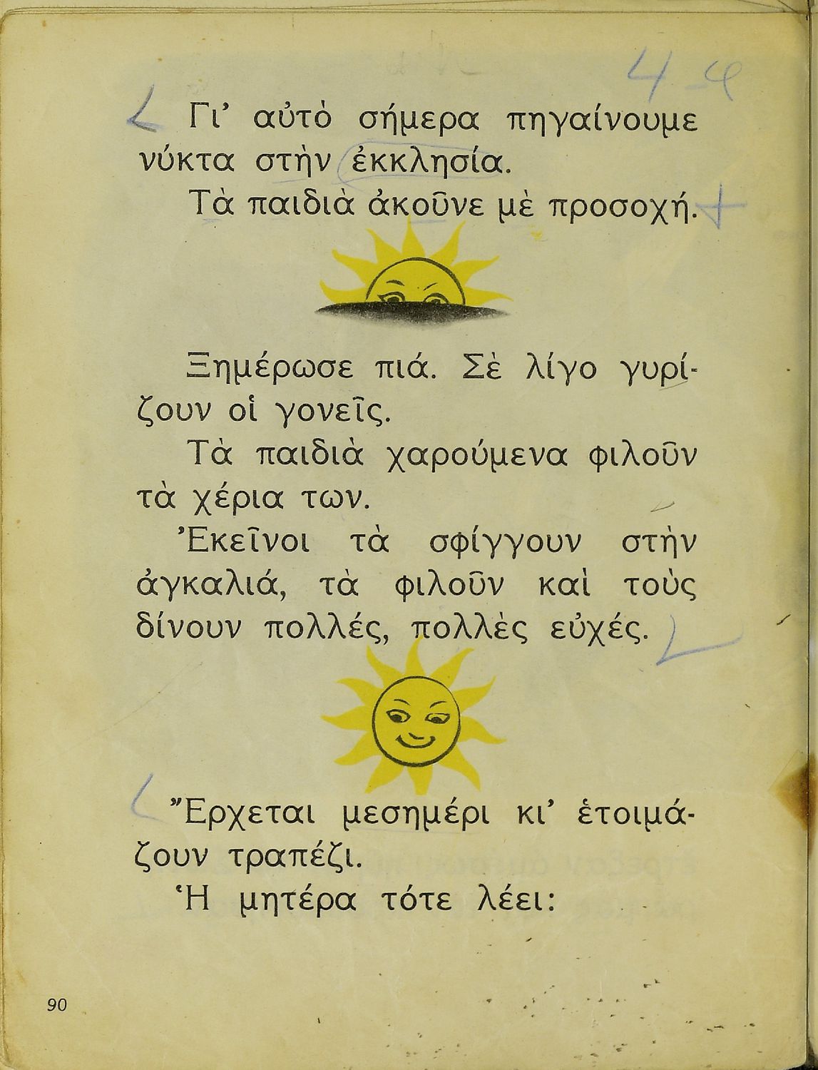 Αναγνωστικό Ε΄ Δημοτικού που περιλαμβάνει πεζογραφήματα εμπνευσμένα από την ελληνική φύση, την αγροτική ζωή και από το τρίπτυχο "Πατρίς- θρησκεία- οικογένεια".