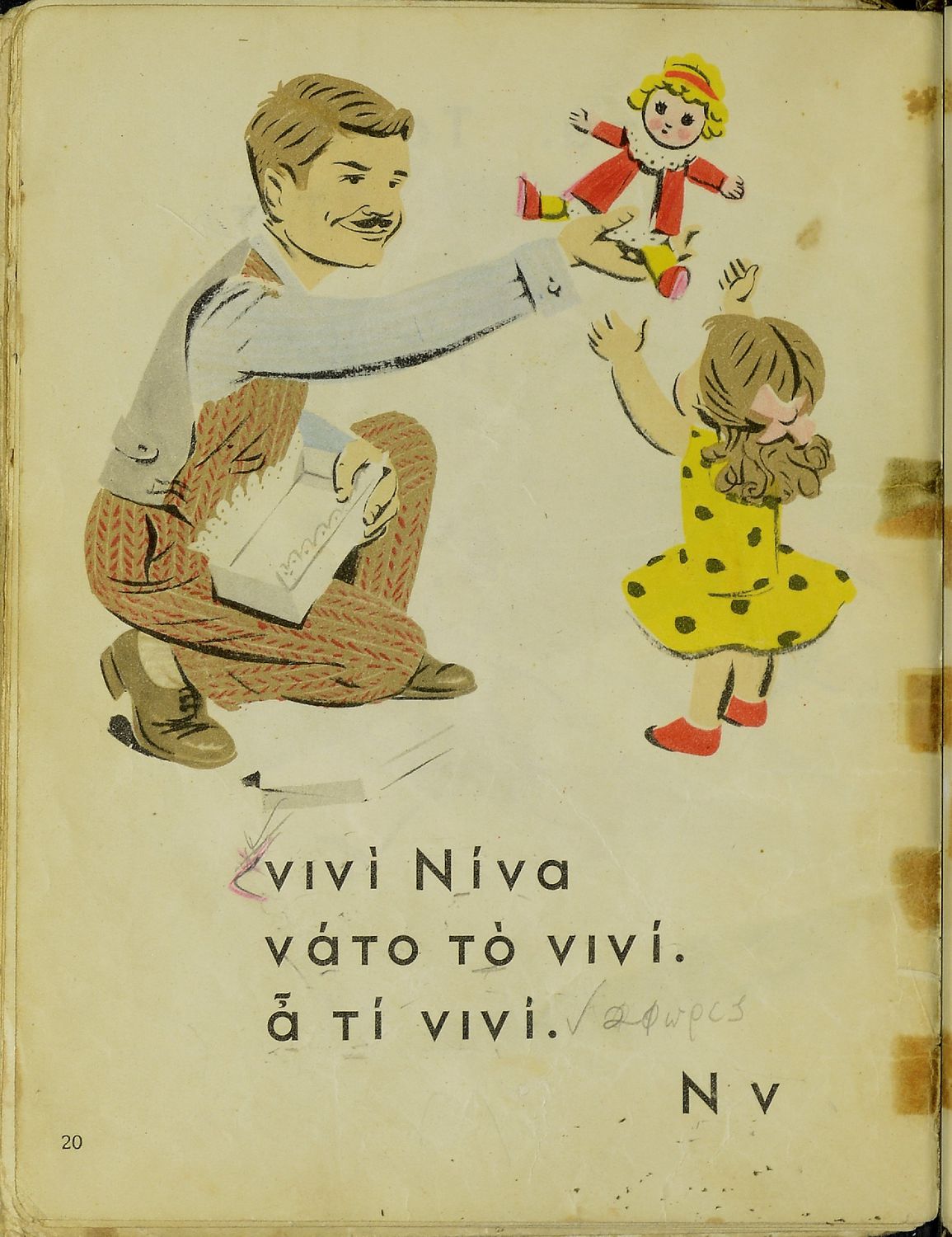 Αναγνωστικό Α΄ Δημοτικού που περιέχει γράμματα, συλλαβές, λέξεις και προτάσεις για την εκμάθηση της Γλώσσας.