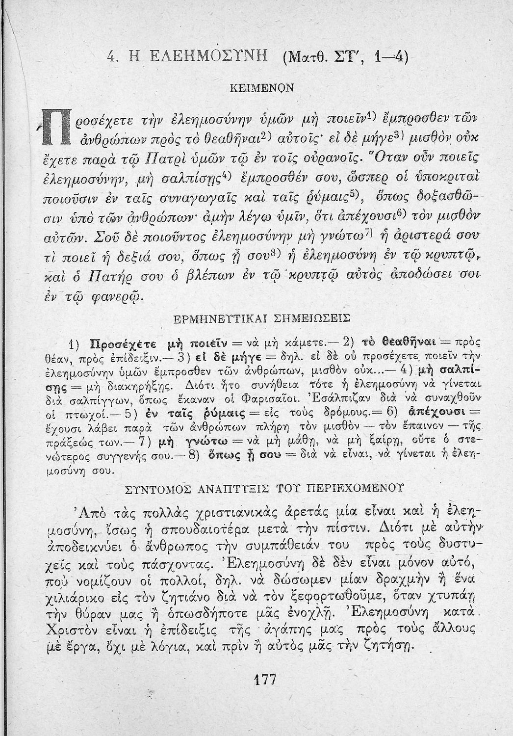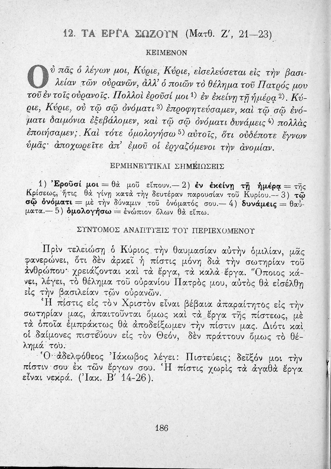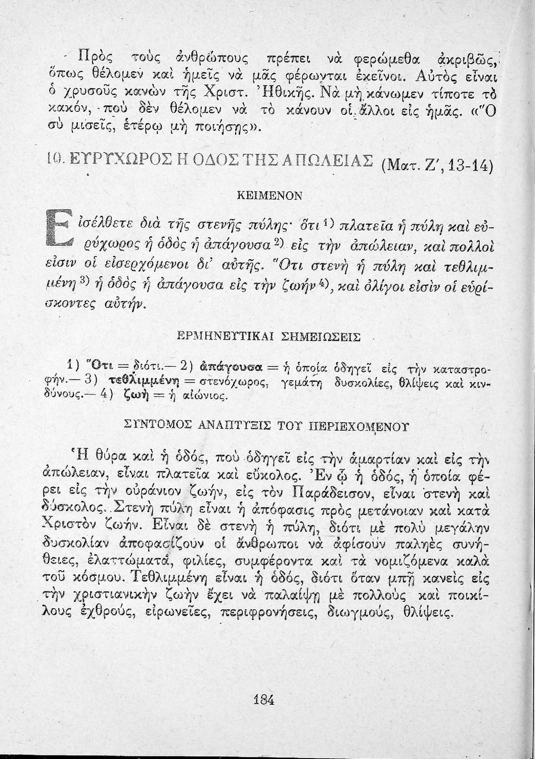 Το σύγγραμμα ήταν μαθητικό βοήθημα για το μάθημα των Θρησκευτικών. Περιέχει κείμενο, σχόλια των Ευαγγελίων