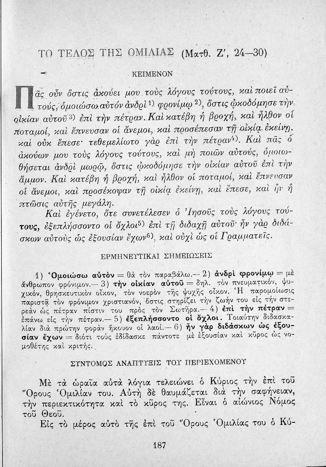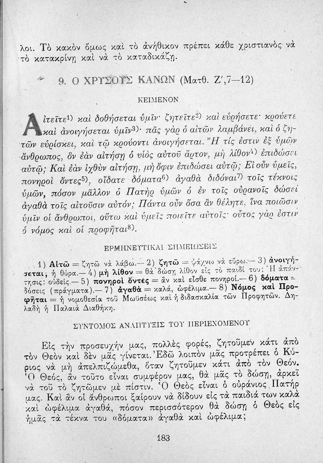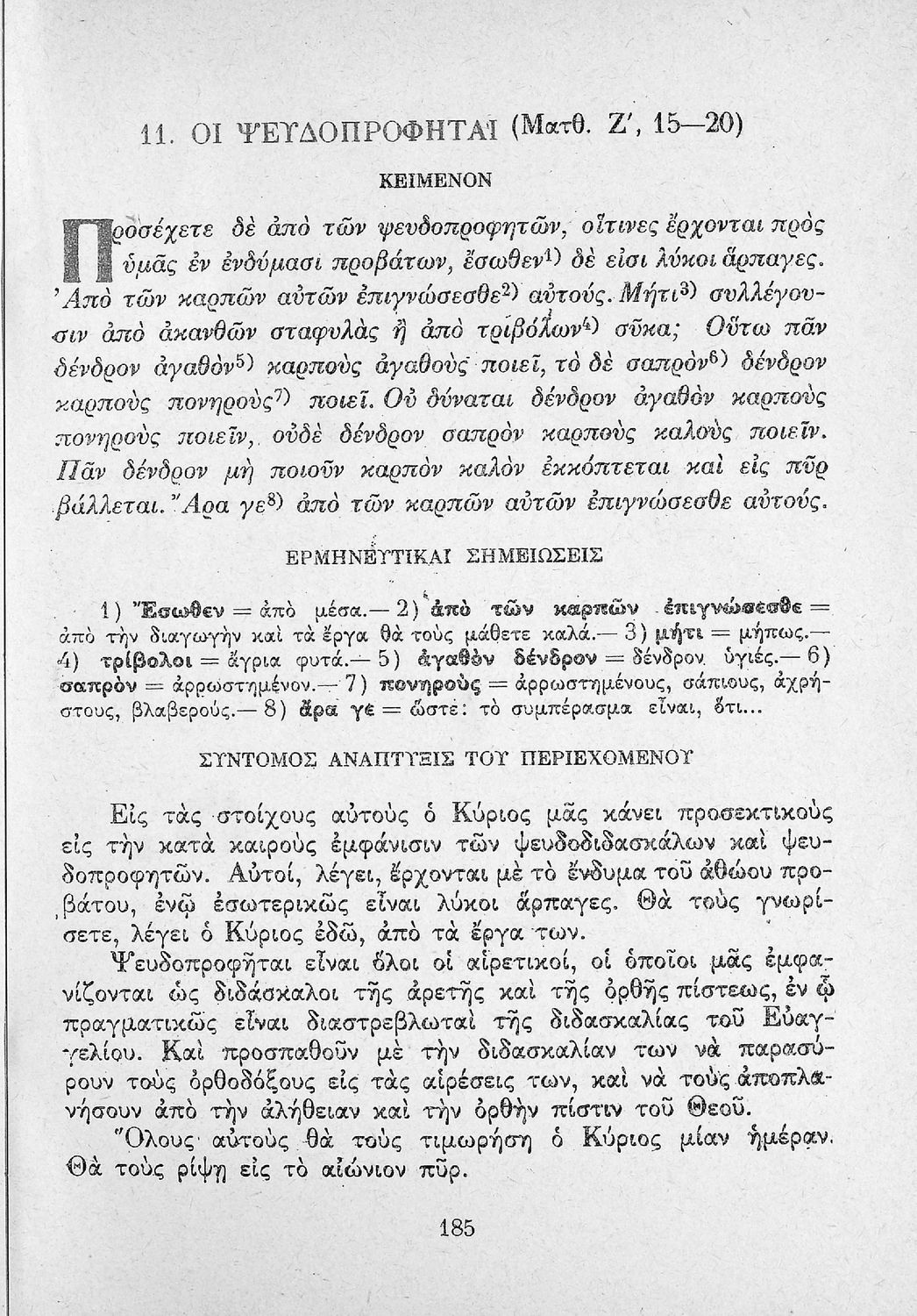 Το σύγγραμμα ήταν μαθητικό βοήθημα για το μάθημα των Θρησκευτικών. Περιέχει κείμενο, σχόλια των Ευαγγελίων