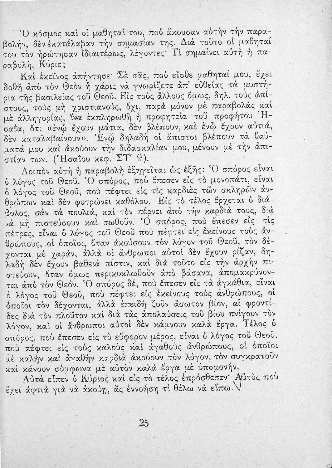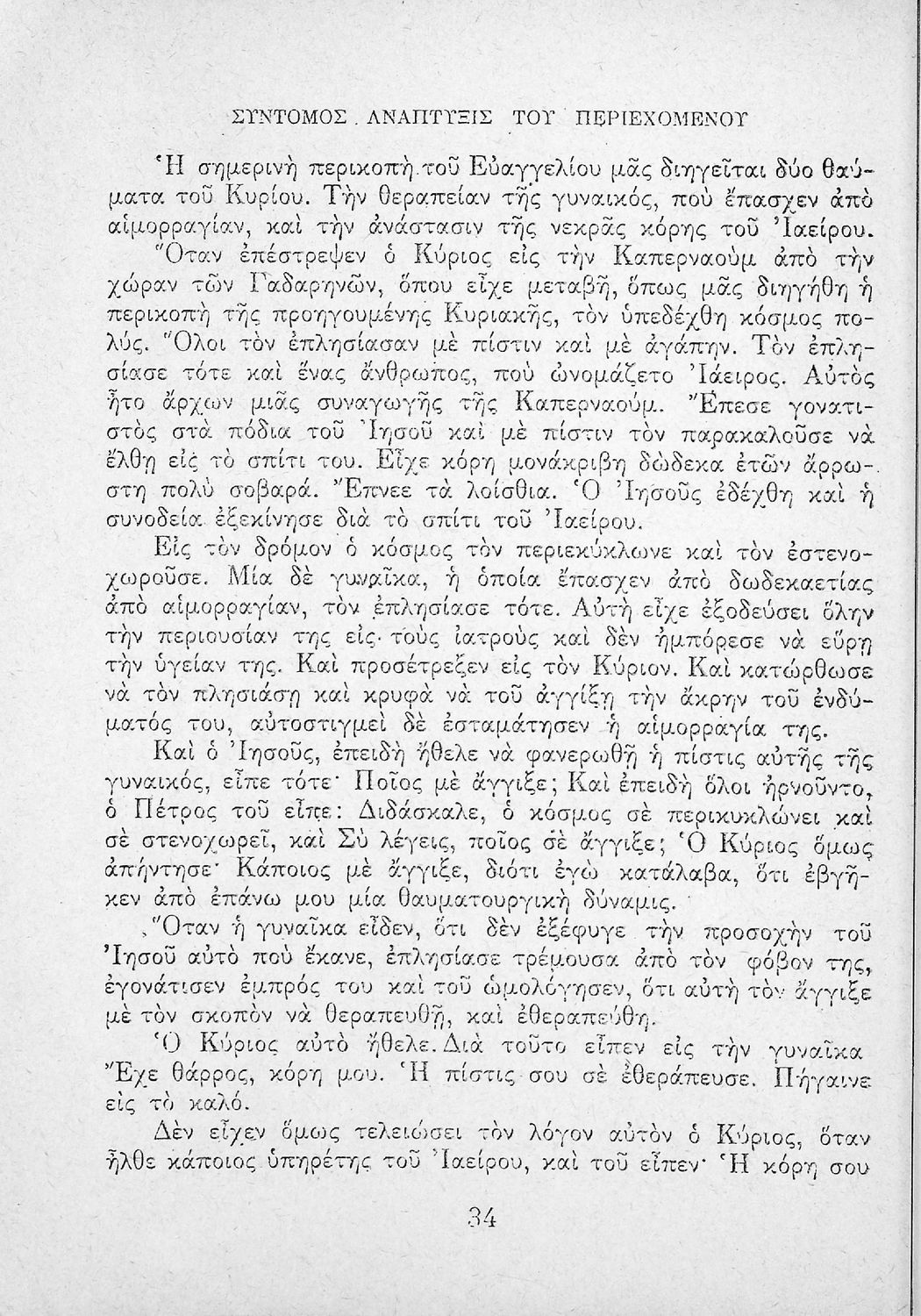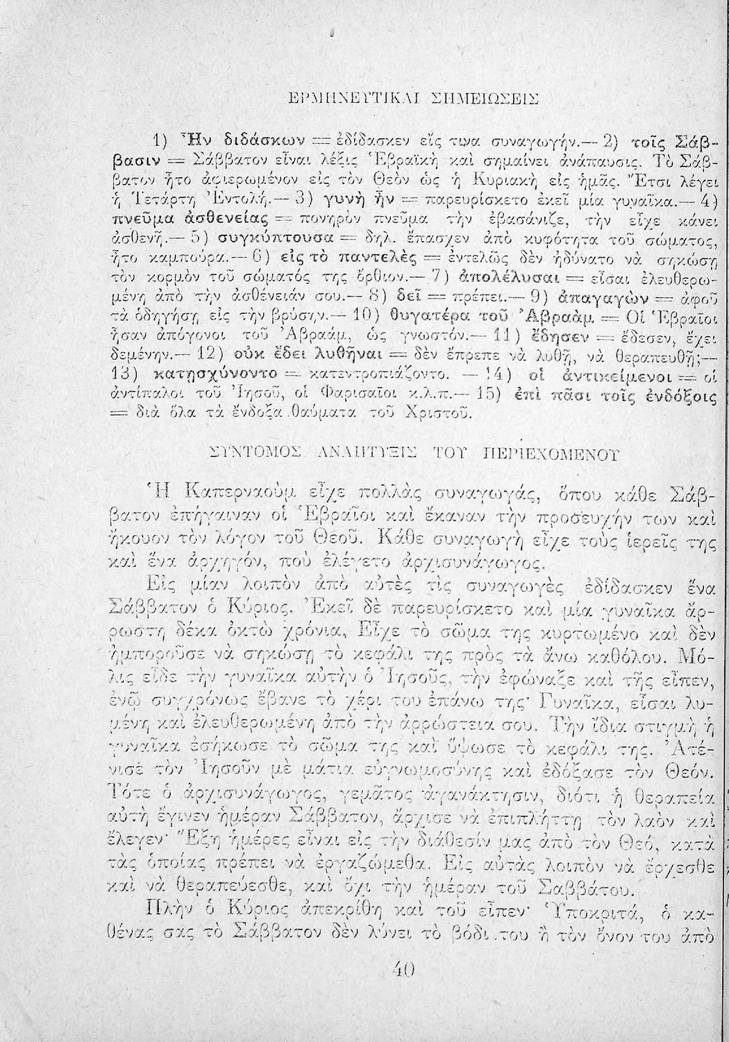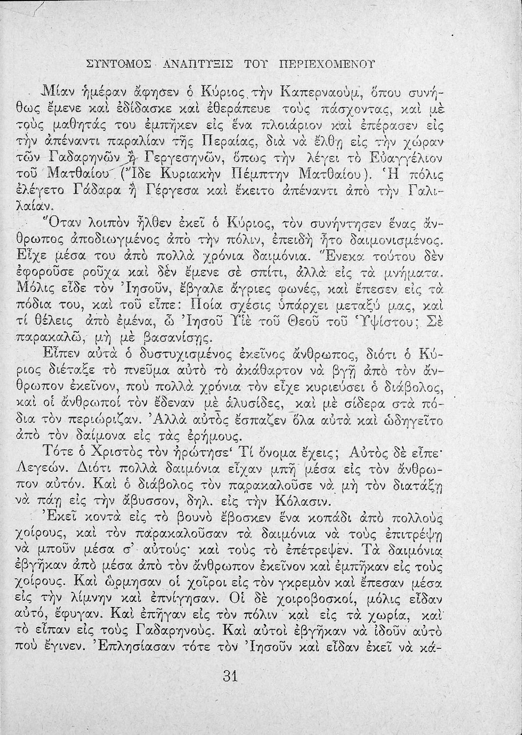 Το σύγγραμμα ήταν μαθητικό βοήθημα για το μάθημα των Θρησκευτικών. Περιέχει κείμενο, σχόλια των Ευαγγελίων