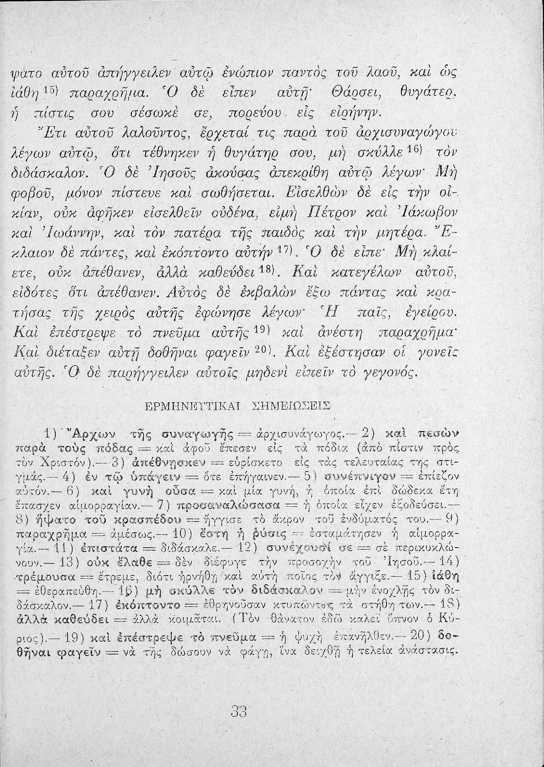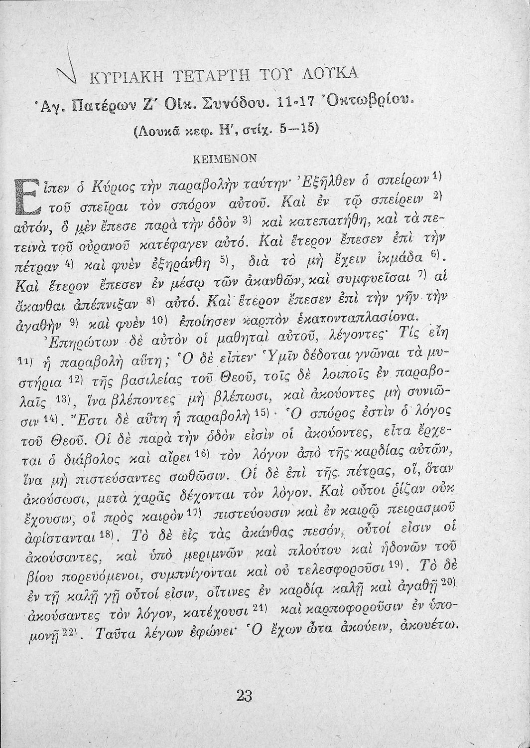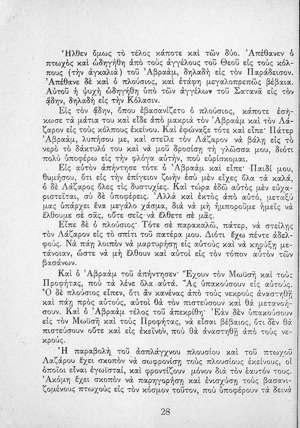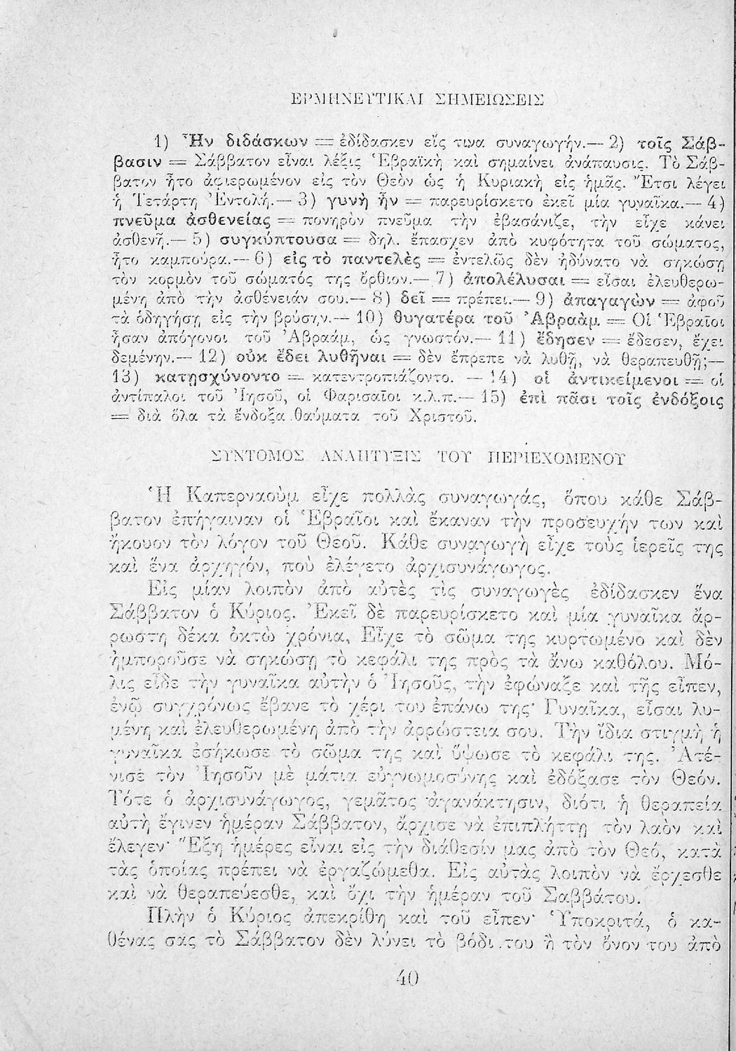 Το σύγγραμμα ήταν μαθητικό βοήθημα για το μάθημα των Θρησκευτικών. Περιέχει κείμενο, σχόλια των Ευαγγελίων