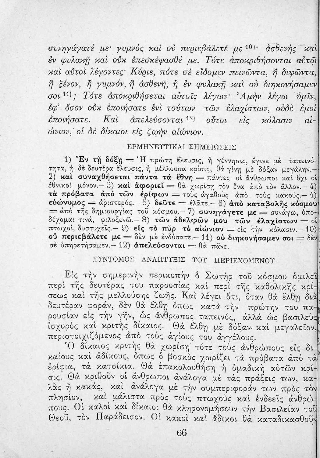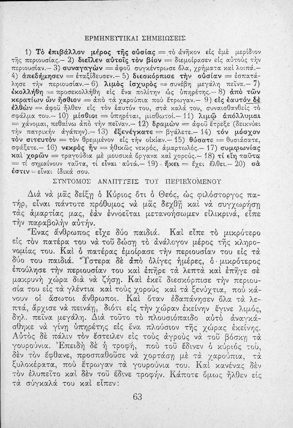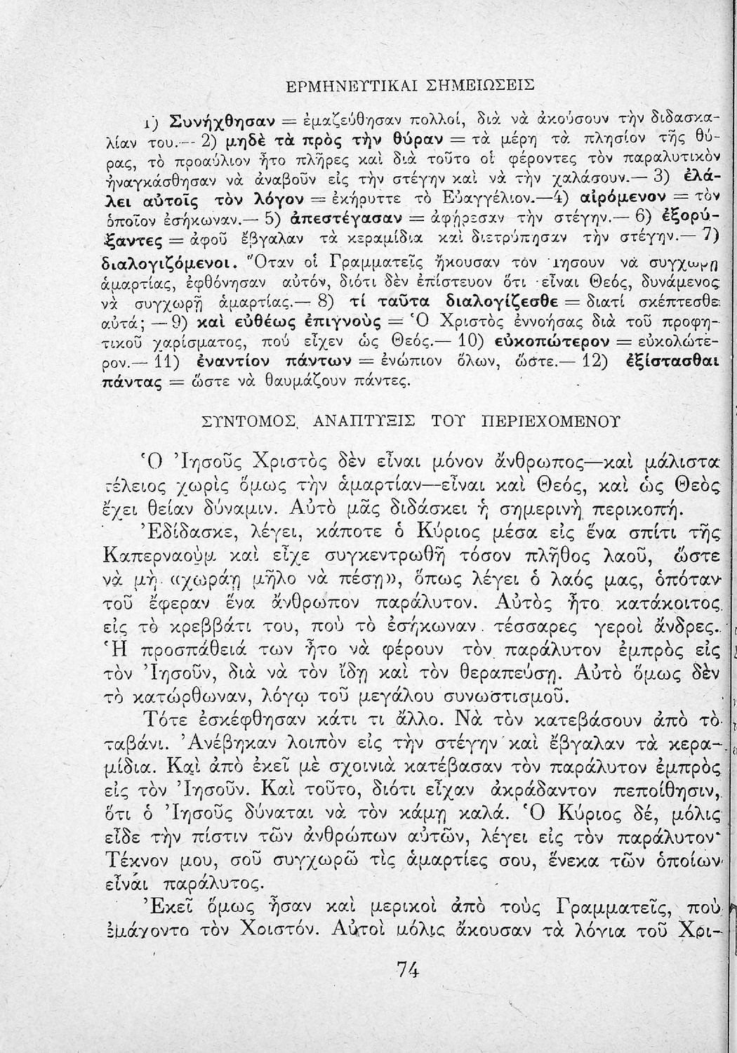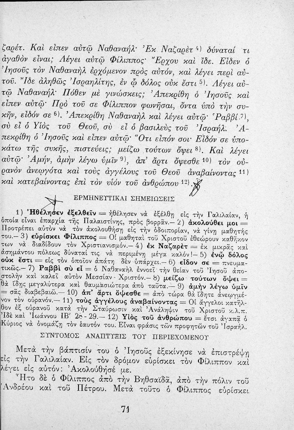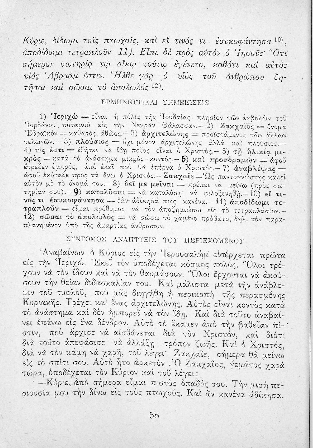 Το σύγγραμμα ήταν μαθητικό βοήθημα για το μάθημα των Θρησκευτικών. Περιέχει κείμενο, σχόλια των Ευαγγελίων