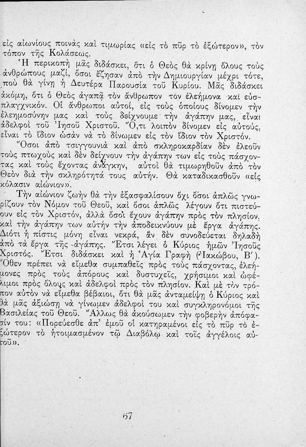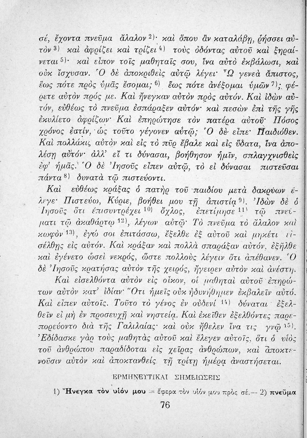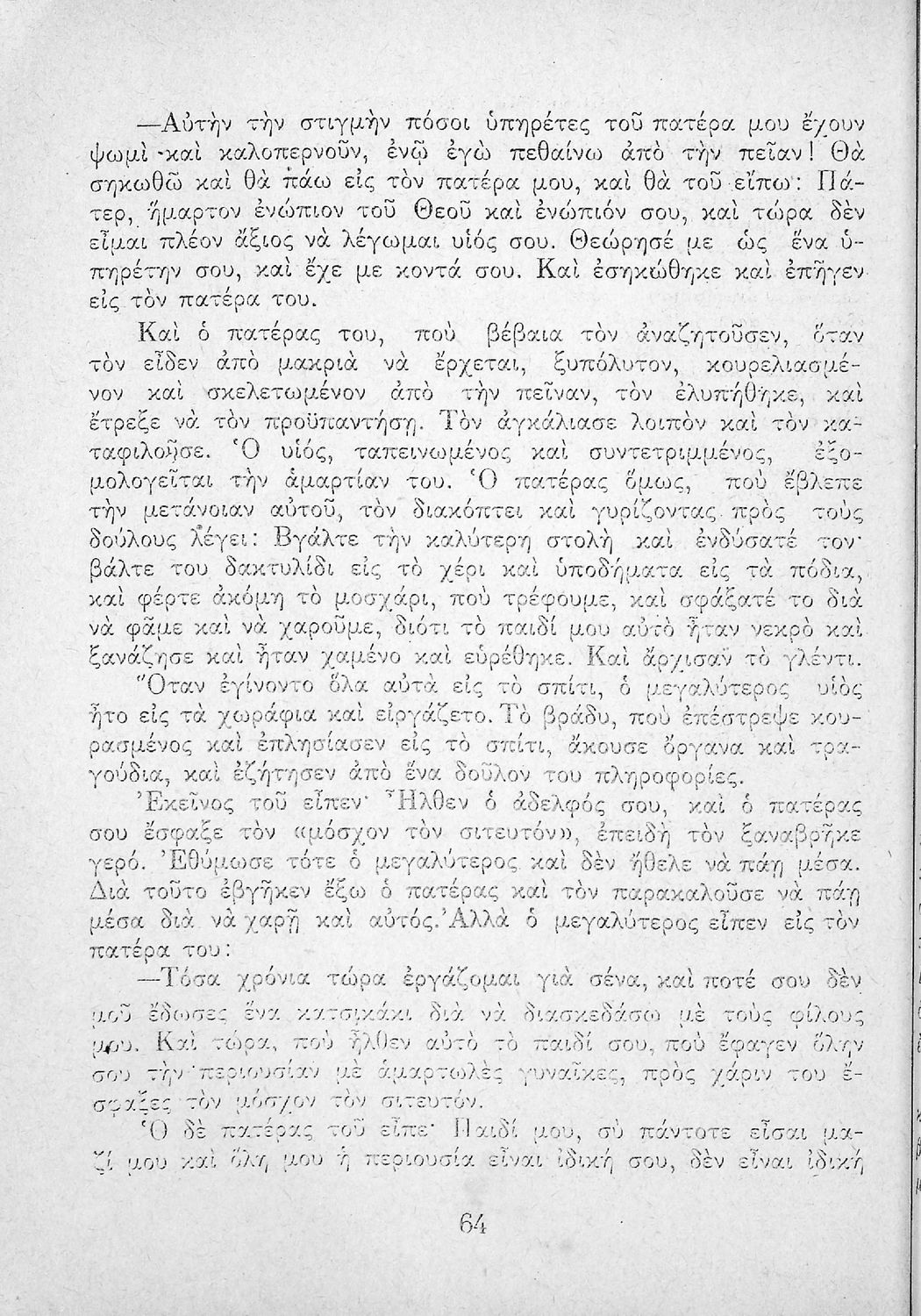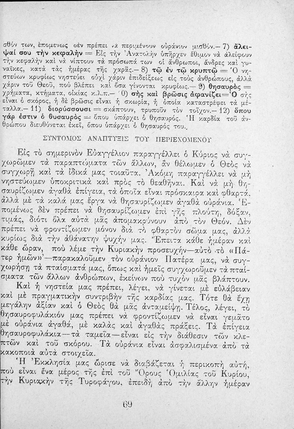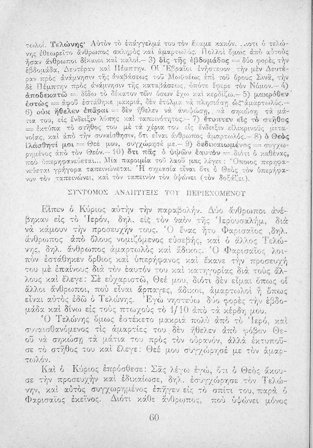 Το σύγγραμμα ήταν μαθητικό βοήθημα για το μάθημα των Θρησκευτικών. Περιέχει κείμενο, σχόλια των Ευαγγελίων