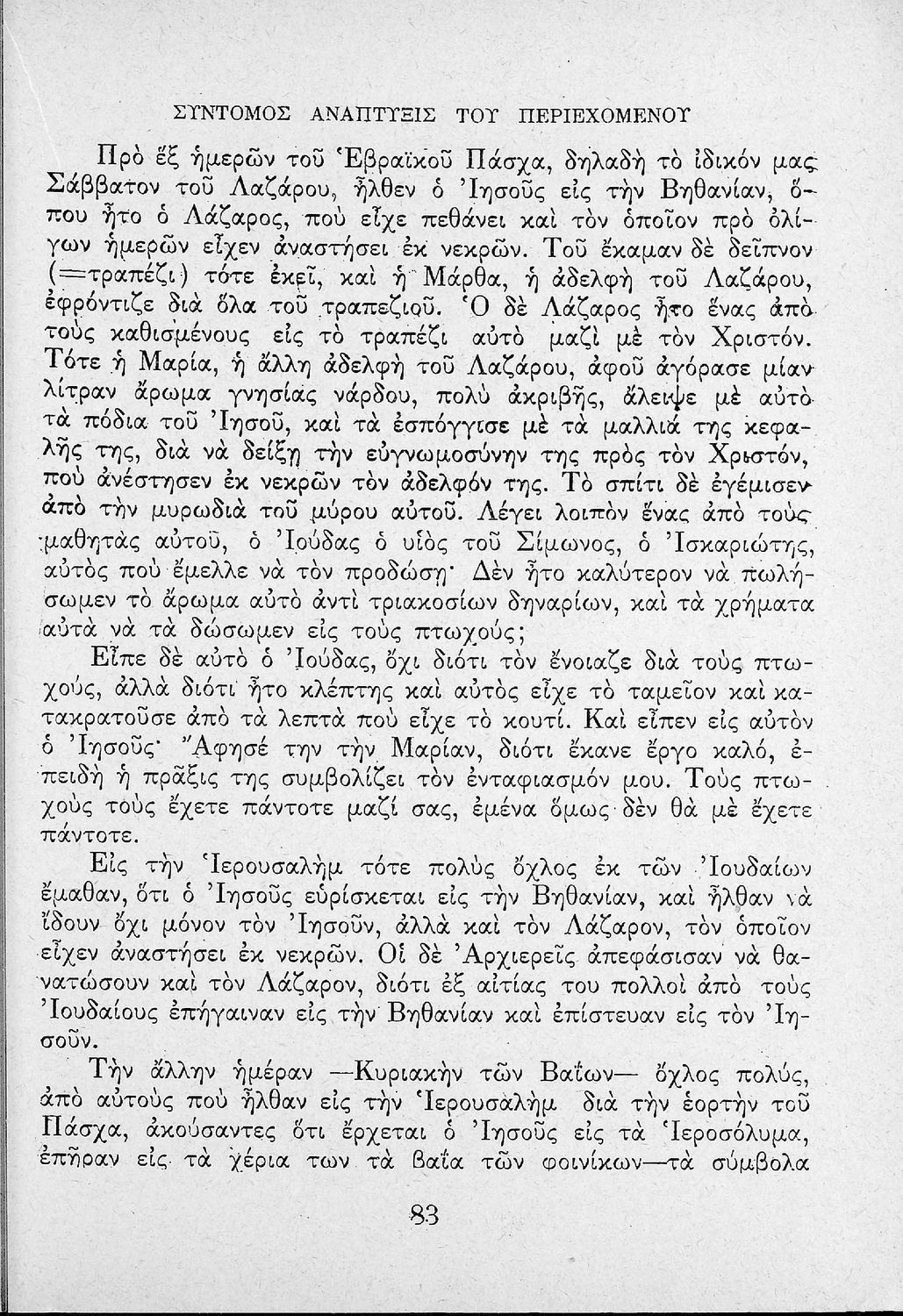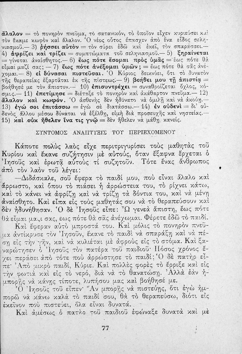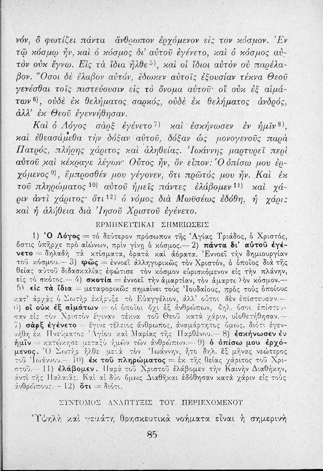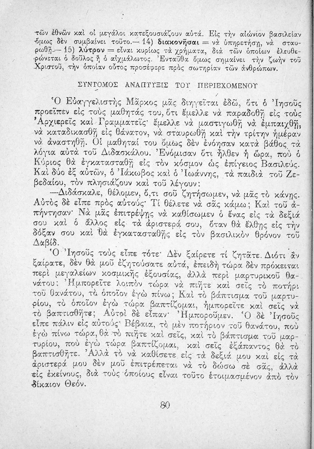 Το σύγγραμμα ήταν μαθητικό βοήθημα για το μάθημα των Θρησκευτικών. Περιέχει κείμενο, σχόλια των Ευαγγελίων