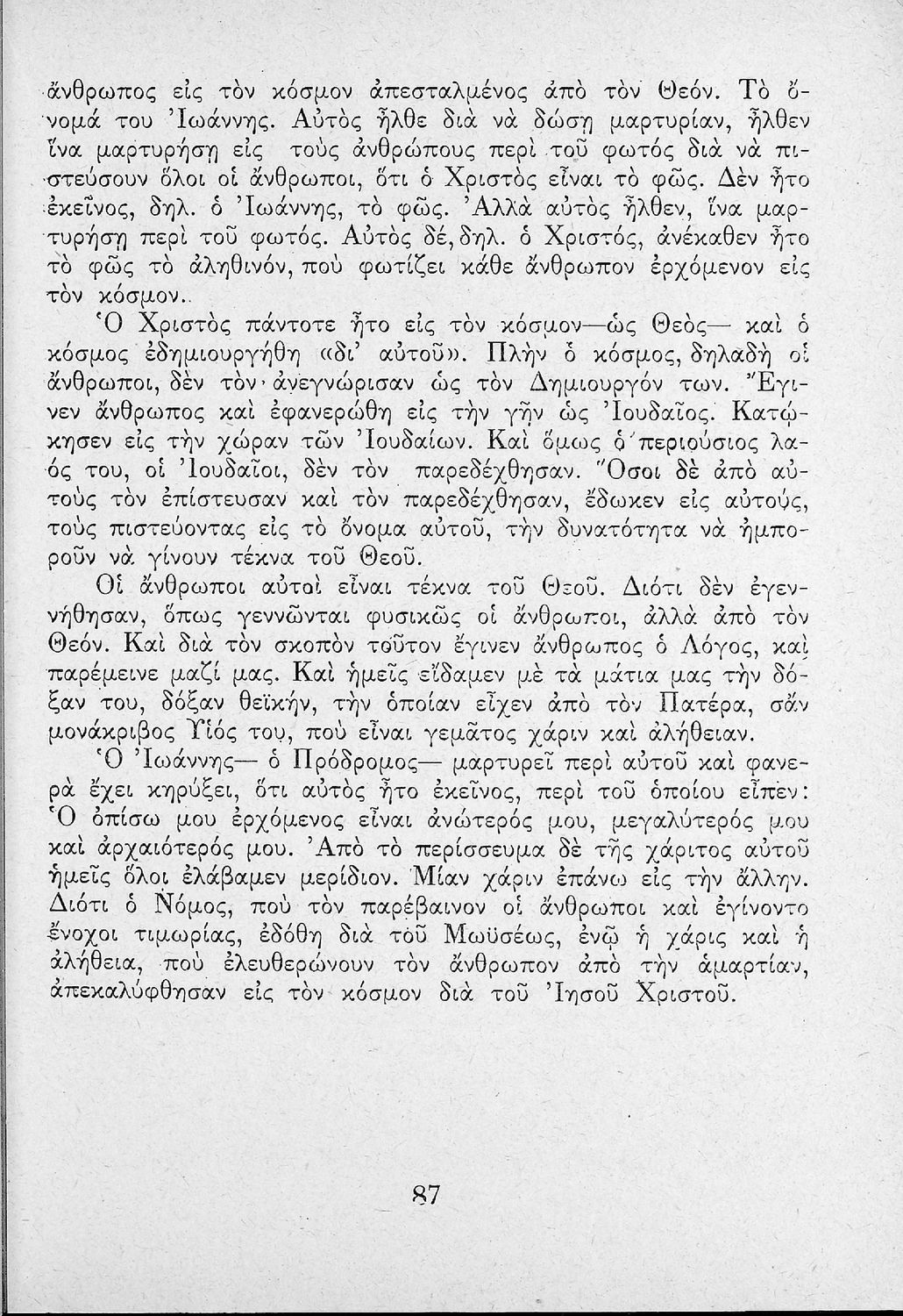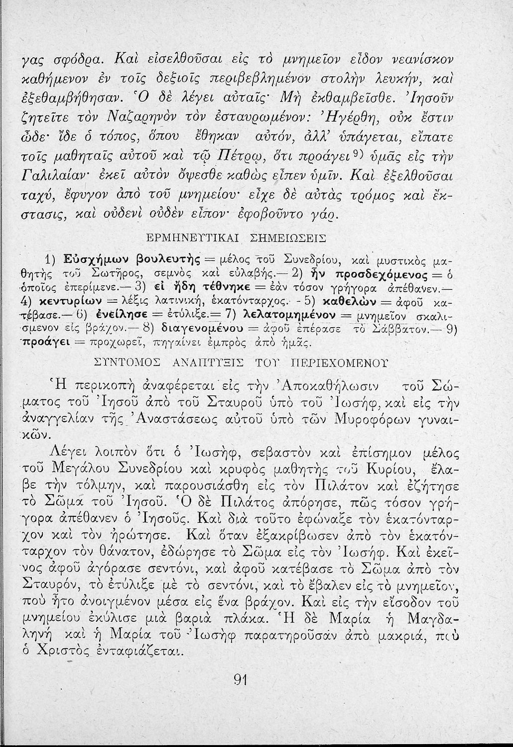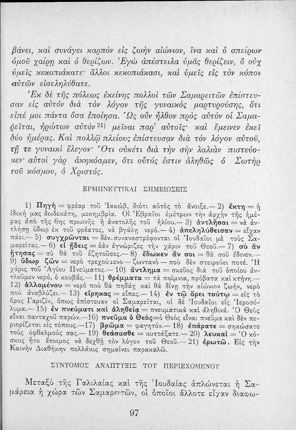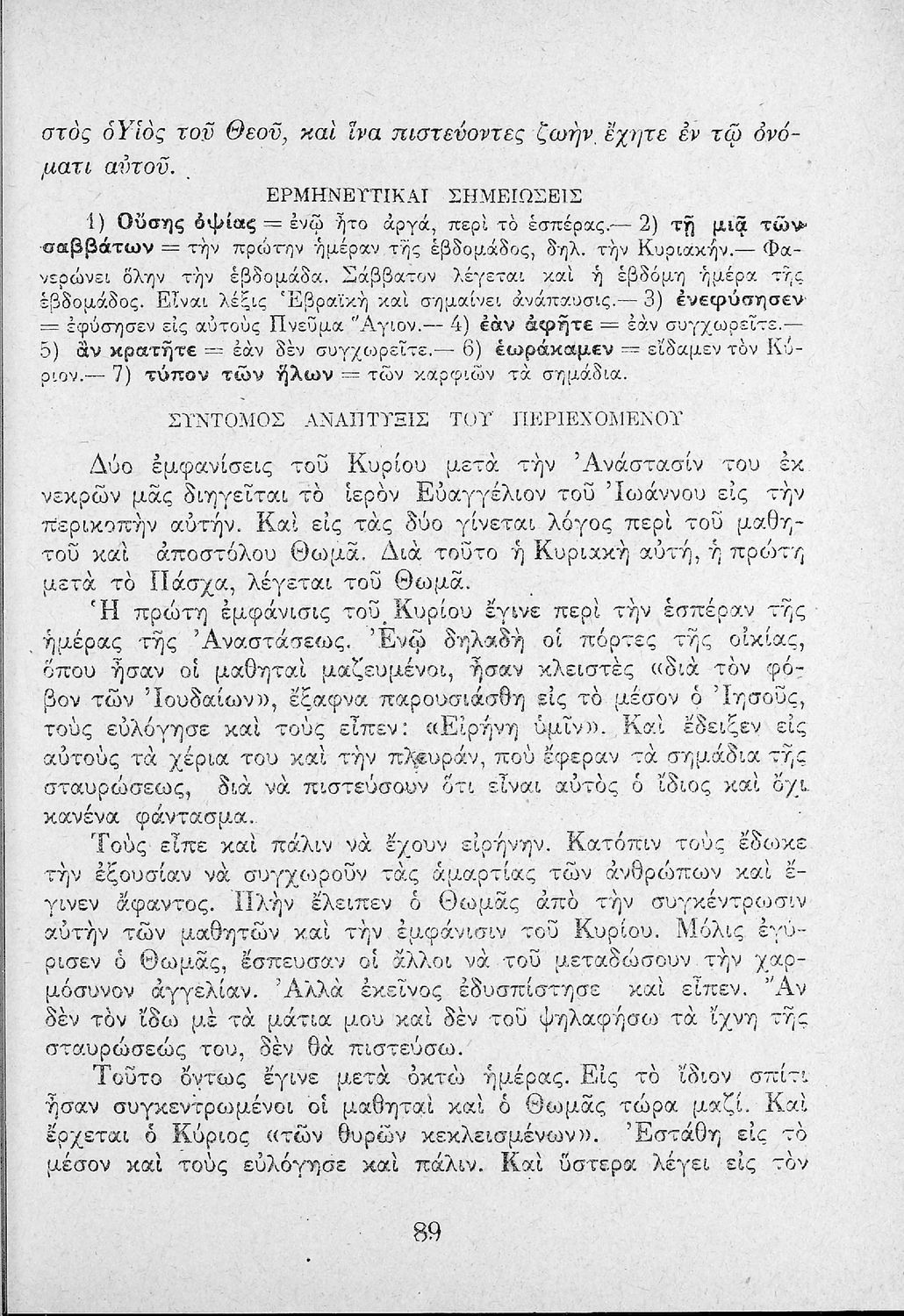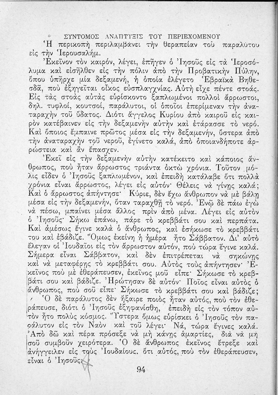 Το σύγγραμμα ήταν μαθητικό βοήθημα για το μάθημα των Θρησκευτικών. Περιέχει κείμενο, σχόλια των Ευαγγελίων