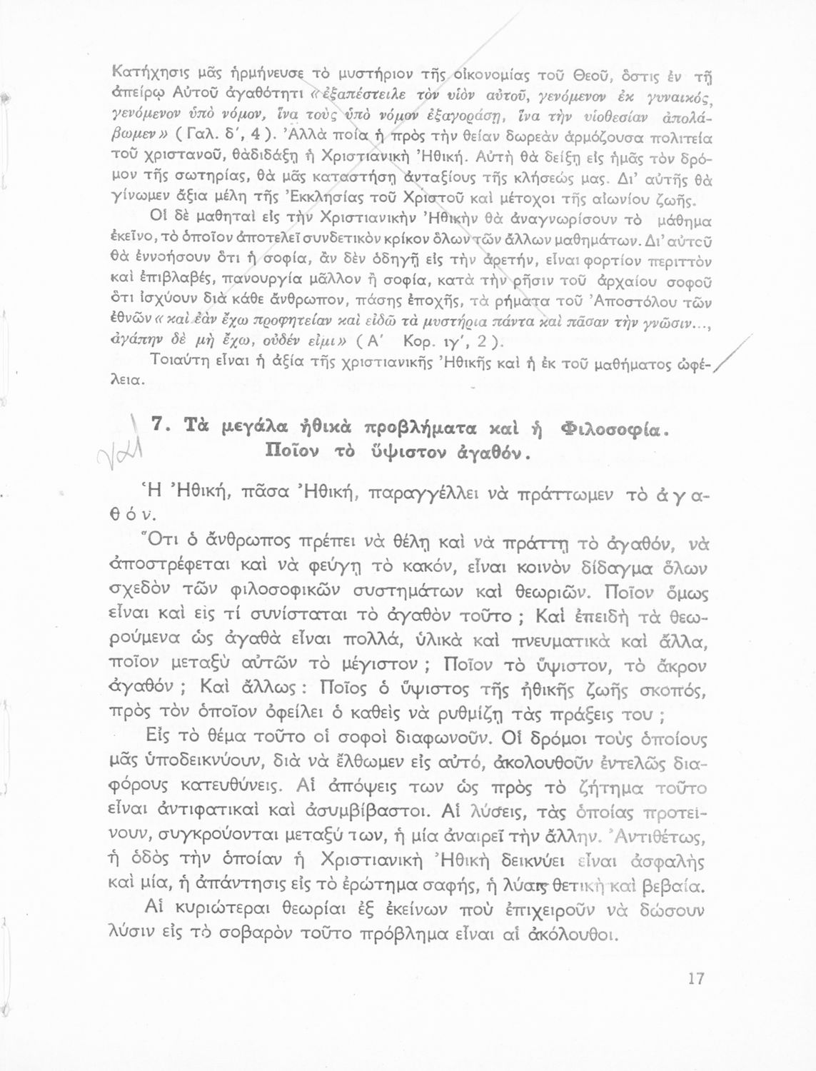 Βαθμίδα εκπαίδευσης: Δευτεροβάθμια Τάξη: ΣΤ' Γυμνασίου Μάθημα: Θρησκευτικά Γλώσσα: Καθαρεύουσα Παρουσίαση περιεχομένου: Σχολικό εγχειρίδιο Θρησκευτικών ΣΤ ' Γυμνασίου που πραγματεύεται την έννοια της αρετής και της ηθικής, της αμαρτίας και της λύτρωσης, της δικαιοσύνης και της αγάπης όπως αυτή ορίζεται από το Χριστιανισμό. |
