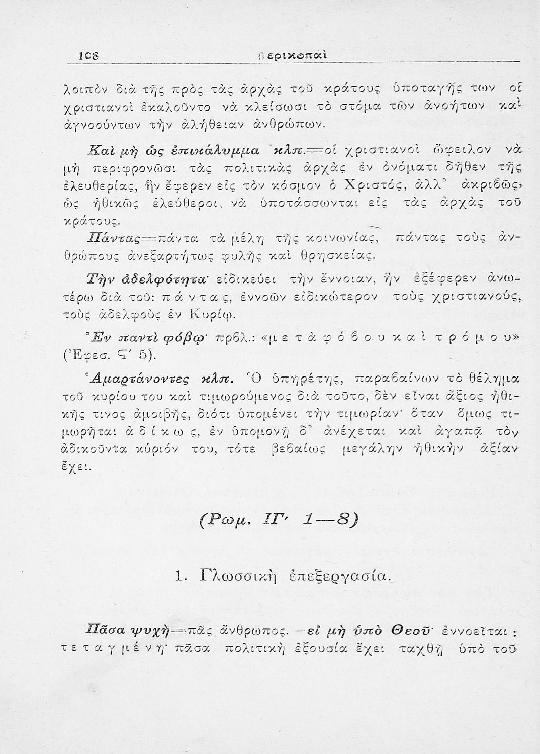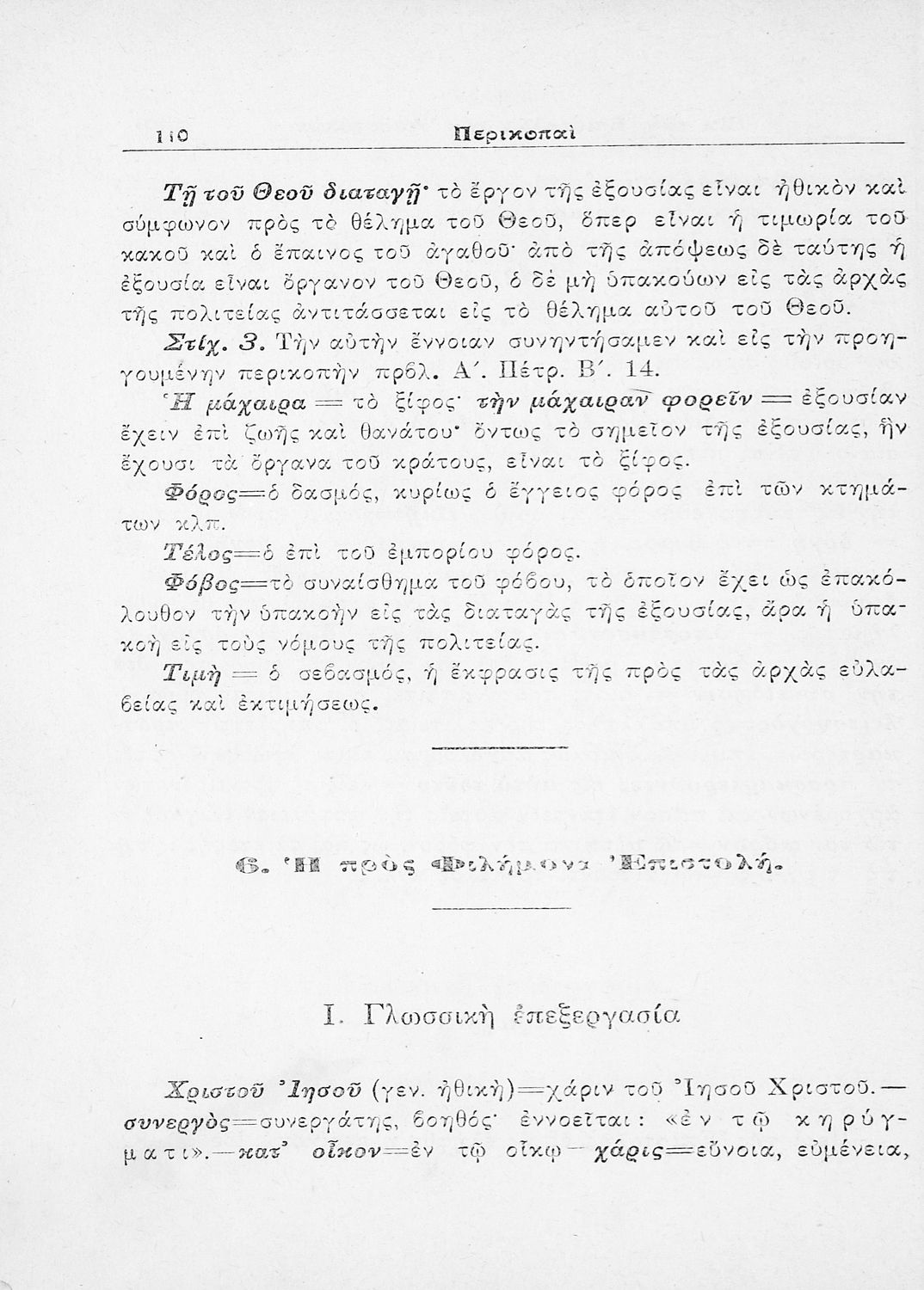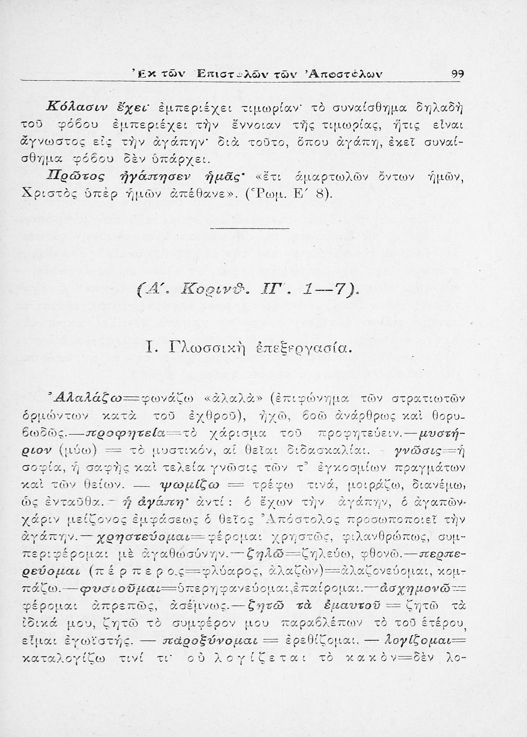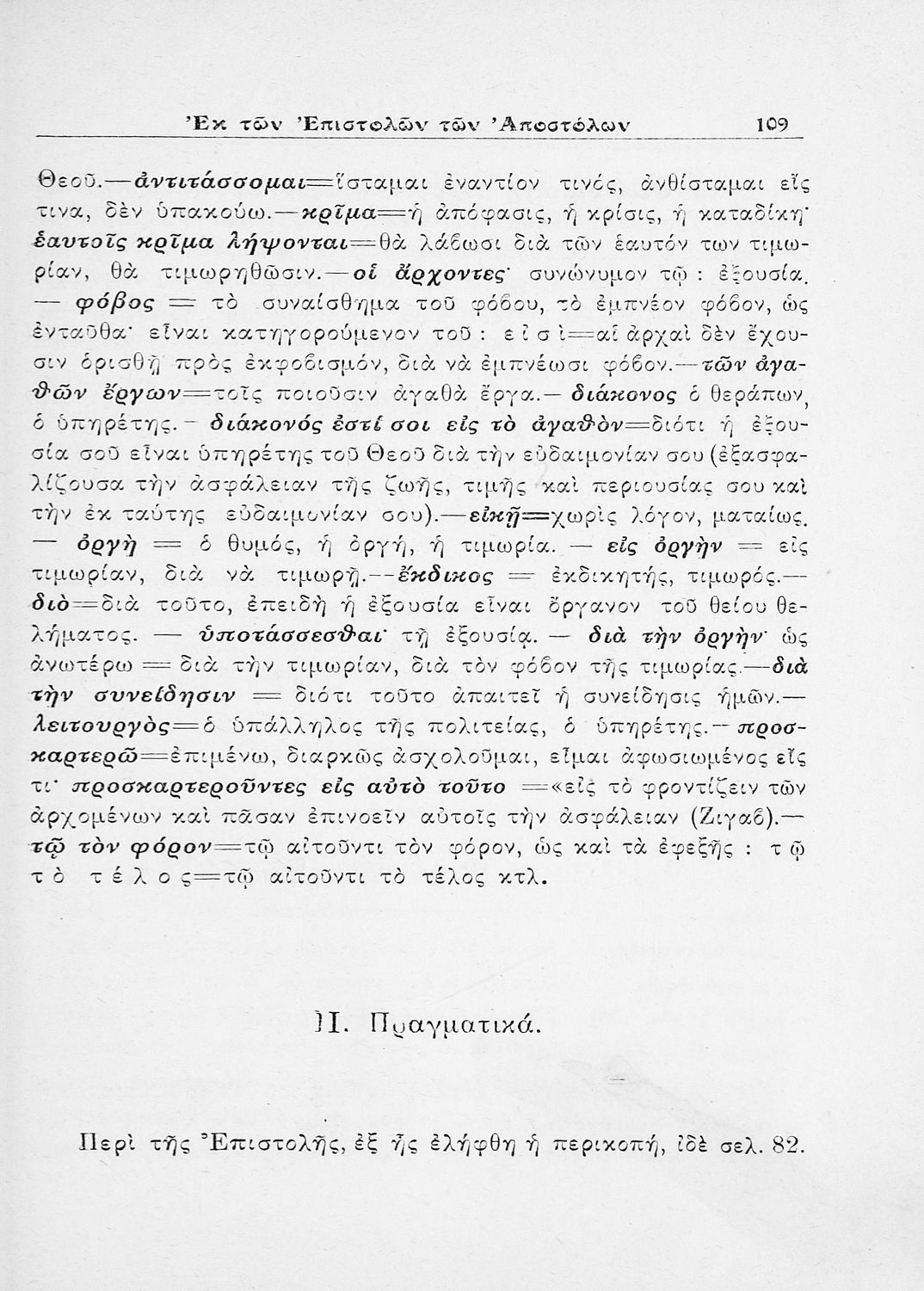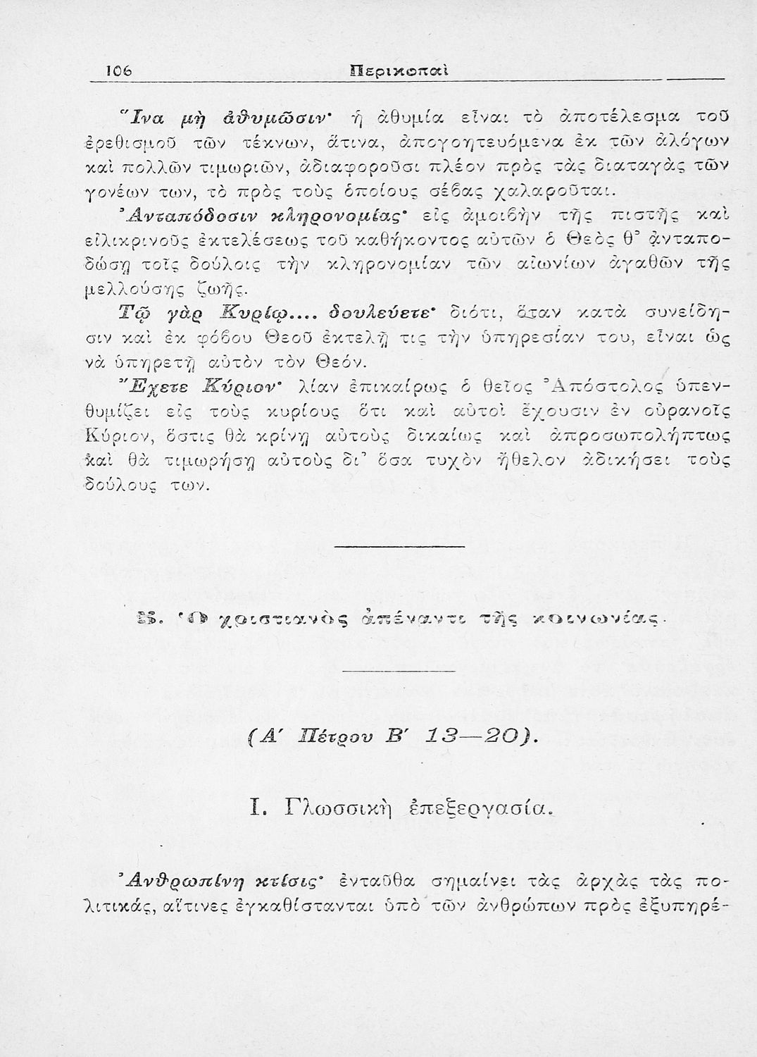 Σχολικό εγχειρίδιο Θρησκευτικών για τα Γυμνάσια, τα Διδασκαλεία και τα Παρθεναγωγεία που περιλαμβάνει αποσπάσματα από τις πράξεις των Αποστόλων, περικοπές ύμνων και ψαλμωδιών και επιστολές του Αποστόλου Παύλου.