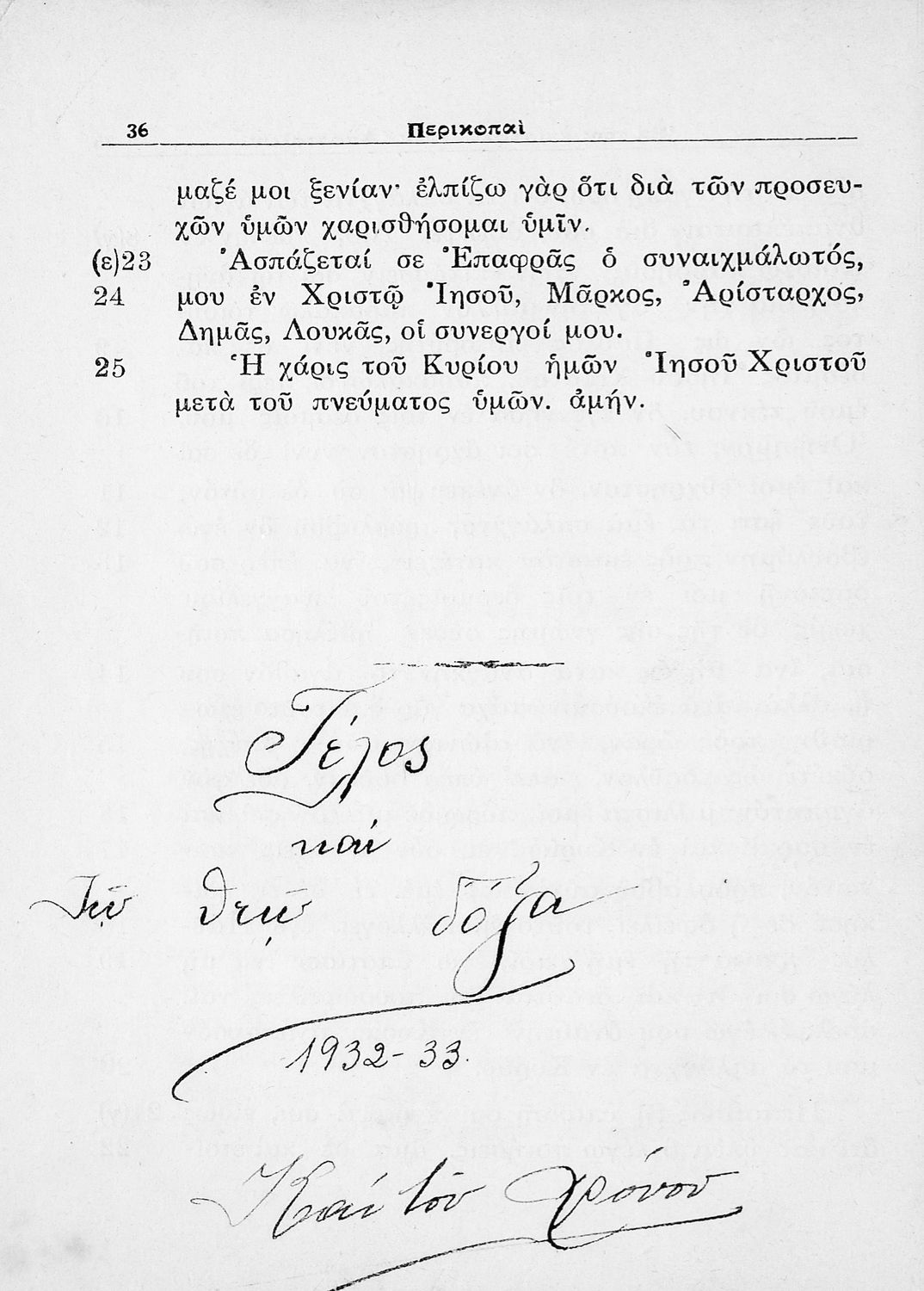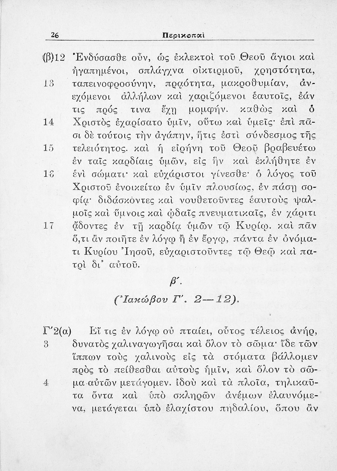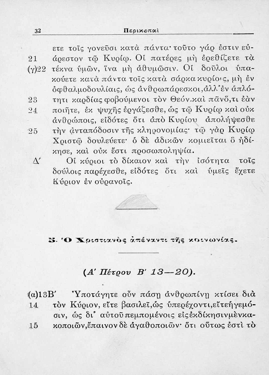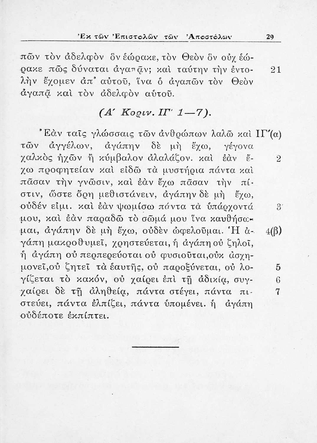 Σχολικό εγχειρίδιο Θρησκευτικών για τα Γυμνάσια, τα Διδασκαλεία και τα Παρθεναγωγεία που περιλαμβάνει αποσπάσματα από τις πράξεις των Αποστόλων, περικοπές ύμνων και ψαλμωδιών και επιστολές του Αποστόλου Παύλου.