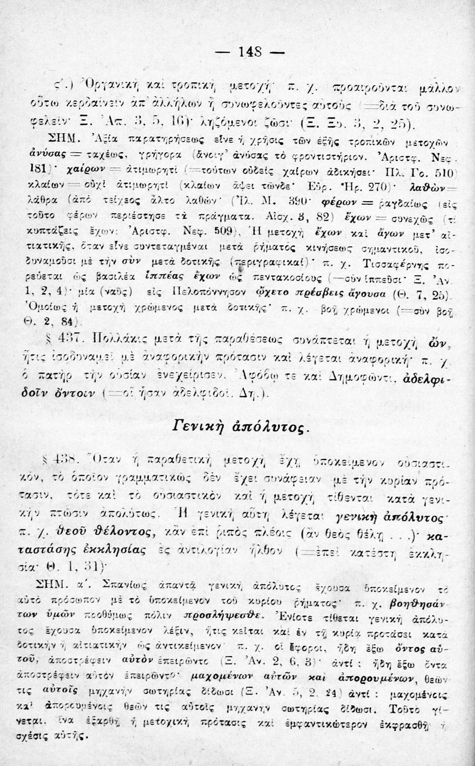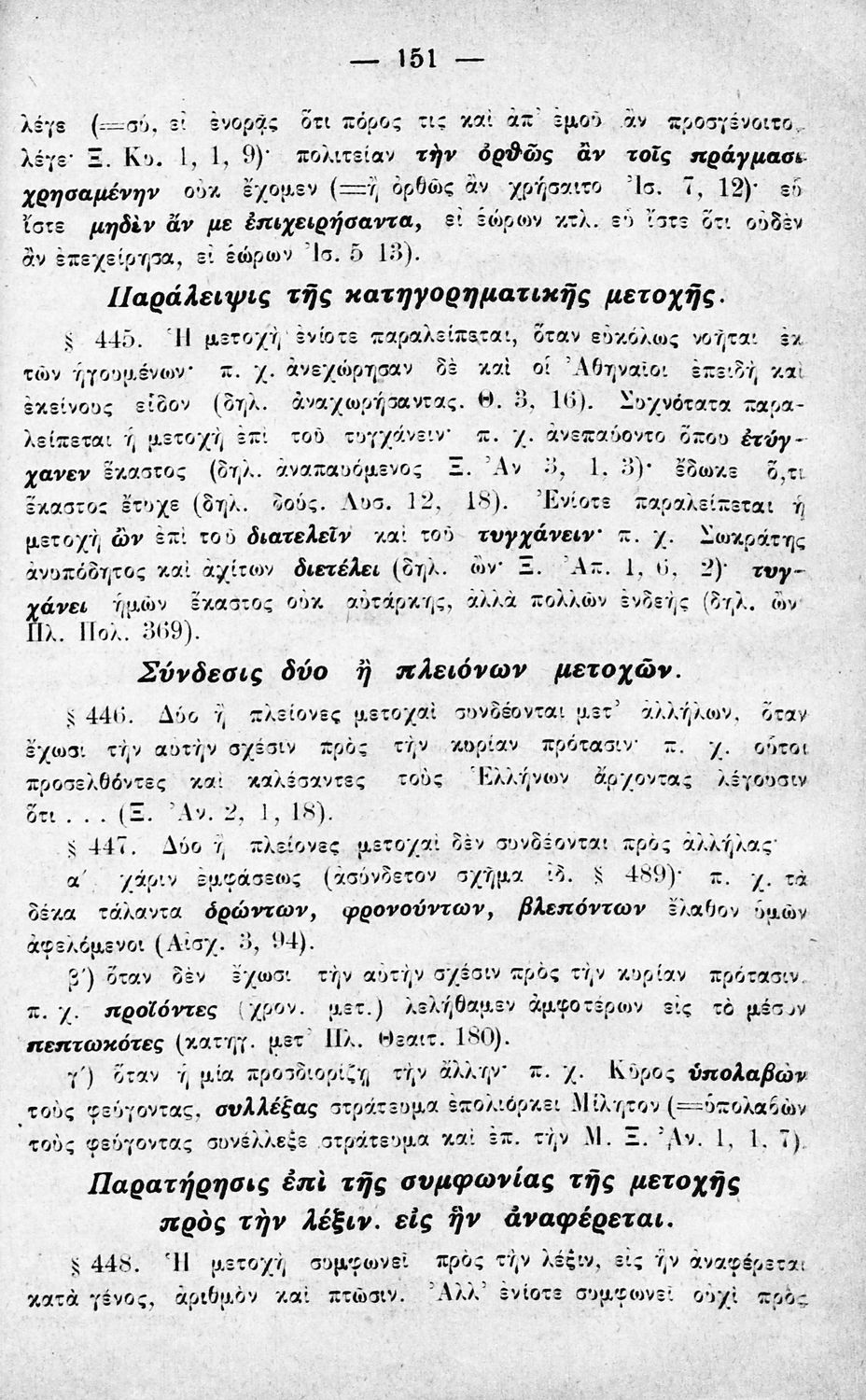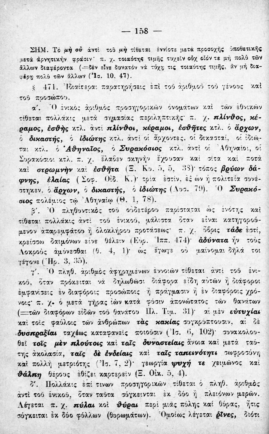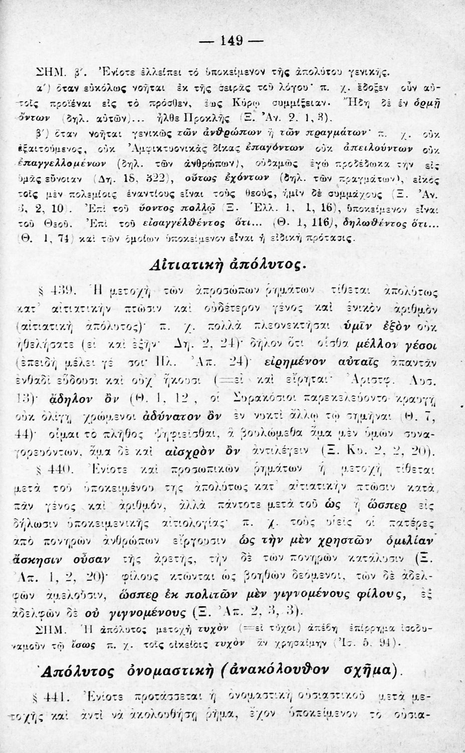 Σχολικό εγχειρίδιο Αρχαίων Ελληνικών για τα Ελληνικά Σχολεία, Παρθεναγωγεία και Γυμνάσια που περιέχει τους κανόνες γραμματικής και είναι χωρισμένο σε φθογγολογικό, τυπολογικό και ετυμολογικό μέρος.