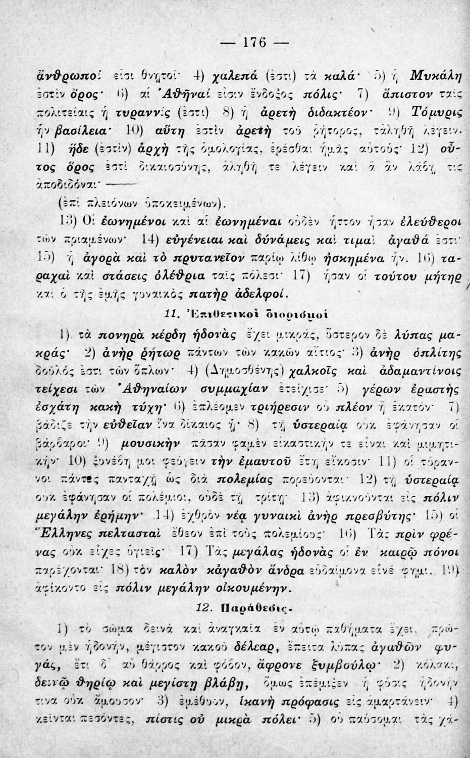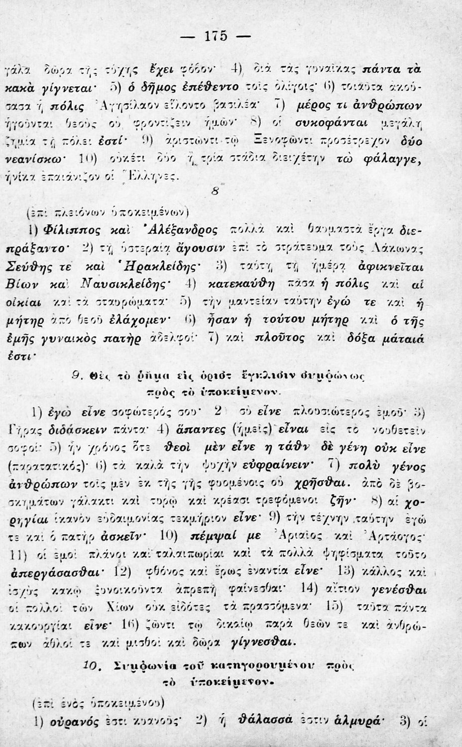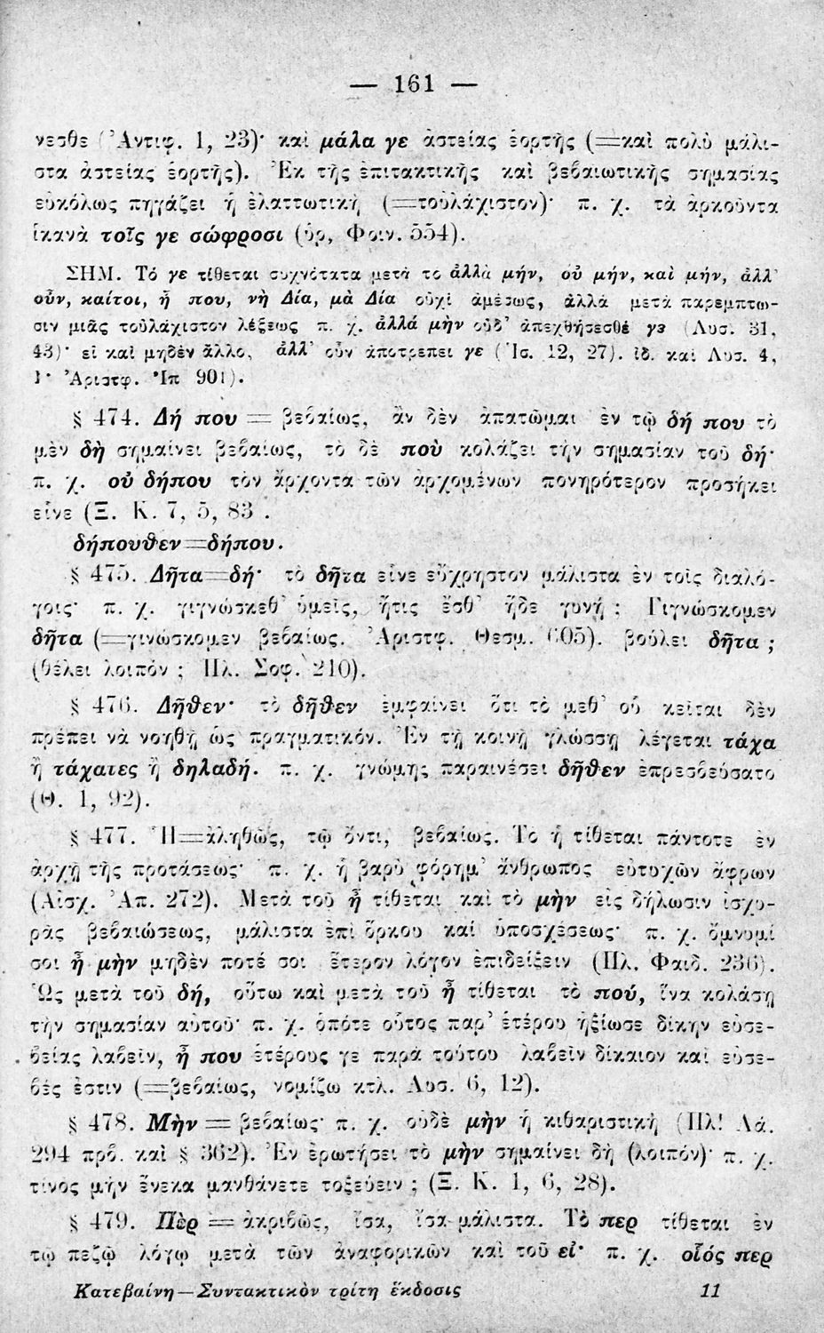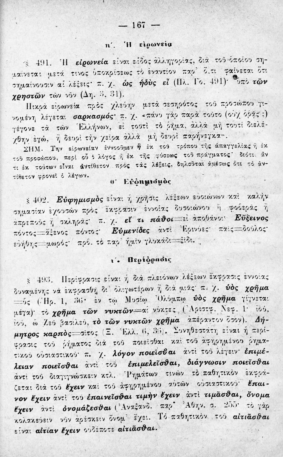 Σχολικό εγχειρίδιο Αρχαίων Ελληνικών για τα Ελληνικά Σχολεία, Παρθεναγωγεία και Γυμνάσια που περιέχει τους κανόνες γραμματικής και είναι χωρισμένο σε φθογγολογικό, τυπολογικό και ετυμολογικό μέρος.
