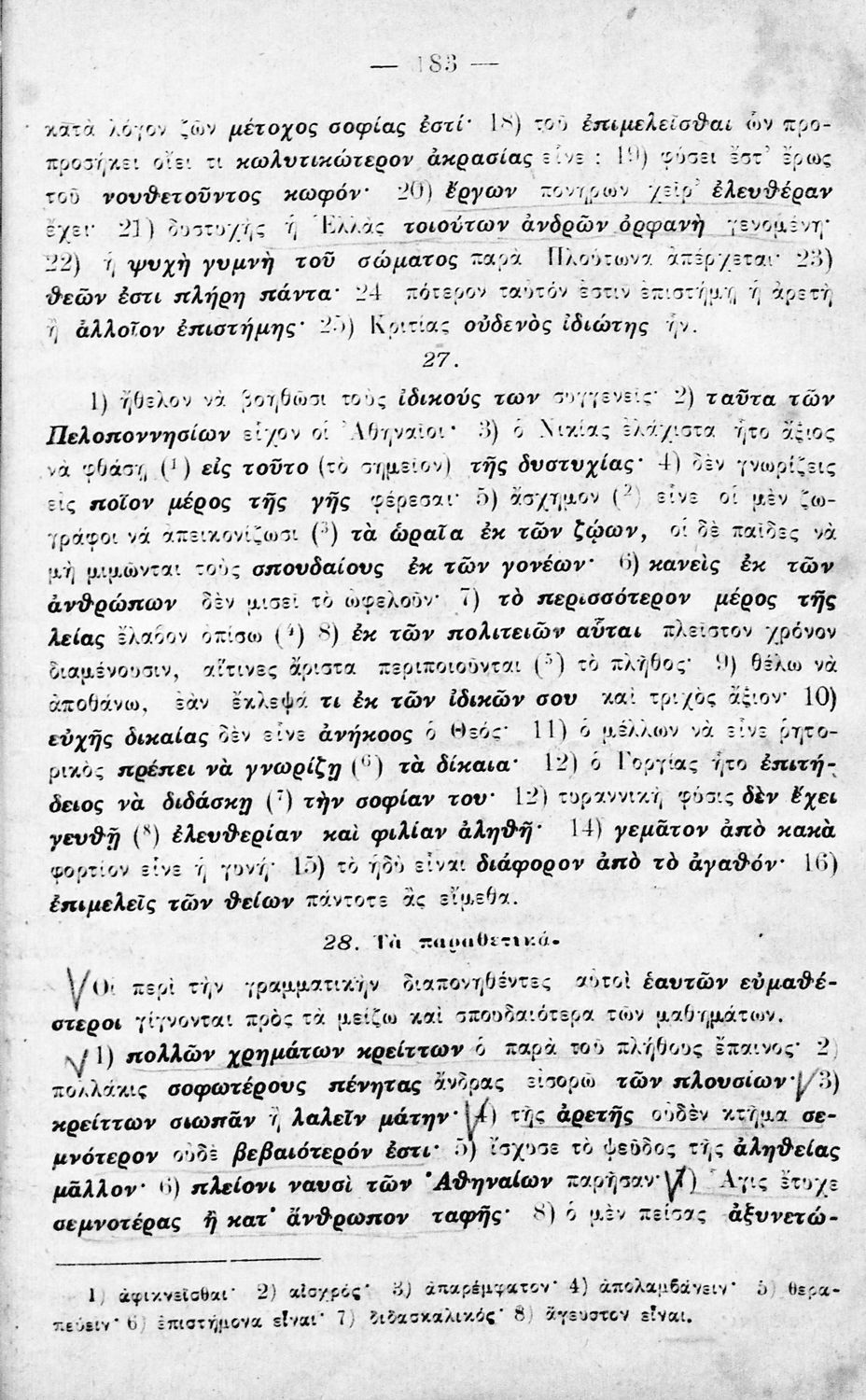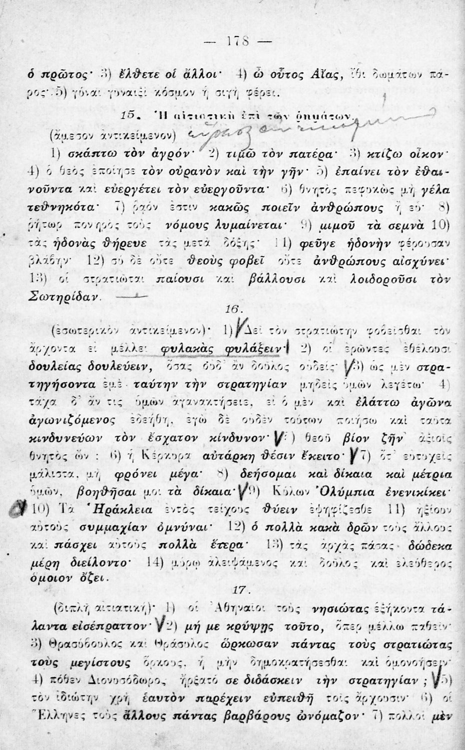 Σχολικό εγχειρίδιο Αρχαίων Ελληνικών για τα Ελληνικά Σχολεία, Παρθεναγωγεία και Γυμνάσια που περιέχει τους κανόνες γραμματικής και είναι χωρισμένο σε φθογγολογικό, τυπολογικό και ετυμολογικό μέρος.