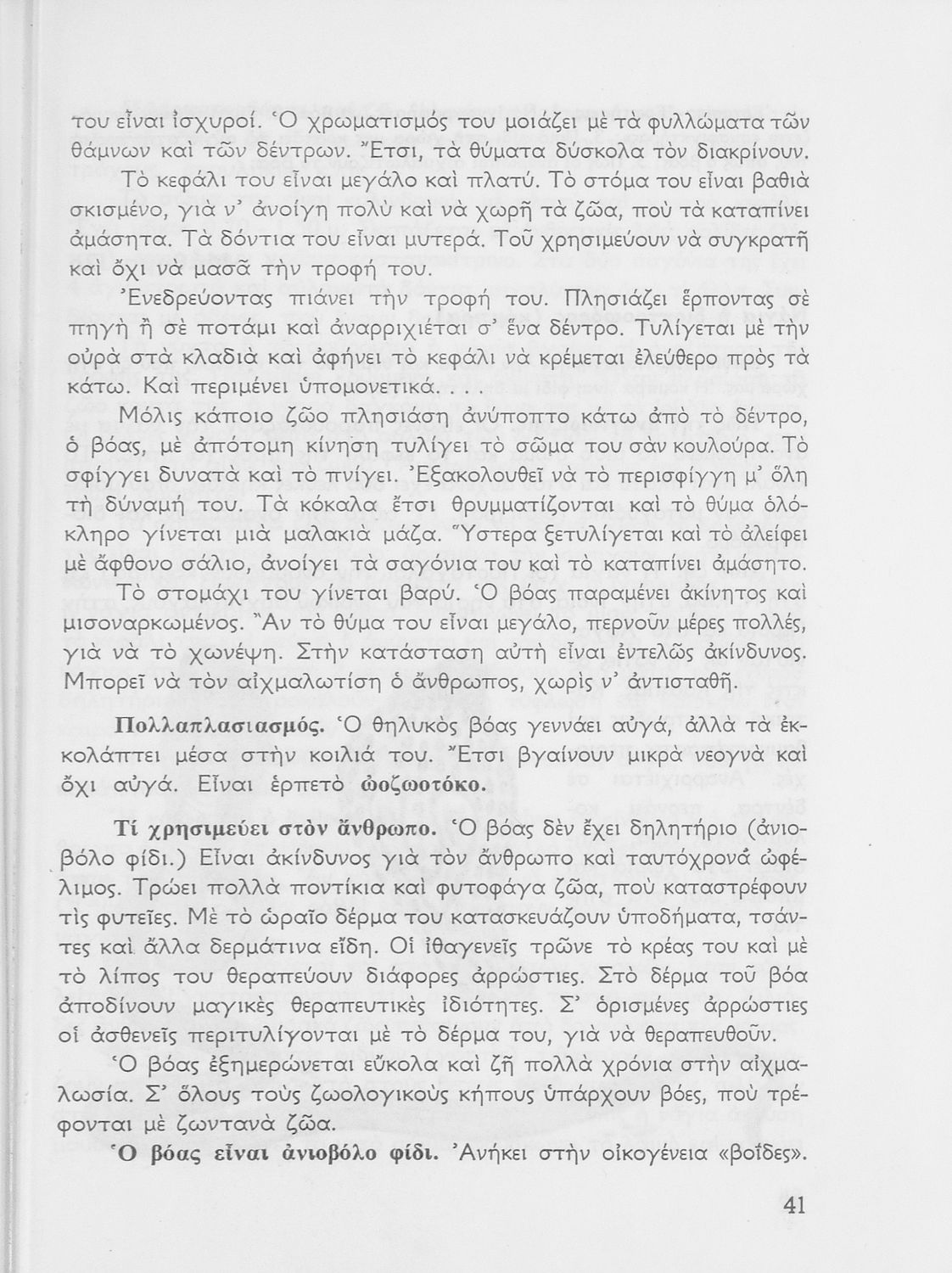 LDR 01489 2200229 4500 035 ## _a01-46123 040 ## _aΙνστιτούτο Εκπαιδευτικής Πολιτικής 041 ## _ael 100 ## _aΛέων Βελιαρούτης _aΑθ. Οικονόμου-Αμίλλη 110 ## _a46123 245 0# _aΦυσική Ιστορία Ε΄ Δημοτικού 250 ## _a2η Έκδοση 260 ## _aΑθήνα _bΟργανισμός Εκδόσεως Διδακτικών Βιβλίων _c1976 300 ## _a196 _bΣκίτσα, εικόνες (ασπρόμαυρα και έγχρωμα) 520 ## _aΣχολικό εγχειρίδιο της Ε' Δημοτικού για το μάθημα της Φυσικής Ιστορίας. Περιέχει πληροφορίες για την ζωολογία φυτολογία και την ορυκτολογία. Το βιβλίο έχει εικόνες, οι οποίες διευκολύνουν τη διδασκαλία. Ο λόγος των κειμένων είναι απλός και κατανοητός για τους μαθητές. 521 ## _aΕ' Δημοτικού 522 ## _aΕλλάδα 546 ## _aΔημοτική 563 ## _aΜαλακό Εξώφυλλο 583 ## _a2708/21-4-1976 _c1976 650 #4 _aΑλυσίδα τροφής _aΑμφίβια _aΘηλαστικά _aΚτηνοτροφία _aΟρυκτά _aΠτηνά _aΤαξινόμηση ζώων _aΦυτά 700 ## _aΡούλα Κανέλη-Κανάκη