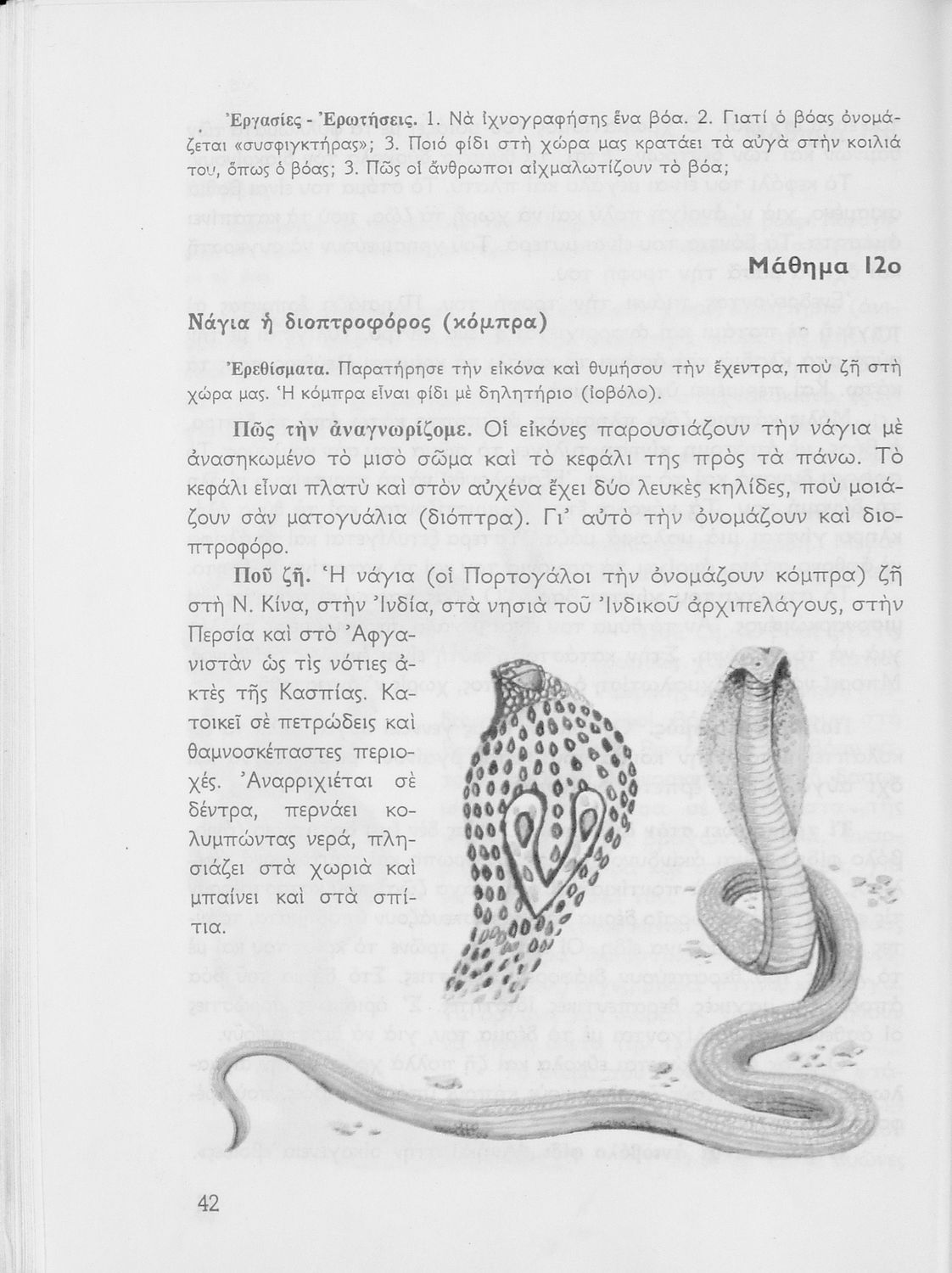 Σχολικό εγχειρίδιο της Ε' Δημοτικού για το μάθημα της Φυσικής Ιστορίας. Περιέχει πληροφορίες για την ζωολογία φυτολογία και την ορυκτολογία. Το βιβλίο έχει εικόνες, οι οποίες διευκολύνουν τη διδασκαλία. Ο λόγος των κειμένων είναι απλός και κατανοητός για τους μαθητές.