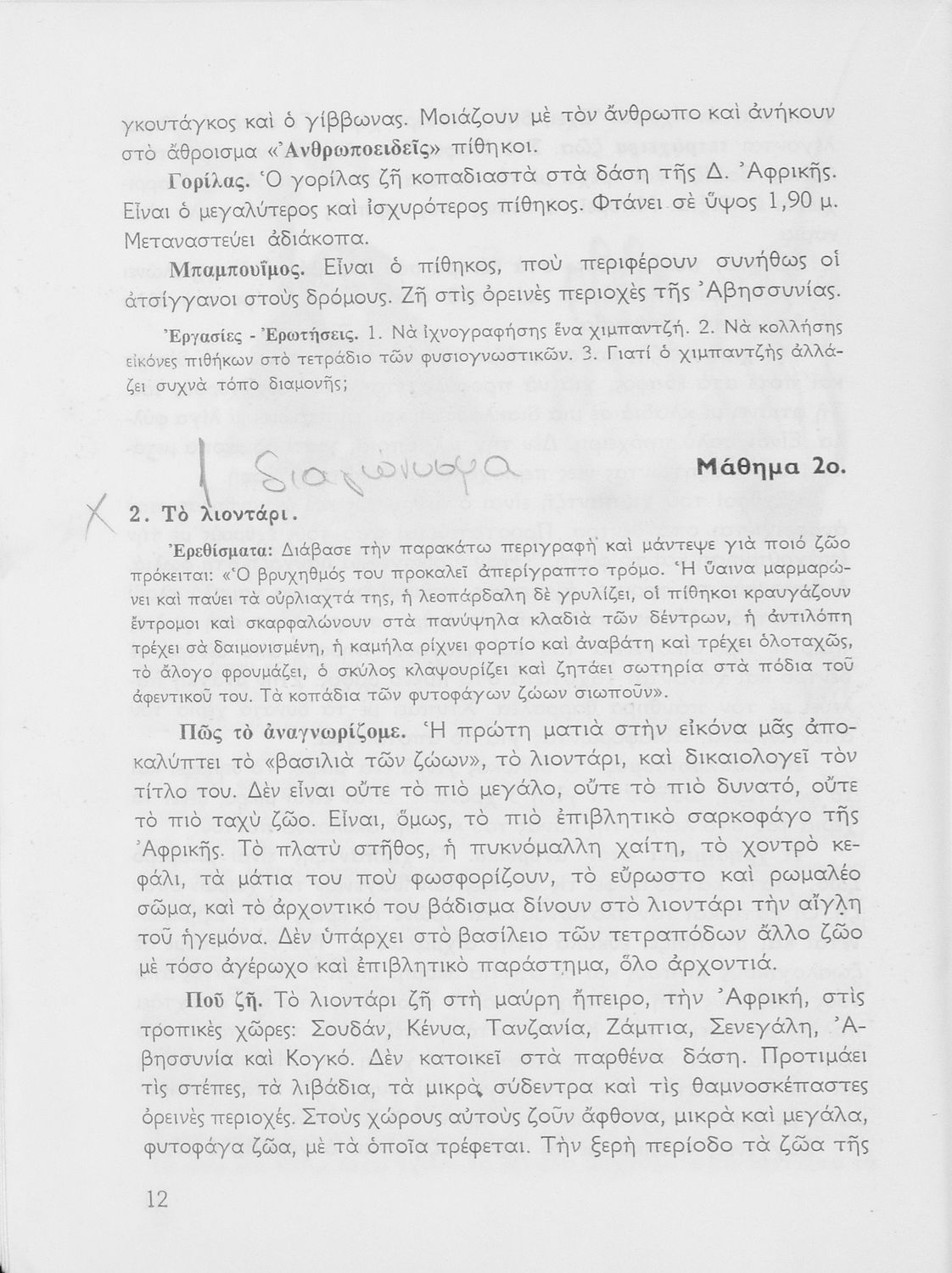 Μάθημα: Φυσική Ιστορία