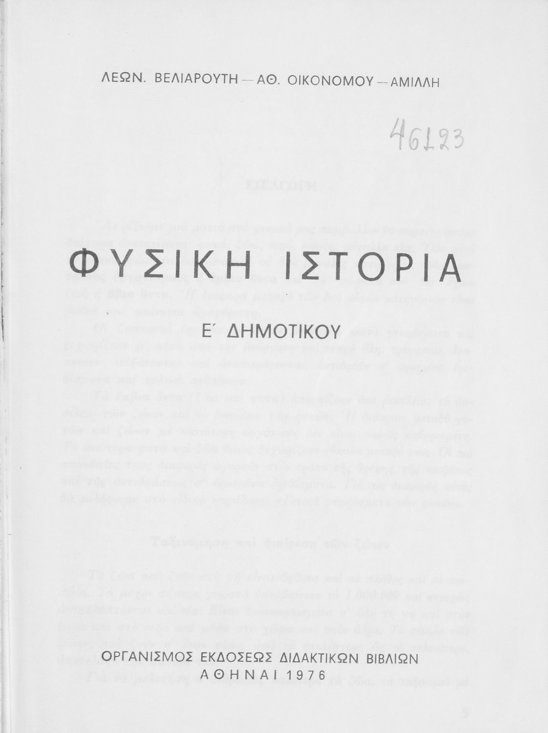 Τίτλος: Φυσική Ιστορία Ε΄ Δημοτικού