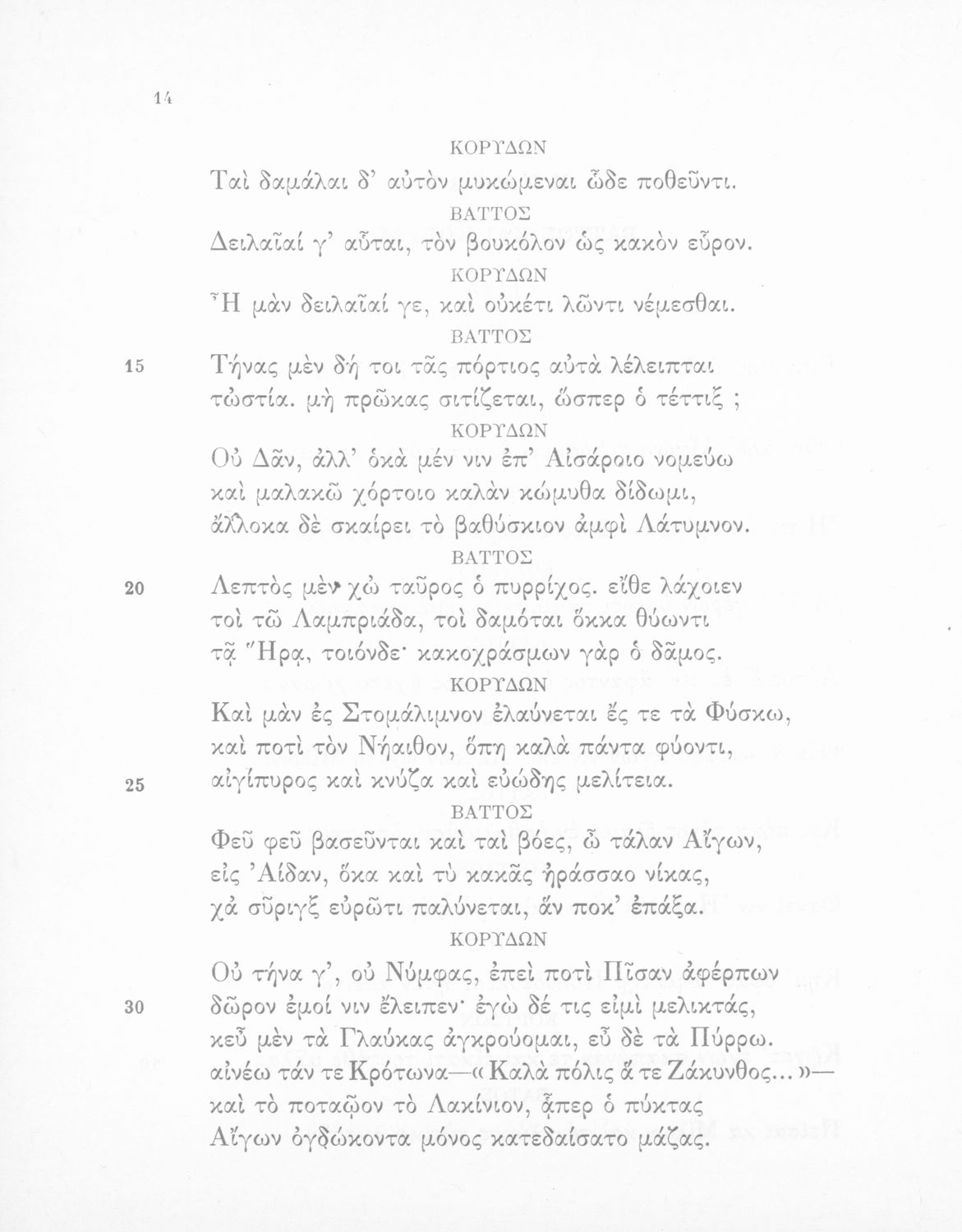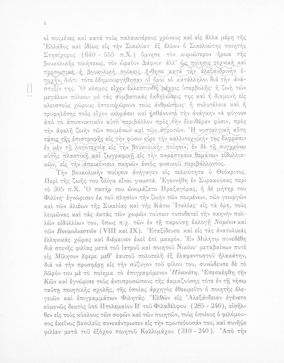 Θεόκριτου Ειδύλλια, δια την ΣΤ΄ Τάξιν των Γυμνασίων
