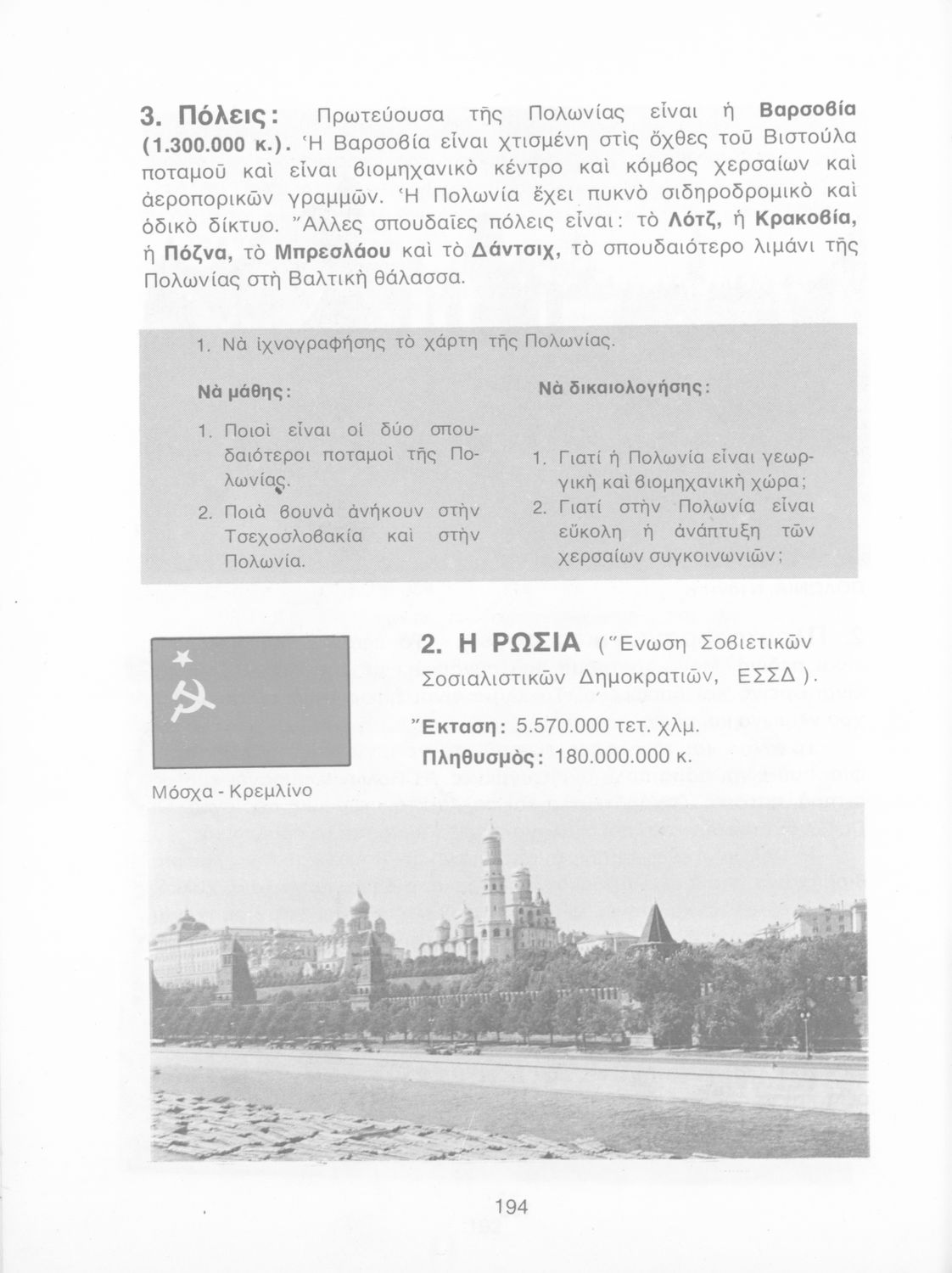 Βαθμίδα εκπαίδευσης: Πρωτοβάθμια Τάξη: ΣΤ' Δημοτικού Μάθημα: Γεωγραφία Γλώσσα: Δημοτική Παρουσίαση περιεχομένου: Σχολικό εγχειρίδιο Γεωγραφίας ΣΤ΄ Δημοτικού που περιλαμβάνει εισαγωγή στη φυσική και μαθηματική γεωγραφία και παρουσιάζει τα κράτη της Ευρώπης από φυσική, οικονομική και πολιτική σκοπιά. |