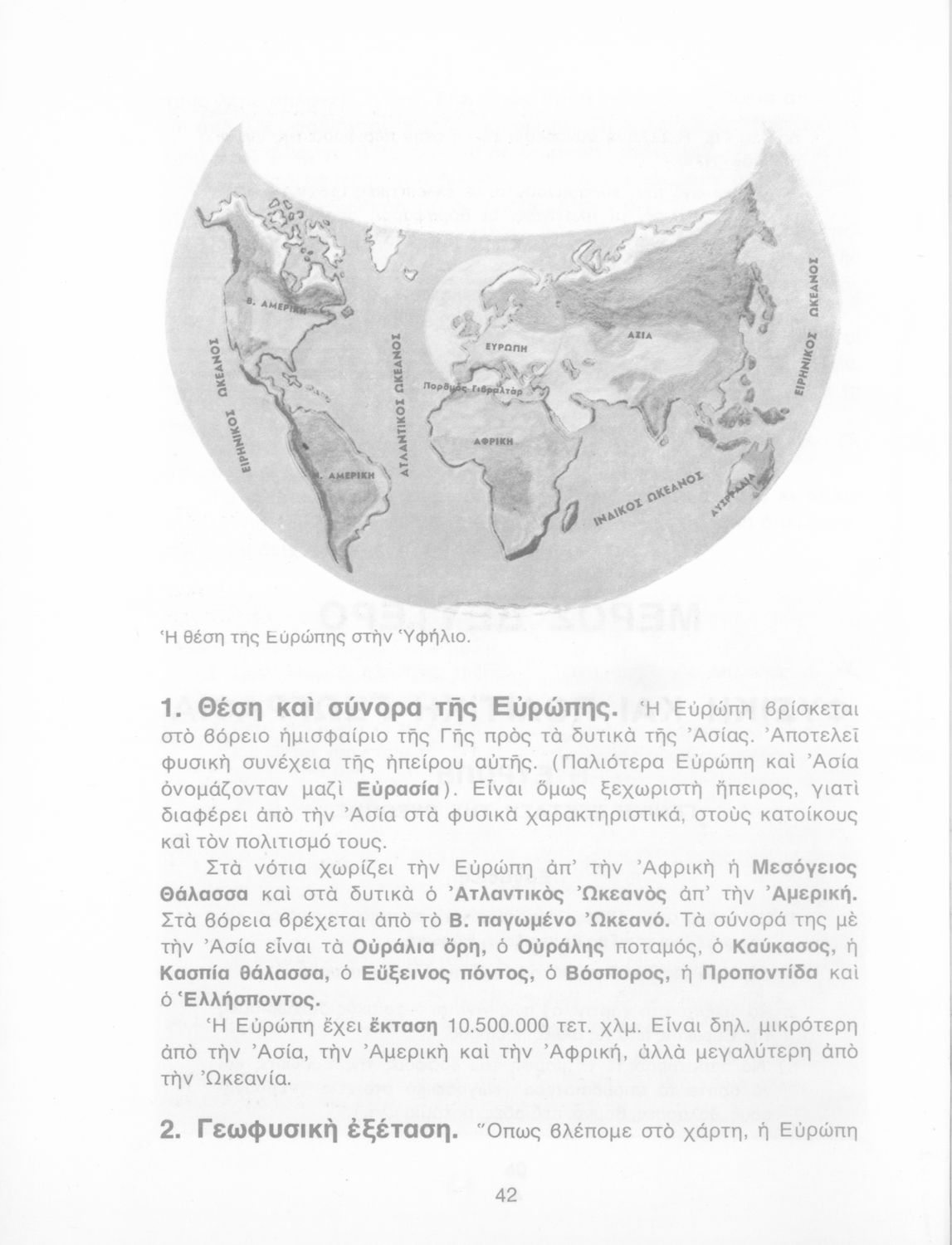 Σχολικό εγχειρίδιο Γεωγραφίας ΣΤ΄ Δημοτικού που περιλαμβάνει εισαγωγή στη φυσική και μαθηματική γεωγραφία και παρουσιάζει τα κράτη της Ευρώπης από φυσική, οικονομική και πολιτική σκοπιά.