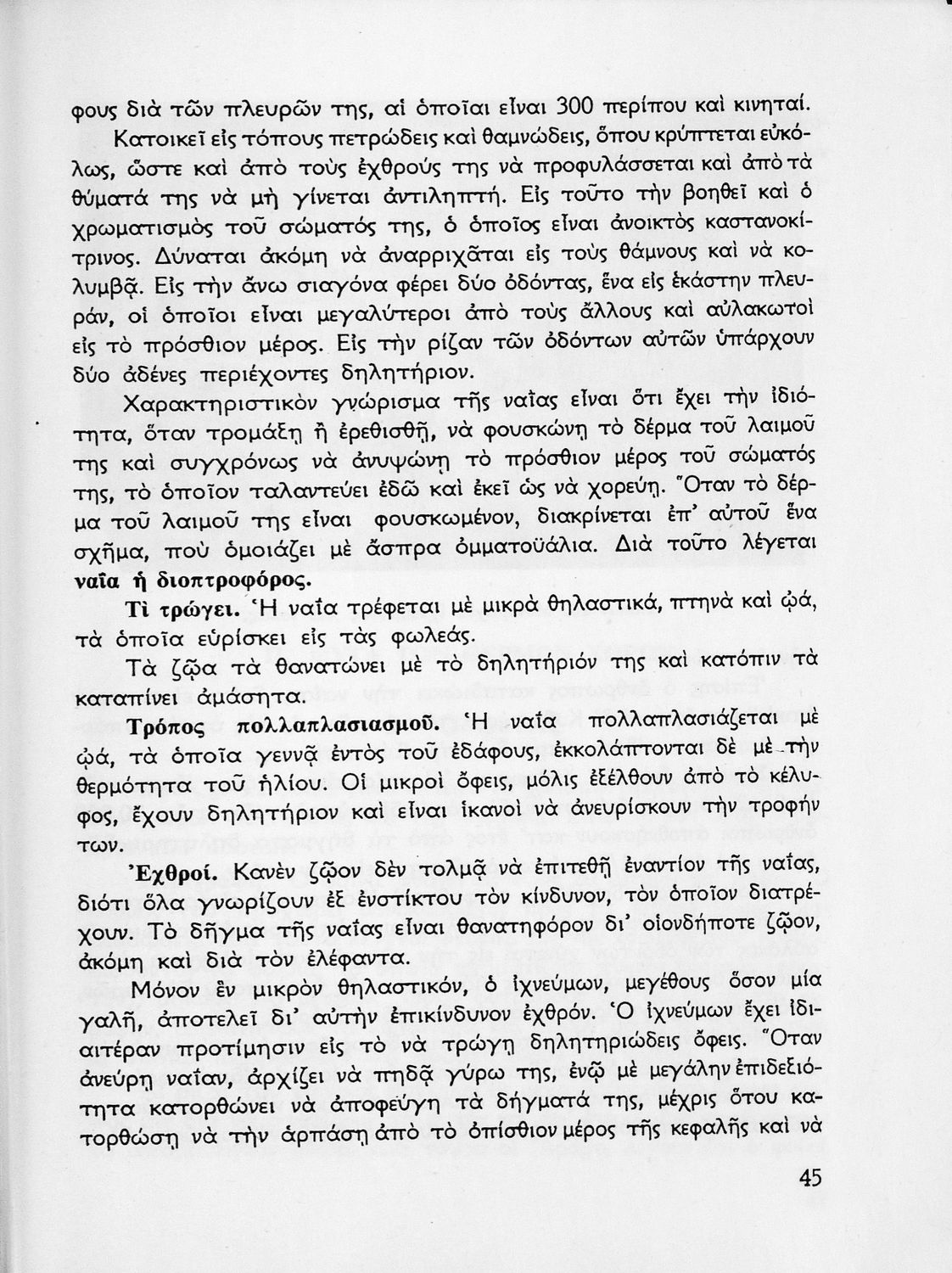 Σχολικό εγχειρίδιο της Ε' Δημοτικού για το μάθημα της Φυσικής Ιστορίας στο Δημοτικό. Περιέχει πληροφορίες για την ζωολογία, τη φυτολογία και την ορυκτολογία. ο βιβλίο έχει εικόνες, οι οποίες διευκολύνουν τη διδασκαλία. Ο λόγος των κειμένων είναι απλός και κατανοητός για τους μαθητές.