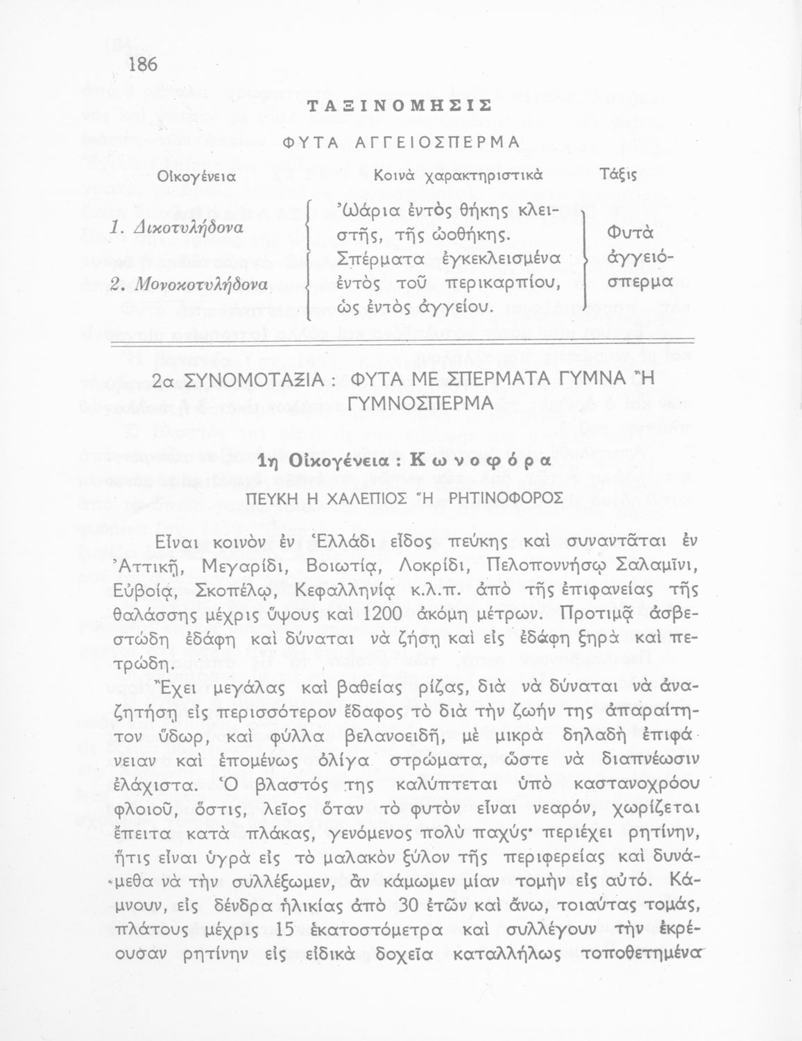 Παρουσίαση περιεχομένου: Σχολικό εγχειρίδιο Φυτολογίας που εξετάζει φυτά και δέντρα της Ελλάδας ανάλογα με τη συνομοταξία στην οποία ανήκουν και παρέχει πληροφορίες για την αναπαραγωγή τους και τη χρησιμότητά τους για τον άνθρωπο.