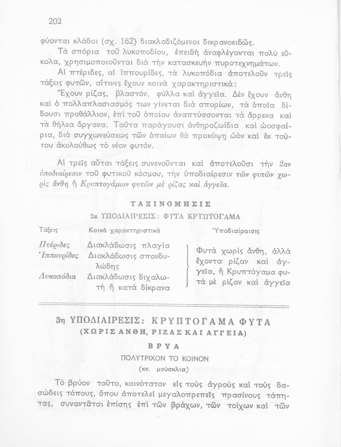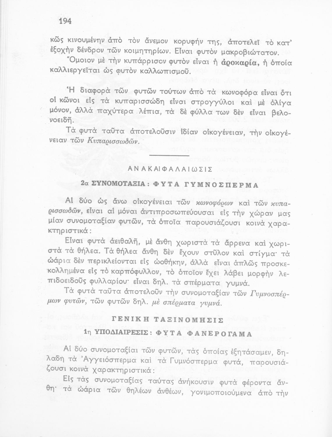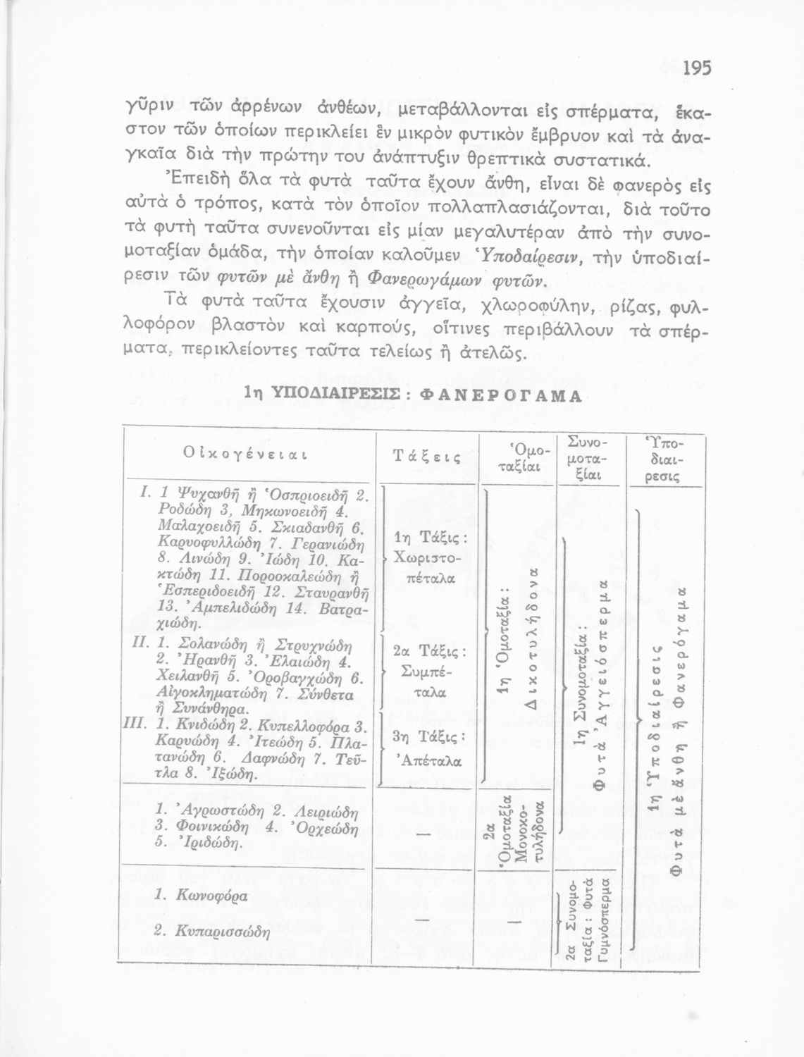Παρουσίαση περιεχομένου: Σχολικό εγχειρίδιο Φυτολογίας που εξετάζει φυτά και δέντρα της Ελλάδας ανάλογα με τη συνομοταξία στην οποία ανήκουν και παρέχει πληροφορίες για την αναπαραγωγή τους και τη χρησιμότητά τους για τον άνθρωπο.