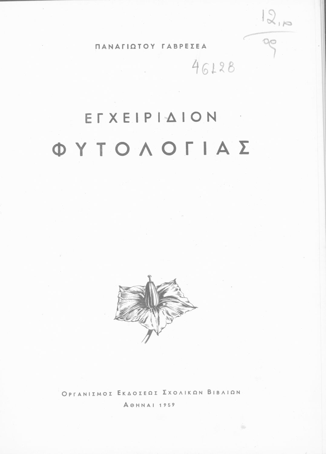 Σχολικό εγχειρίδιο Φυτολογίας για τη Β΄ τάξη των Εξαταξίων Γυμνασίων και Ημιγυμνασίων και τη Δ΄ τάξη των οκταταξίων Γυμνασίων που εξετάζει φυτά της Ελλάδας και παραθέτει στοιχεία γενικής φυτολογίας για την ...