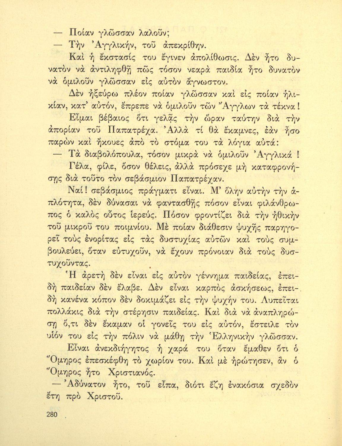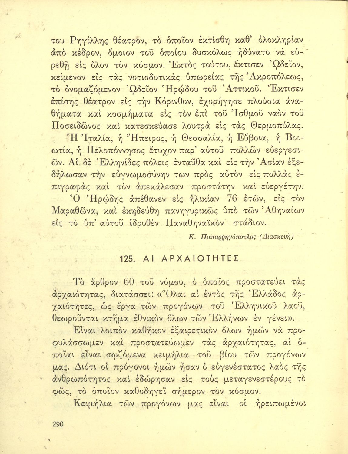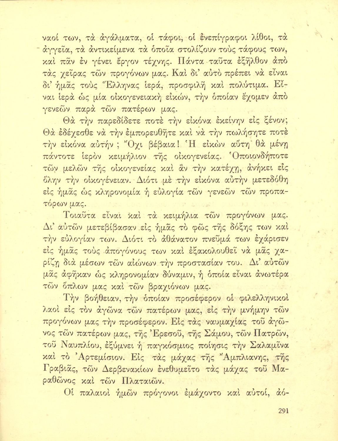 Αναγνωστικό ΣΤ΄ Δημοτικού που περιλαμβάνει θέματα από τις ελληνικές παραδόσεις και μύθους, την ελληνική φύση και θάλασσα και το τρίπτυχο "Πατρίς-θρησκεία-οικογένειαα".