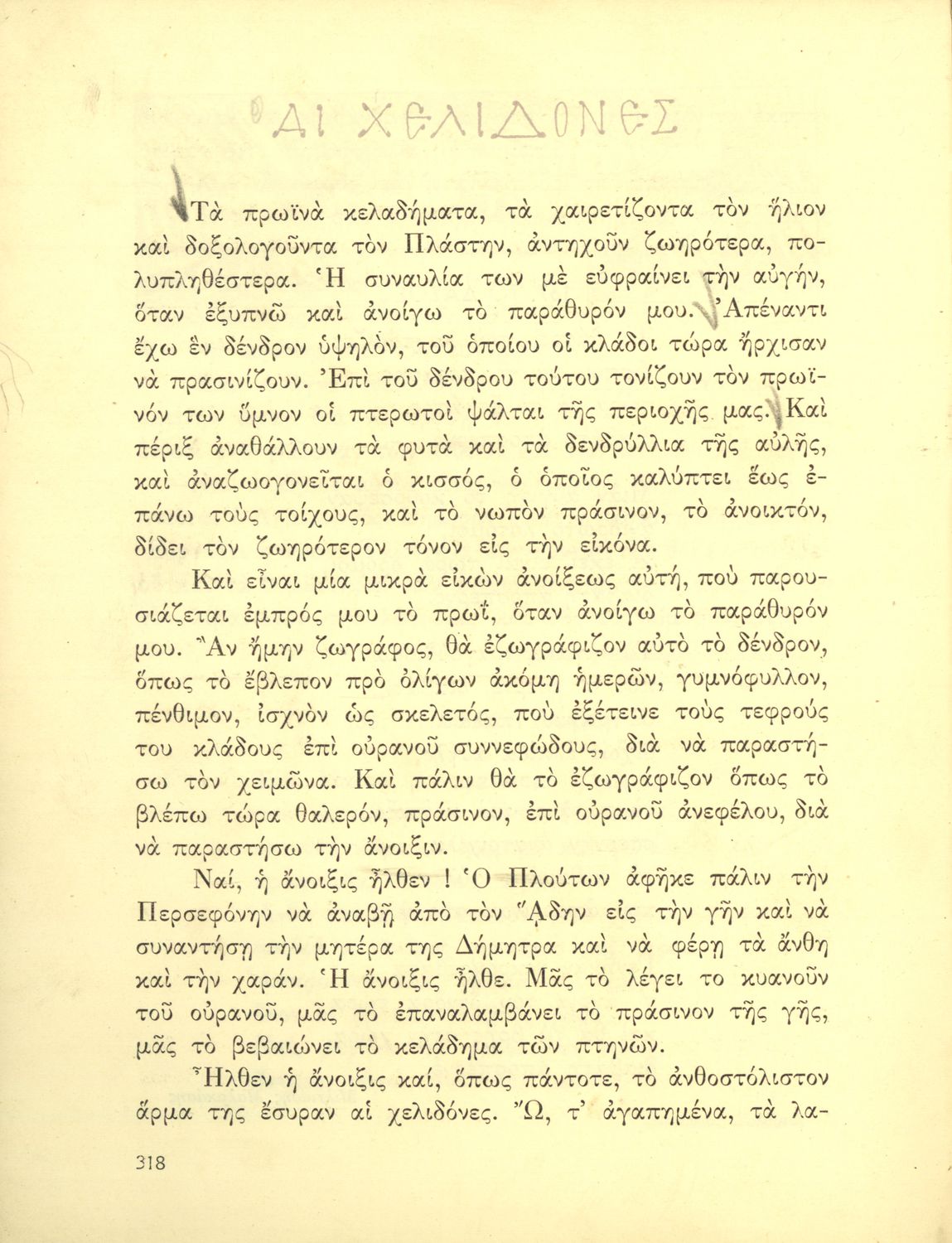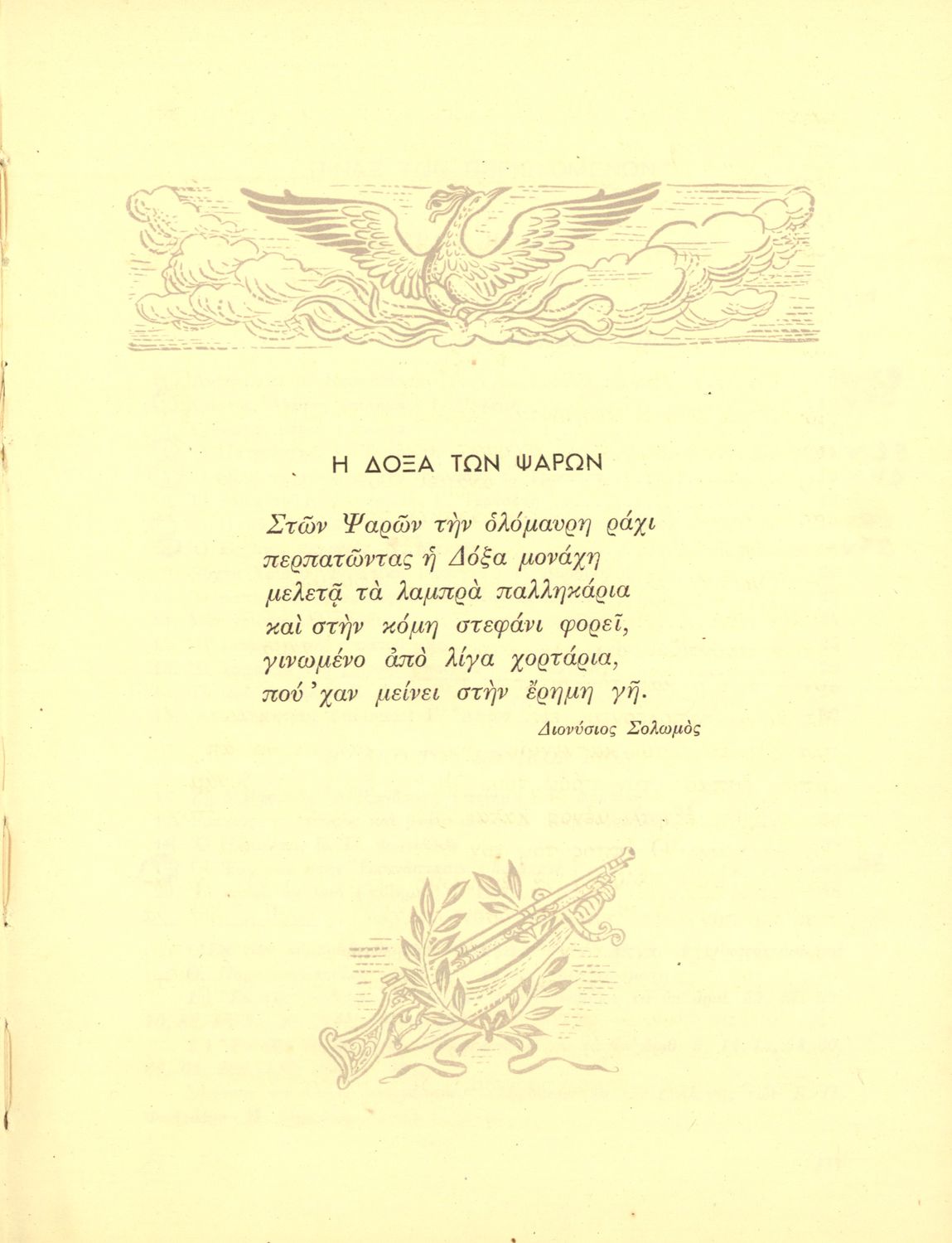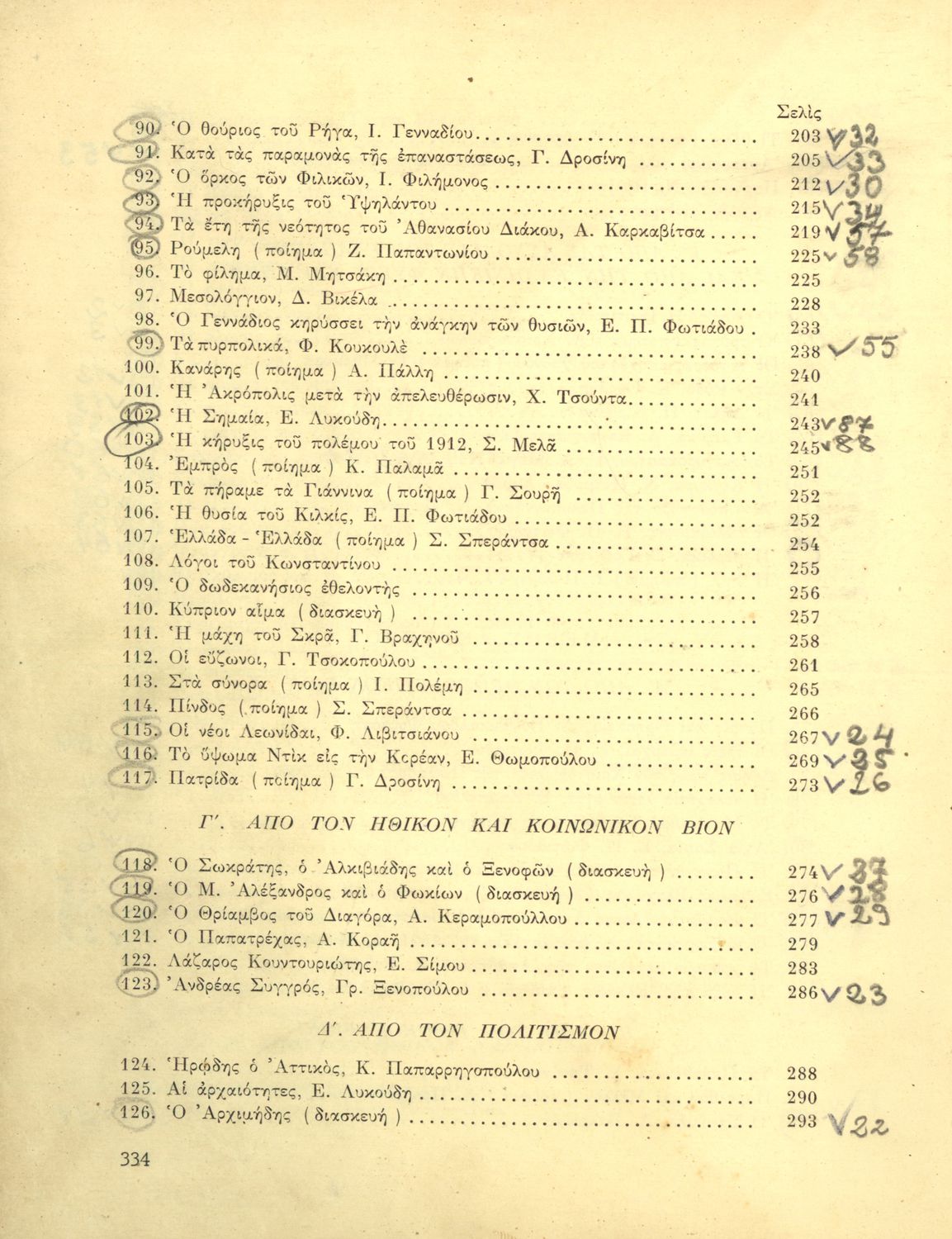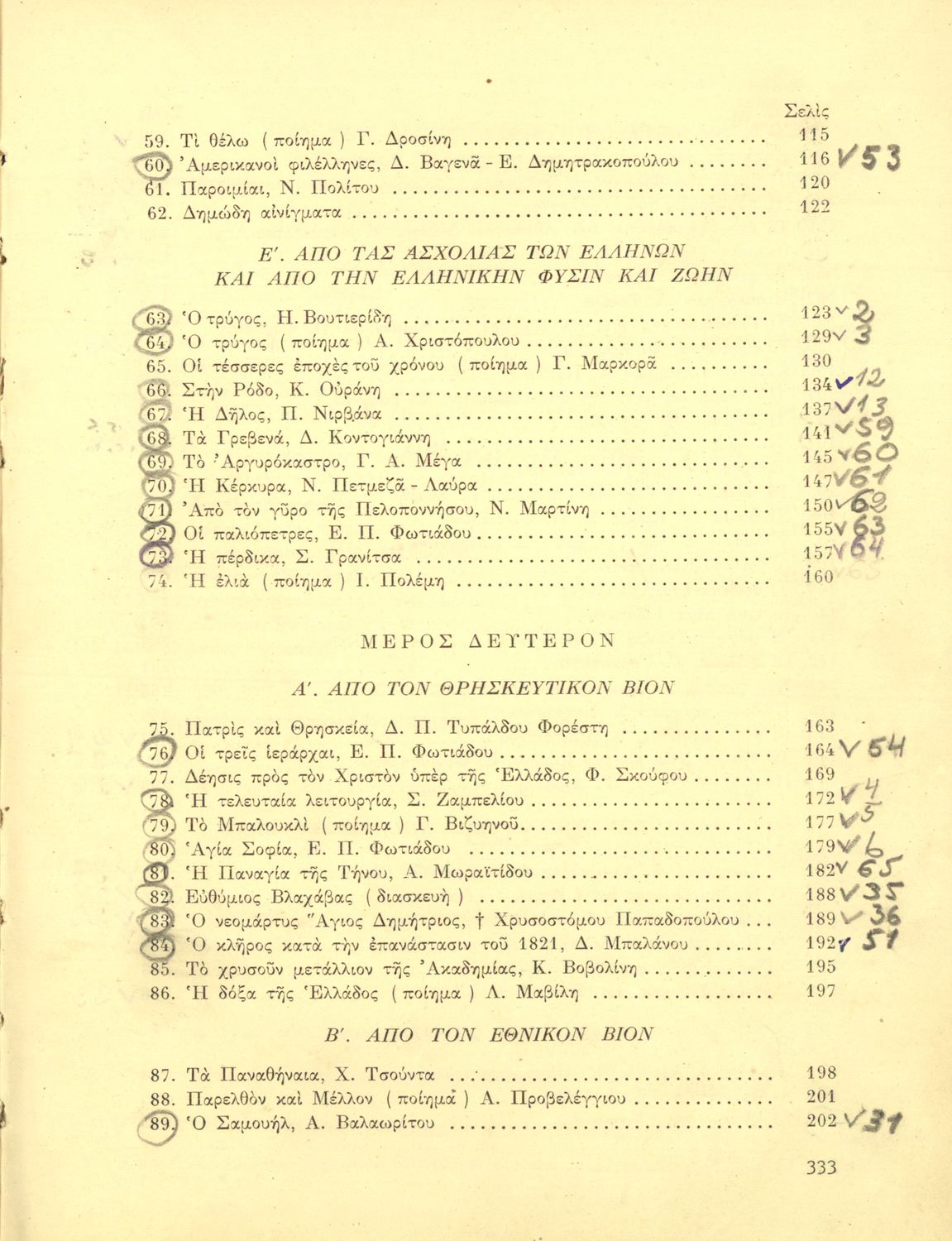 Αναγνωστικό ΣΤ΄ Δημοτικού που περιλαμβάνει θέματα από τις ελληνικές παραδόσεις και μύθους, την ελληνική φύση και θάλασσα και το τρίπτυχο "Πατρίς-θρησκεία-οικογένειαα".