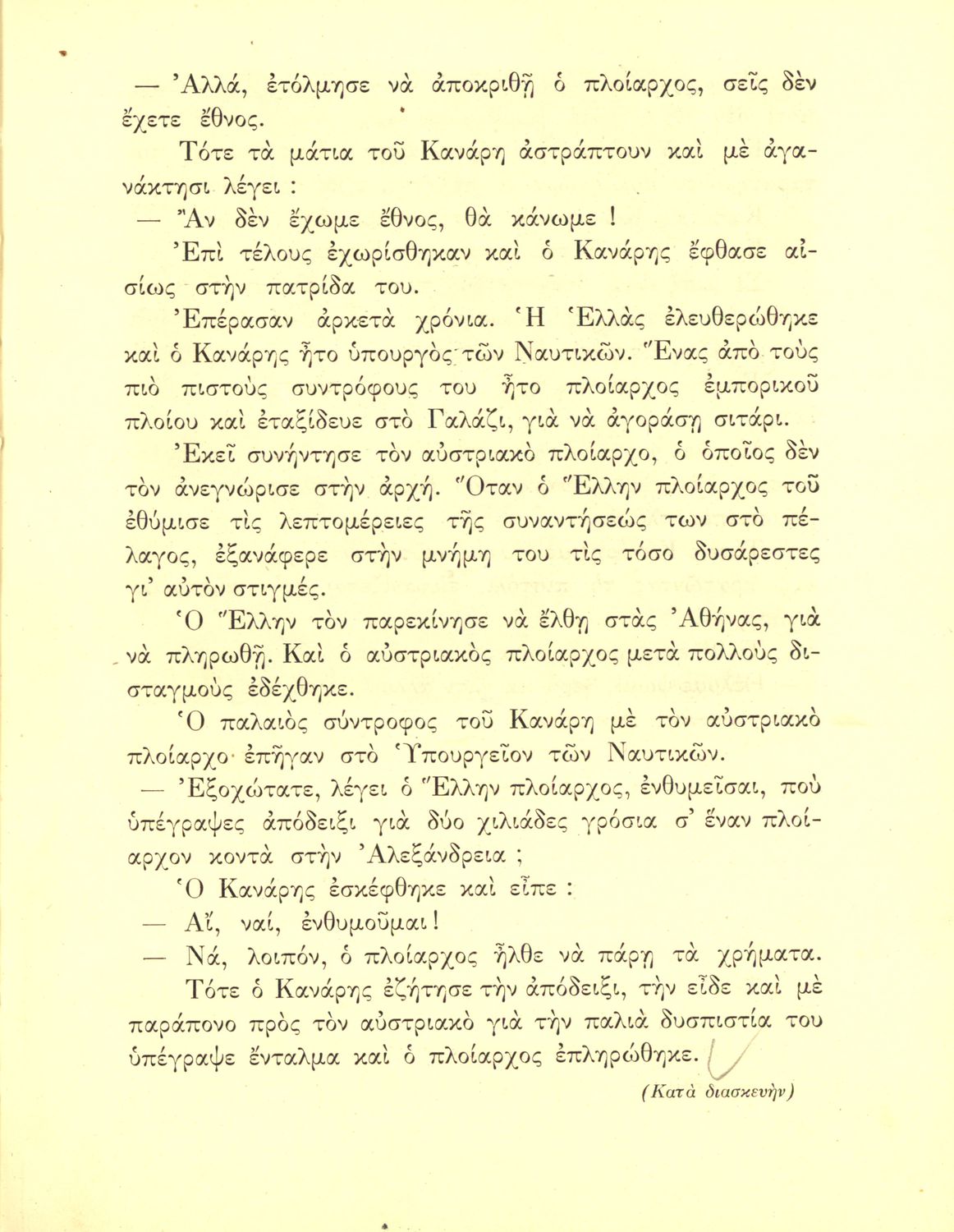 Αναγνωστικό της ΣΤ΄ Δημοτικού που κυκλοφόρησε σε 7.000 αντίτυπα 25 ημέρες πριν την 4η Αυγούστου 1936, οπότε κατά την επόμενη σχολική χρονιά διδάχτηκε ελάχιστα και η έκδοσή του με αυτή την μορφή σταμάτησε.