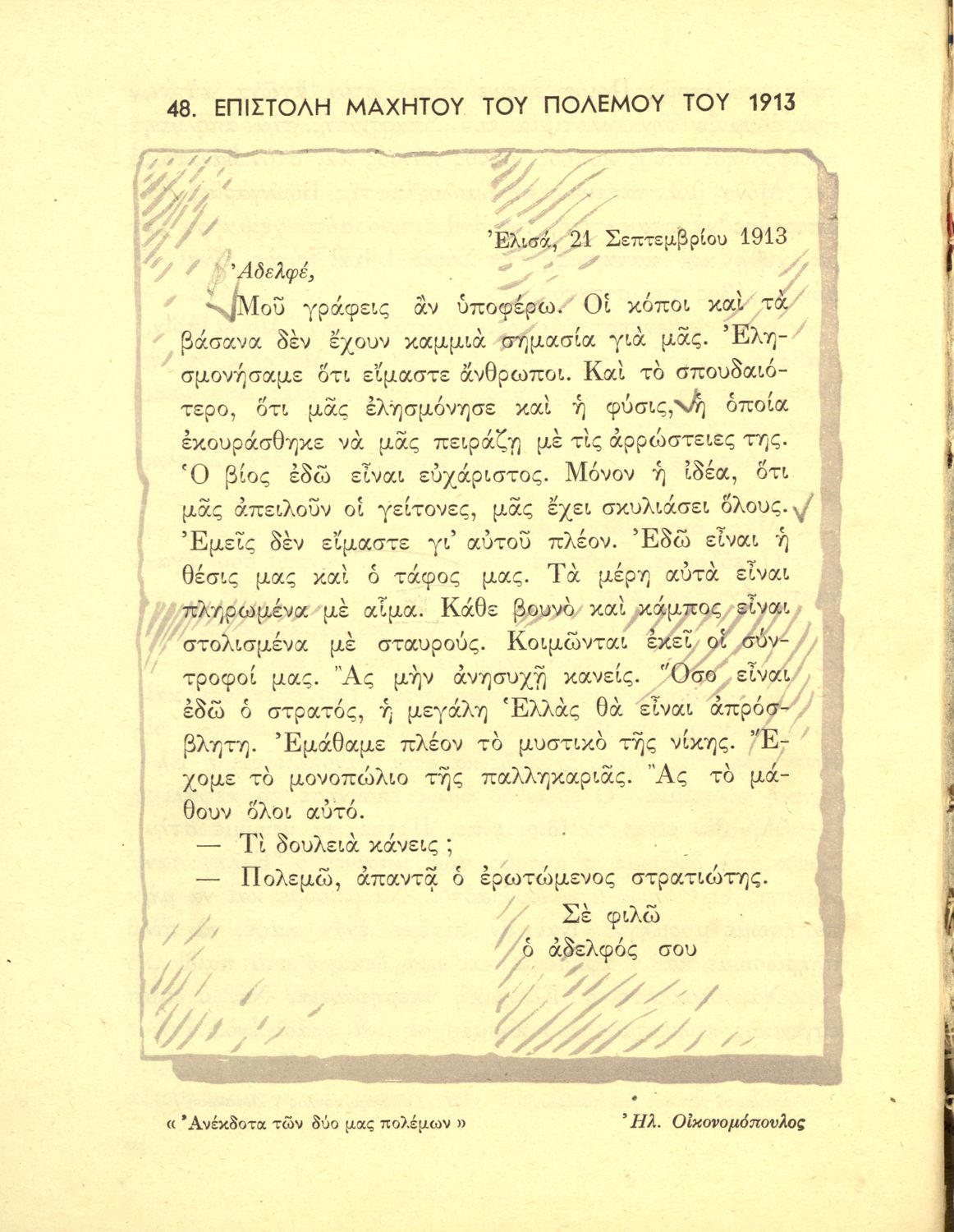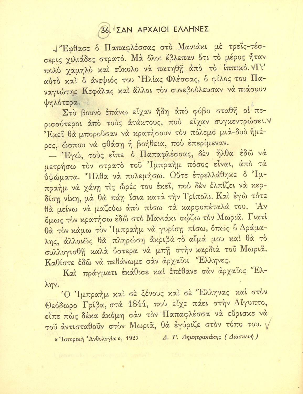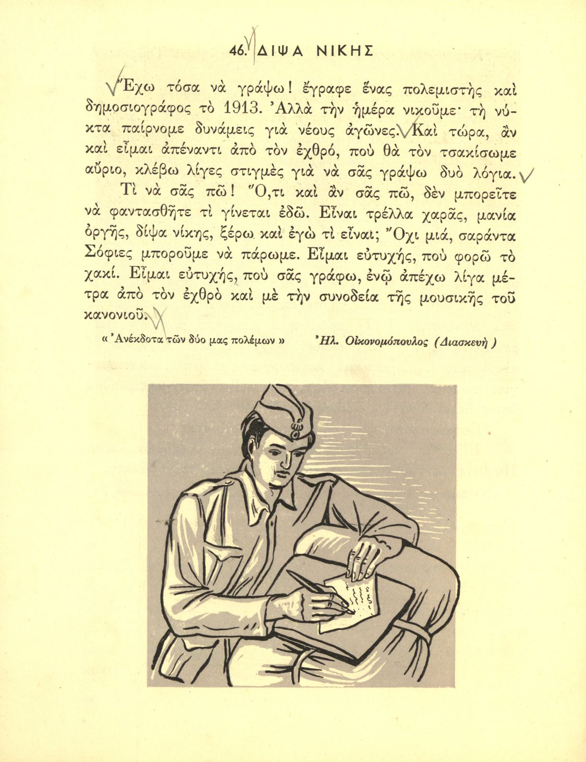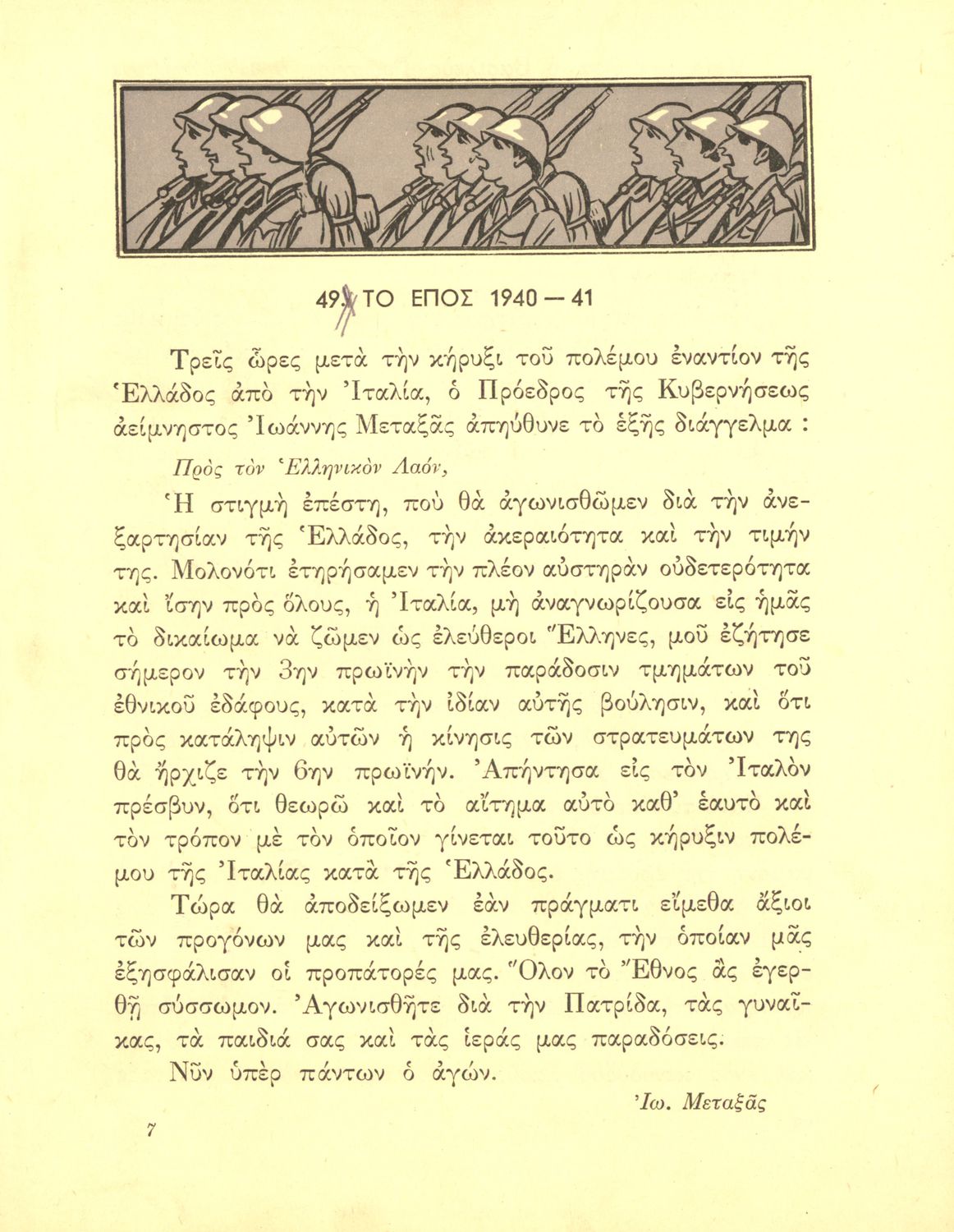 Αναγνωστικό της ΣΤ΄ Δημοτικού που κυκλοφόρησε σε 7.000 αντίτυπα 25 ημέρες πριν την 4η Αυγούστου 1936, οπότε κατά την επόμενη σχολική χρονιά διδάχτηκε ελάχιστα και η έκδοσή του με αυτή την μορφή σταμάτησε.