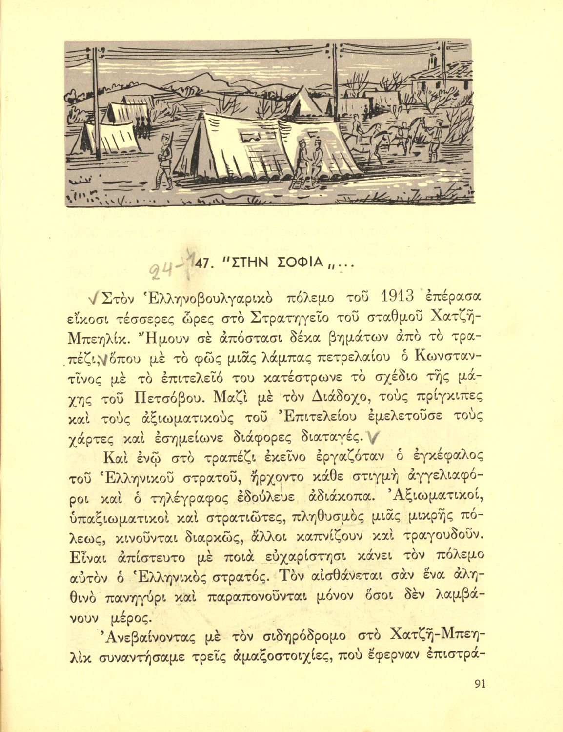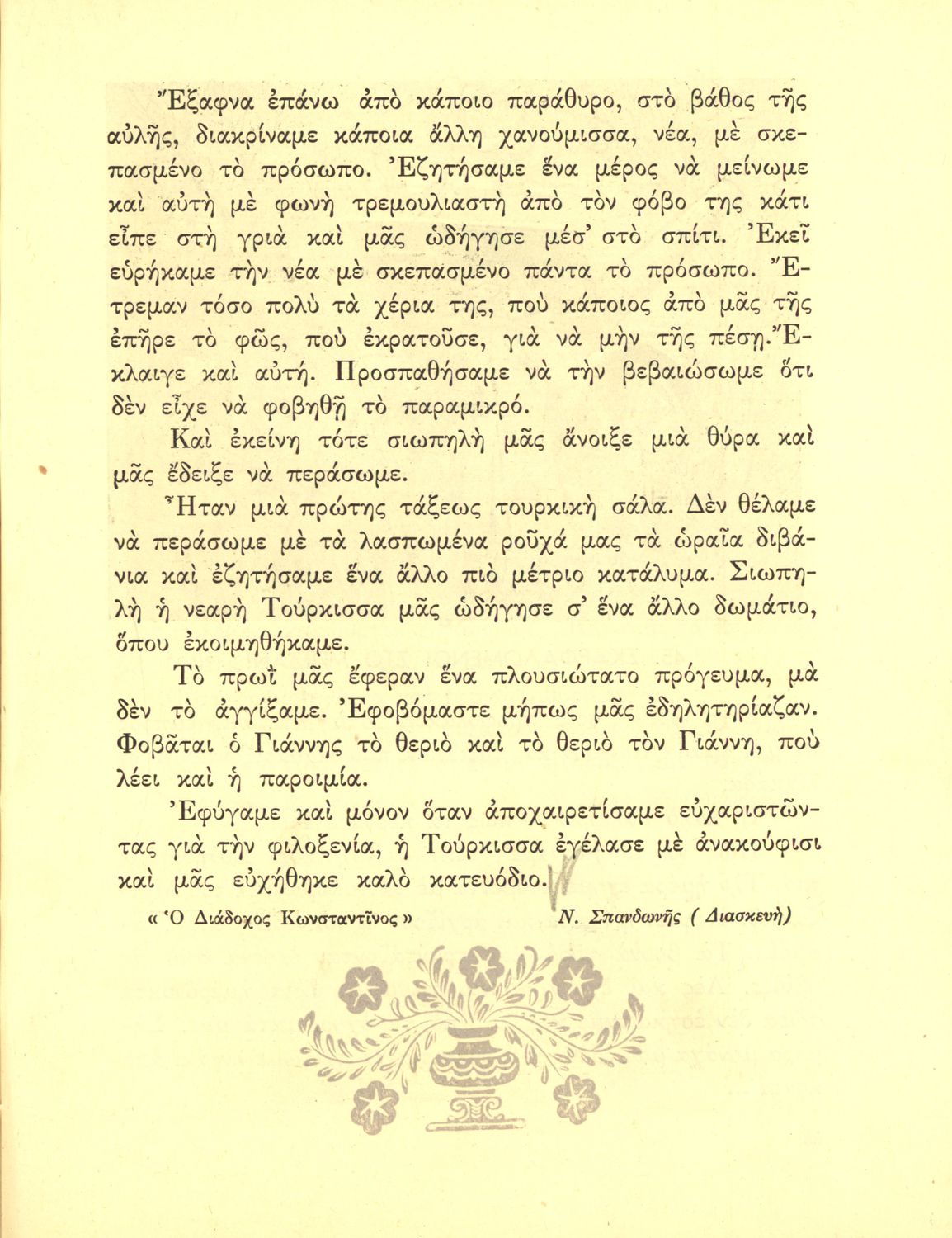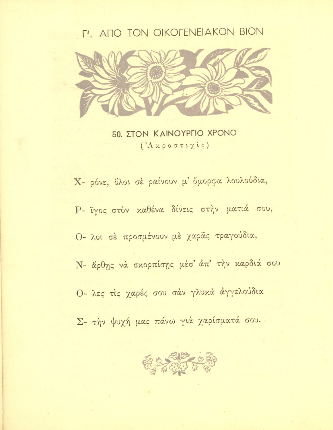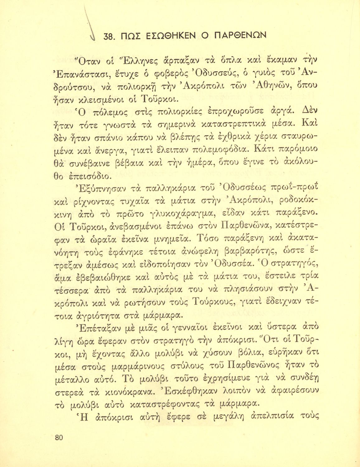 Αναγνωστικό ΣΤ΄ Δημοτικού που περιλαμβάνει θέματα από τις ελληνικές παραδόσεις και μύθους, την ελληνική φύση και θάλασσα και το τρίπτυχο "Πατρίς-θρησκεία-οικογένειαα".