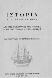 Ιστορία των Νέων Χρόνων από της ανακαλύψεως της Αμερικής μέχρι της Ελληνικής Επαναστάσεως. Δια την Ε' Τάξιν των Εξατάξιων Γυμνασίων