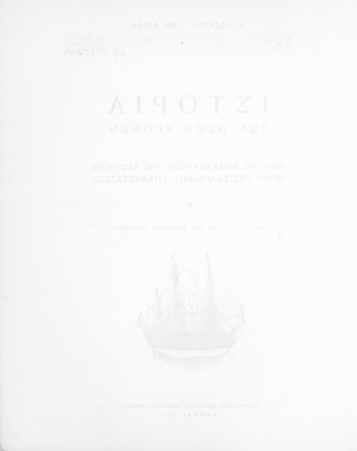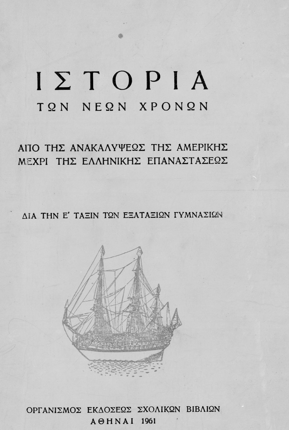 Τίτλος: Ιστορία των Νέων Χρόνων από της ανακαλύψεως της Αμερικής μέχρι της Ελληνικής Επαναστάσεως. Δια την Ε' Τάξιν των Εξατάξιων Γυμνασίων